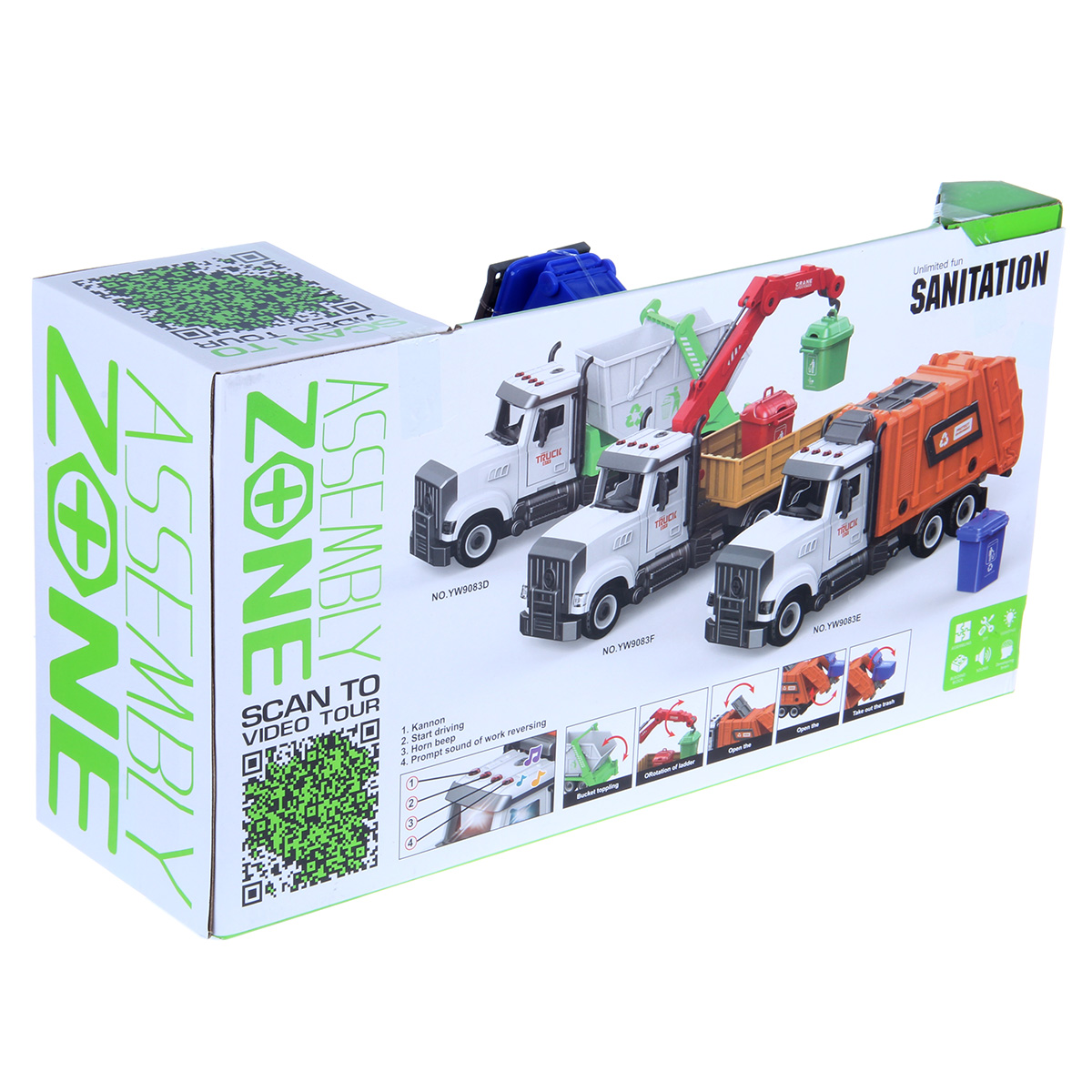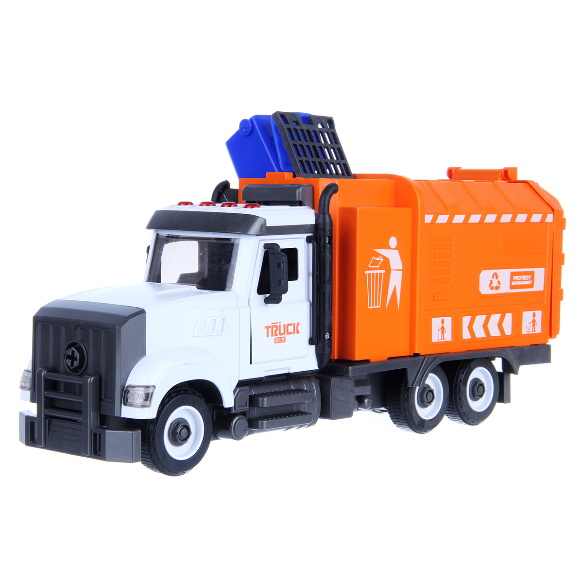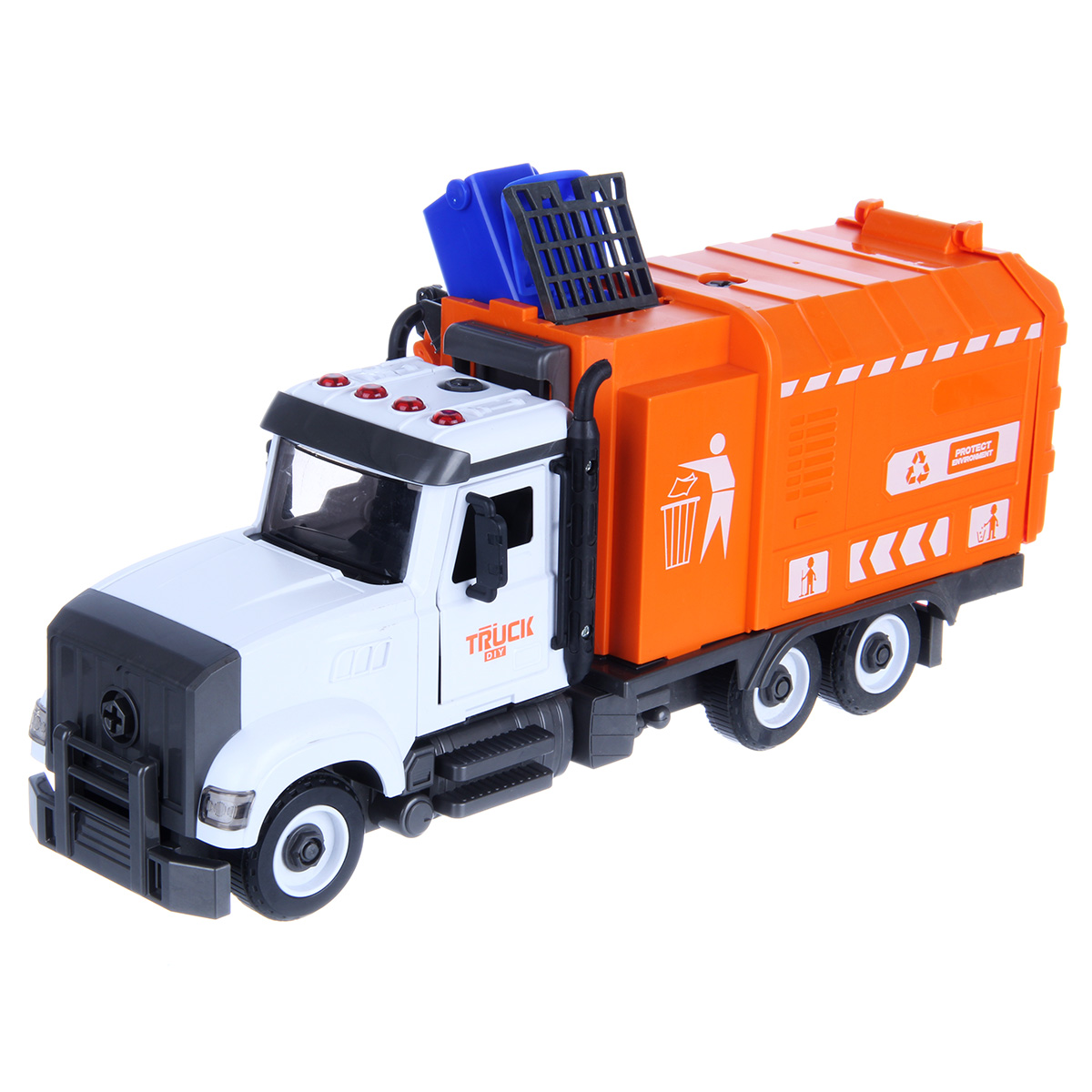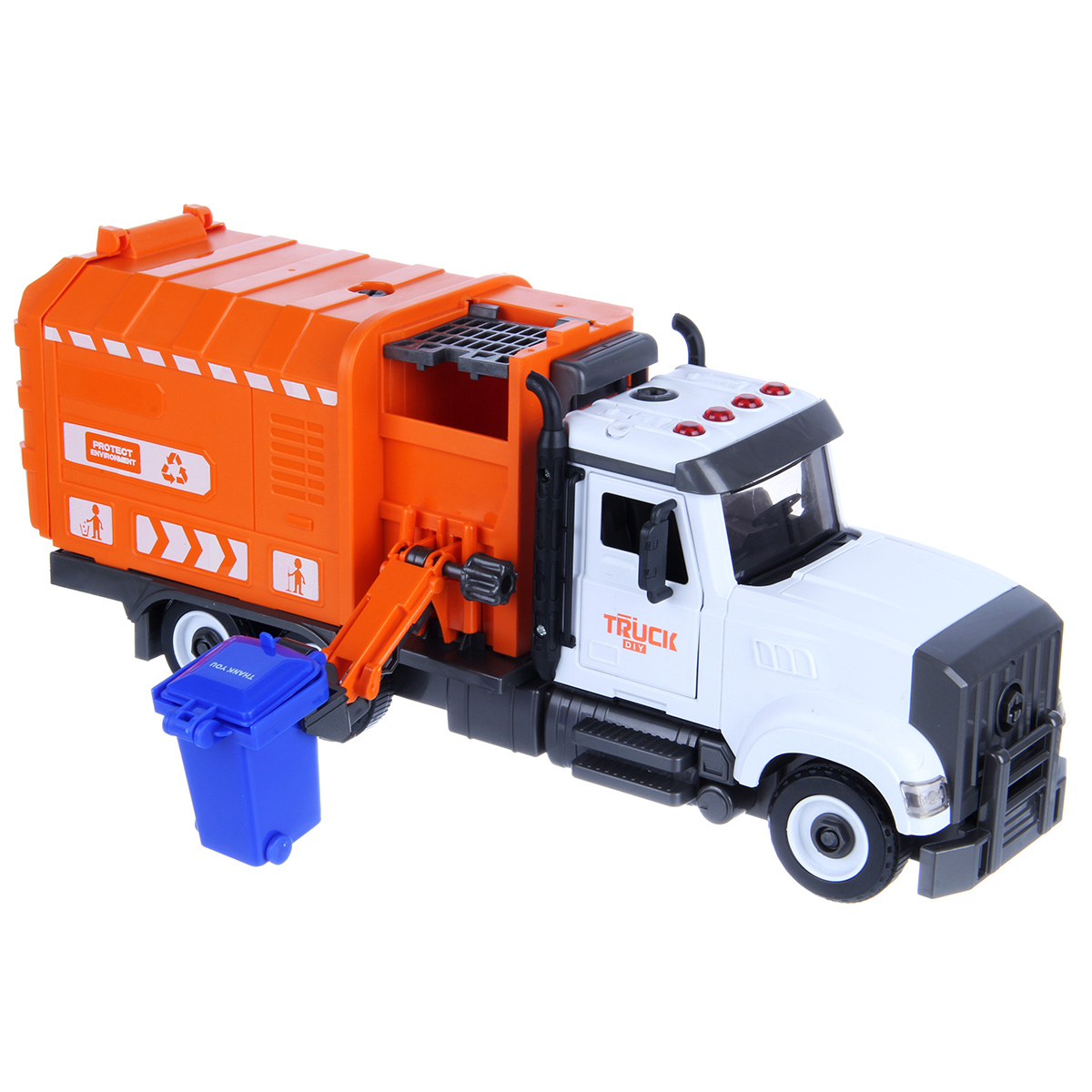 Полностью разборный конструктор скрутка мусоровоз со световыми и звуковыми эффектами. Машина издает звуки заднего хода, гудка, двигателя, проигрывает мелодию, разноцветная подсветка кабины. Движение вперёд и назад, фрикционный механизм, открывающиеся дверцы кабины, задний борт поднимается и опускается, крышка мусоросборника поднимается, площадка машинки подходит для сборки на ней фигурок из классического лего. Есть специальный механизм для перемещения мусорного бака, при вращении рычага стрела механизма поднимается и опускается, можно прикрепить мусорный бак. В наборе отвертка со сменными насадками, можно вкручивать болты, мусорный бак с открывающейся крышкой. Игрушечный мусоровоз изготовлен из прочных и безопасных материалов в качественном исполнении с вниманием к деталям.