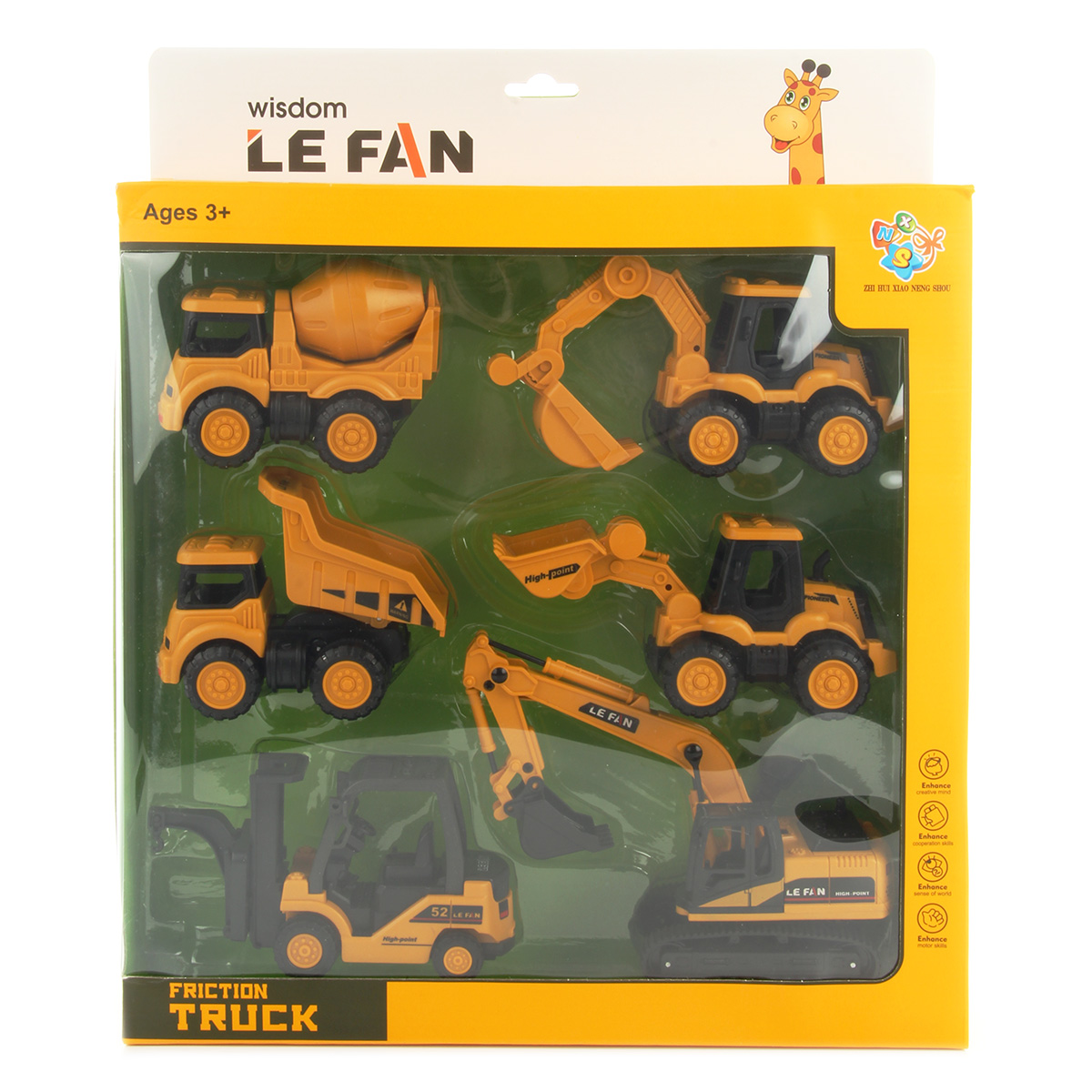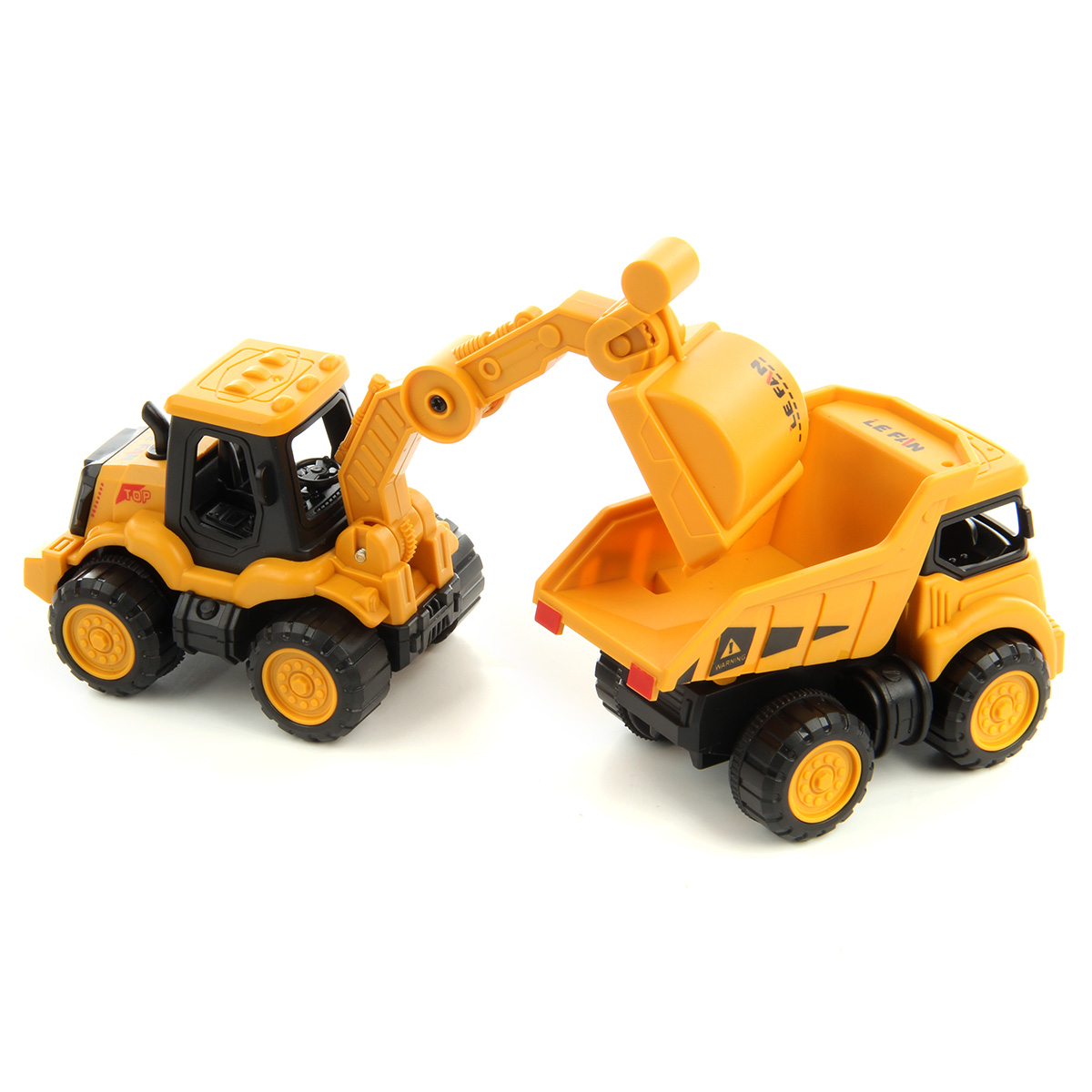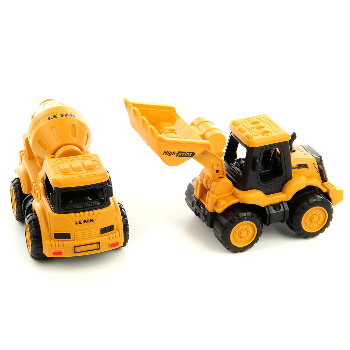Бетономешалка, экскаватор, самосвал, трактор, погрузчик оснащены фрикционным механизмом, катаются вперед и назад.