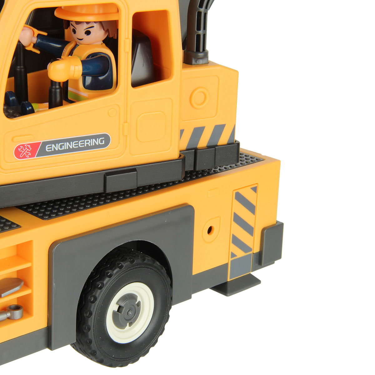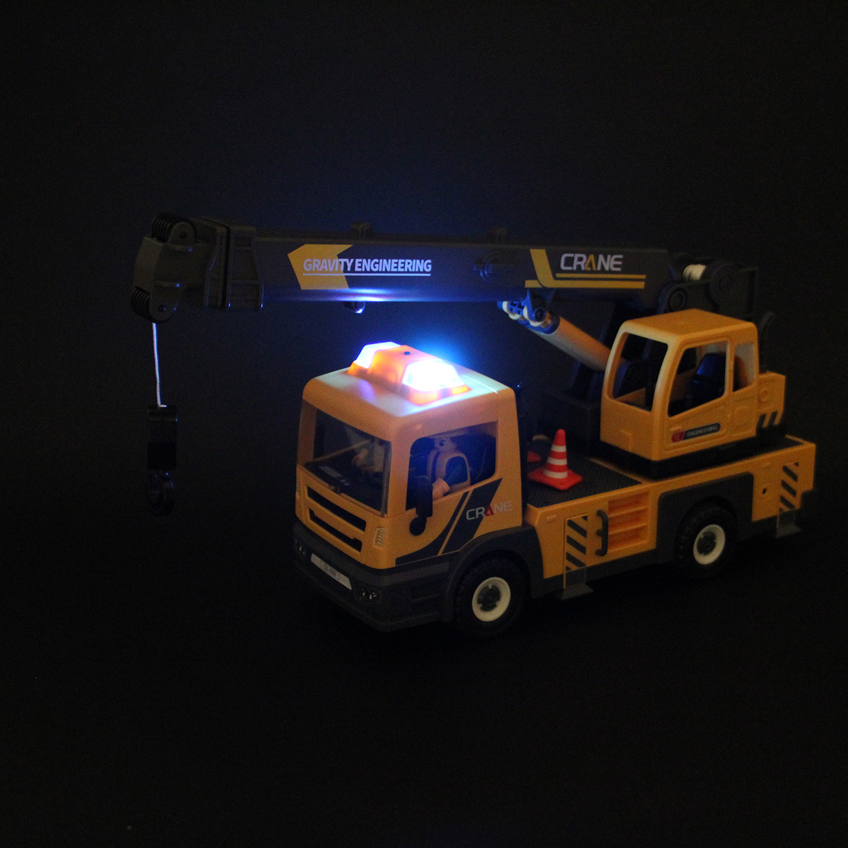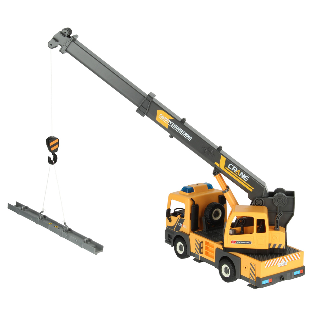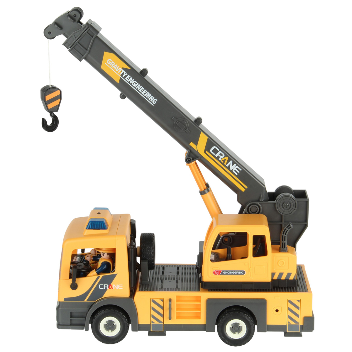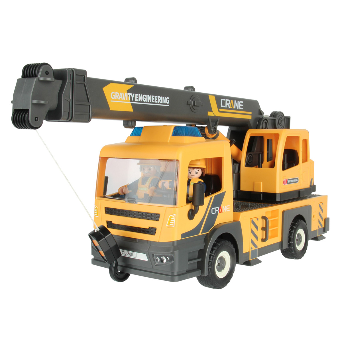 Конструктор строительная машинка кран с подсветкой, звуковыми эффектами, выдвижной стрелой, веревкой с крюком и множеством аксессуаров. Машина катается вперёд и назад, прорезиненные колёса и боковые зеркала, мигающая подсветка проблесковых маячков на крыше, звук заводящегося мотора, кабина крановщика вращается на 360 градусов вручную, выдвижные аутригеры. Веревку для крепления можно закрепить на специальных крепежах на строительных балках, веревку закрепить на крюке строительного крана и перемещать строительные балки. У фигурок строителей двигаются руки и ноги, головы крутятся. В руки строителей можно вложить строительные инструменты. Игровой набор изготовлен из прочных и безопасных материалов в качественном исполнении с вниманием к деталям.