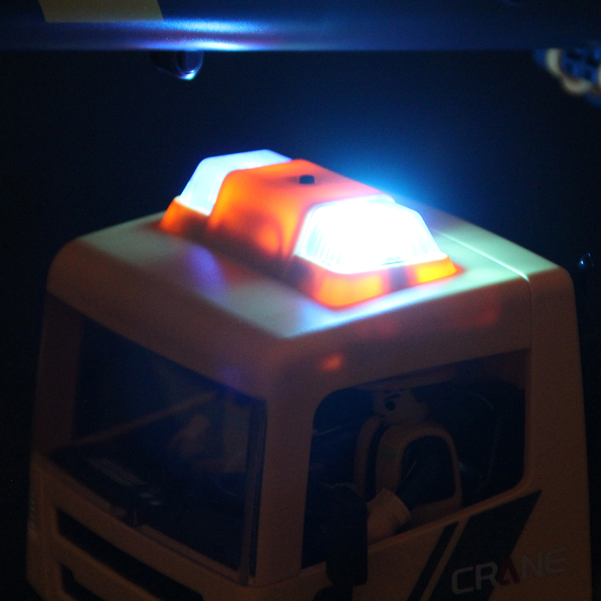 1. При нажатии на кнопку на крыше кабины раздается звук заводящегося мотора, мигающая подсветка проблесковых маячков.