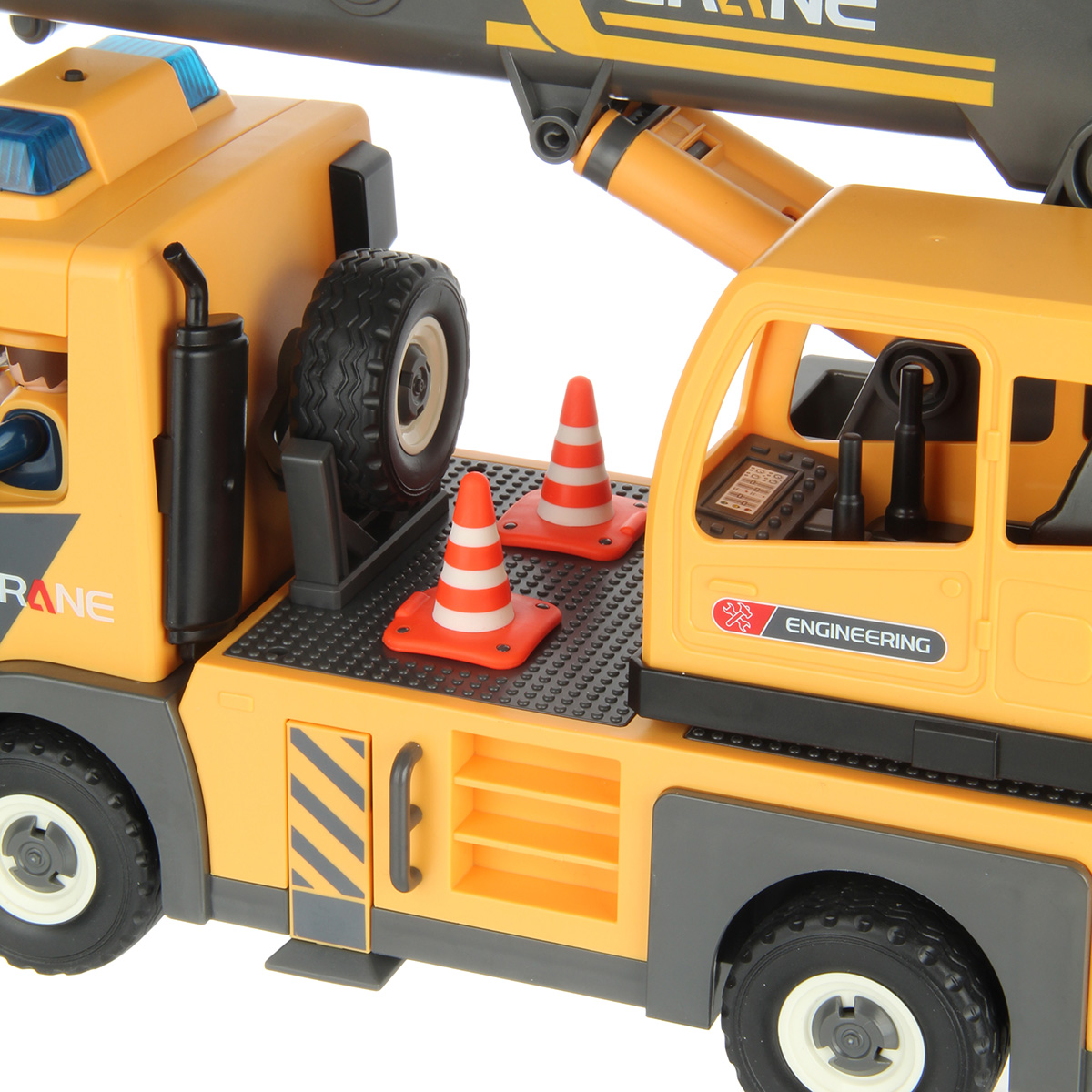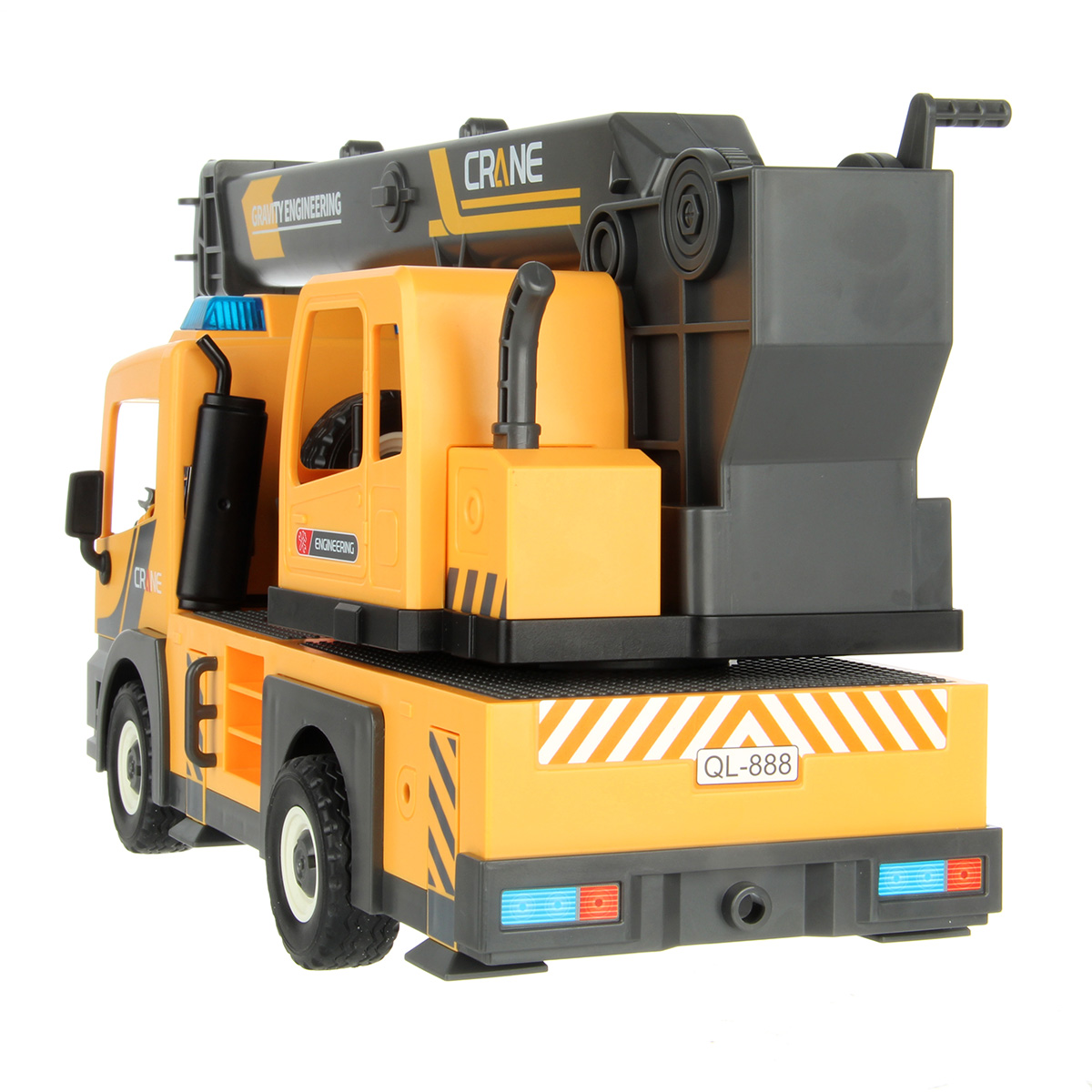 2. Машина катается вперёд и назад, прорезиненные колеса, и боковые зеркала. Руль в водительской кабине прокручивается на 360 градусов.