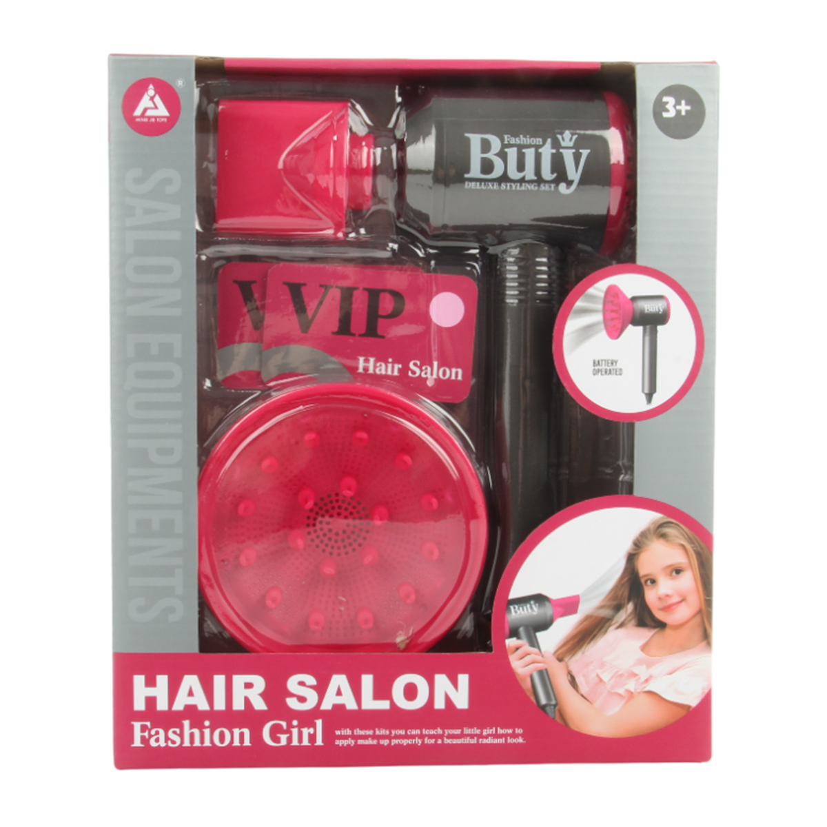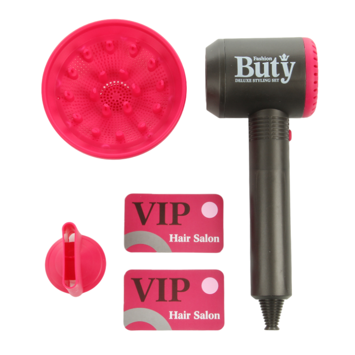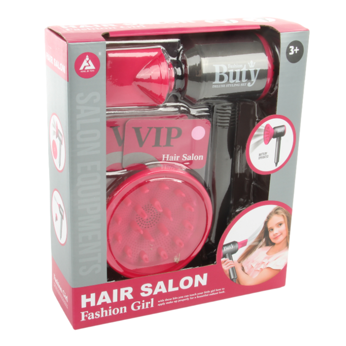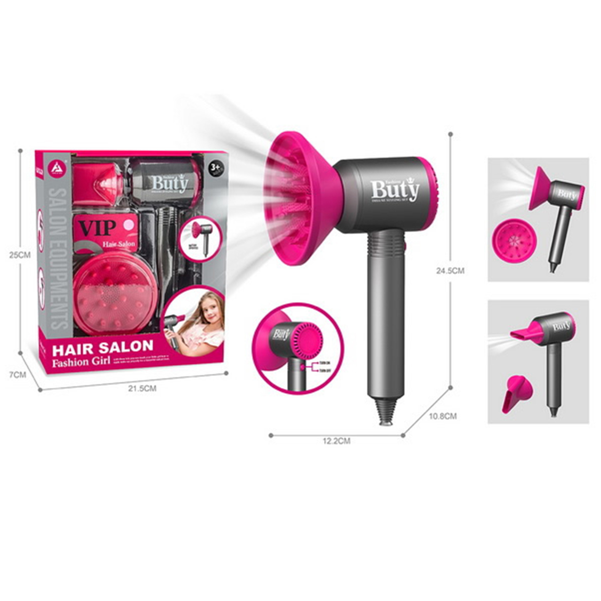 Игрушечный фен, выдувающий воздух, сменные насадки к нему, две карточки вип клиента, этот роскошный набор Парикмахерская очень понравится ребенку.