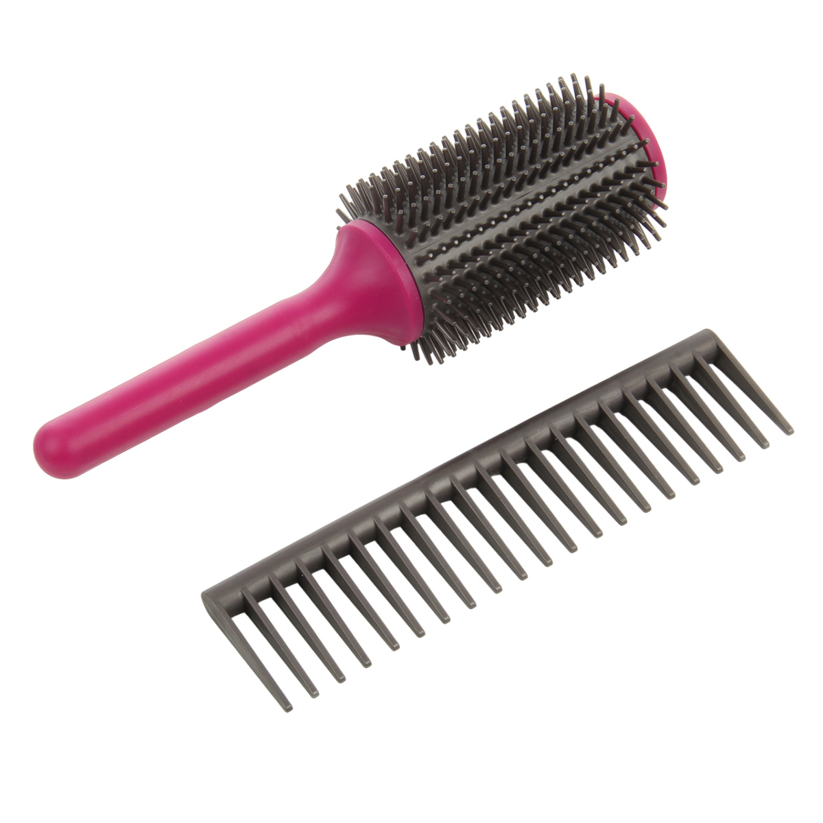 Комплектация. Фен, 2 насадки, утюжок для волос, разборная подставка для него, расческа гребень, расческа брашинг.