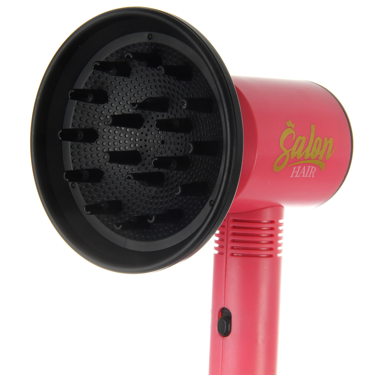 2. У фена можно менять насадки. При передвижении рычажка включения издаёт звук работающей техники, выдув воздуха, более слабый и более сильный выдув.