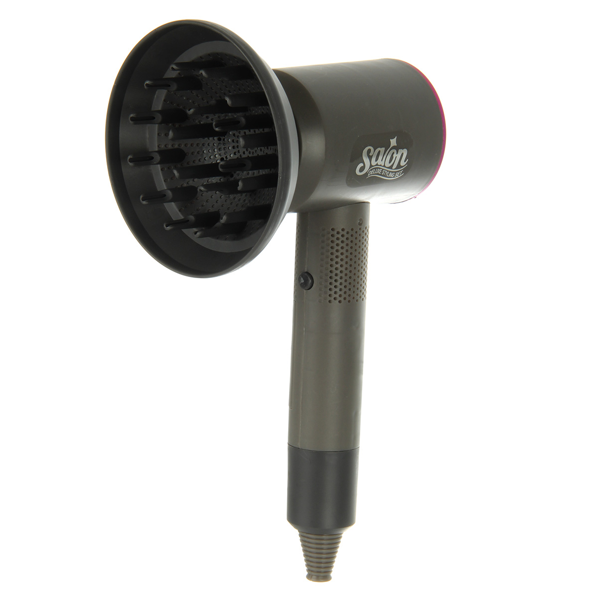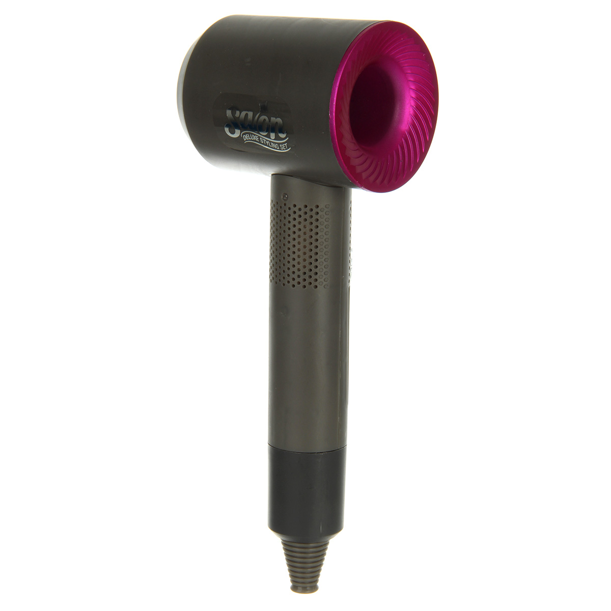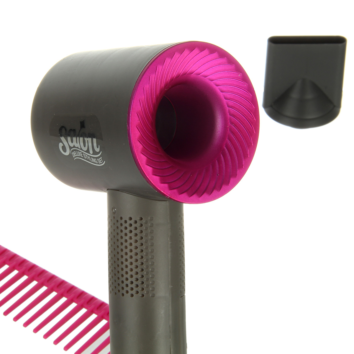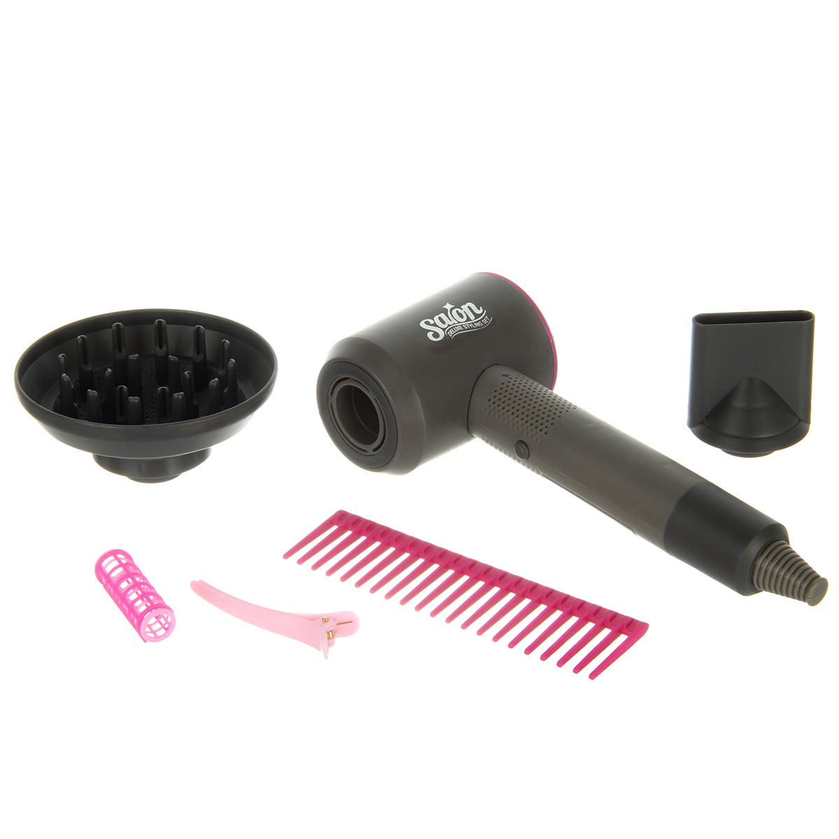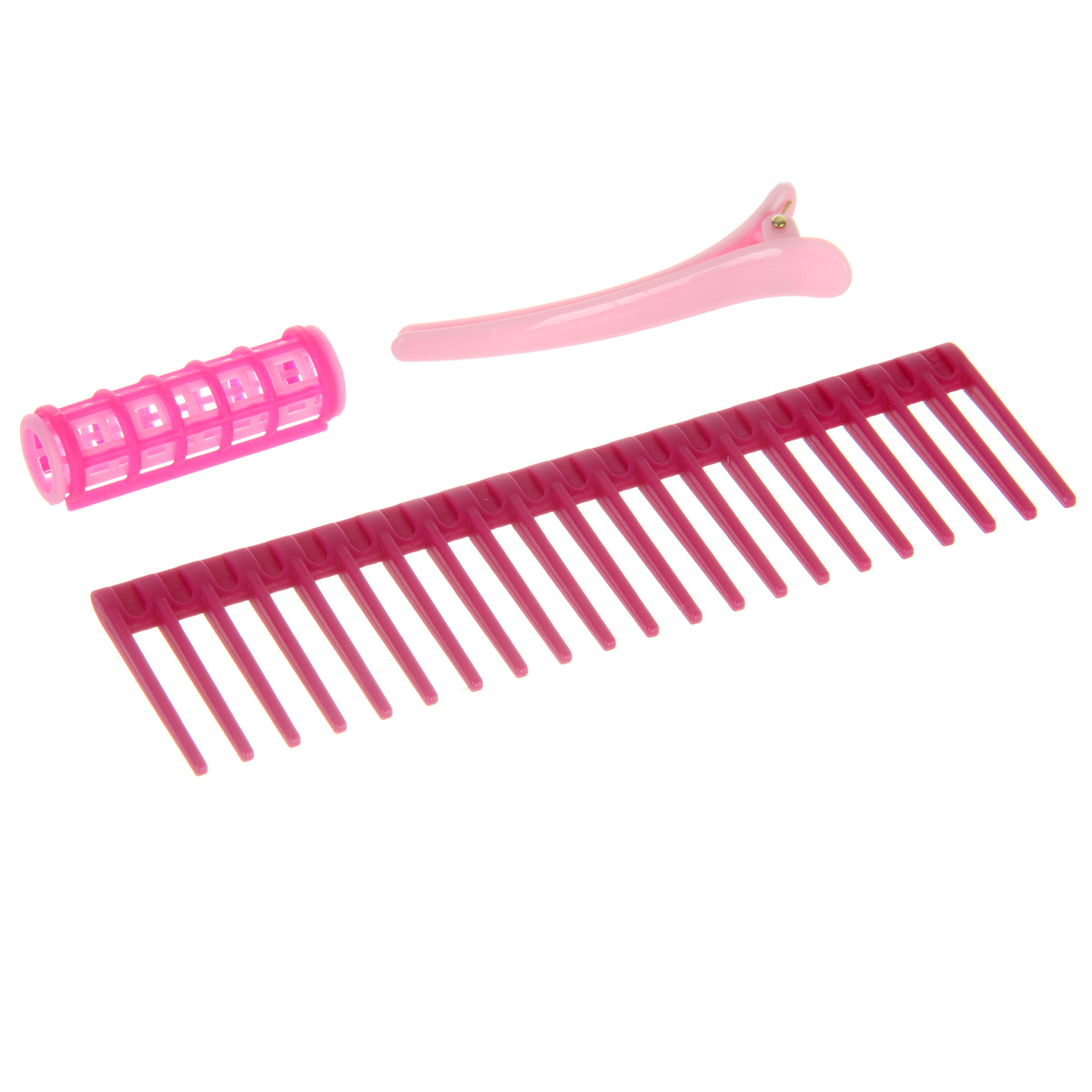 В наборе фен, 2 насадки для фена, расческа, заколка, бигуди 1 шт.
