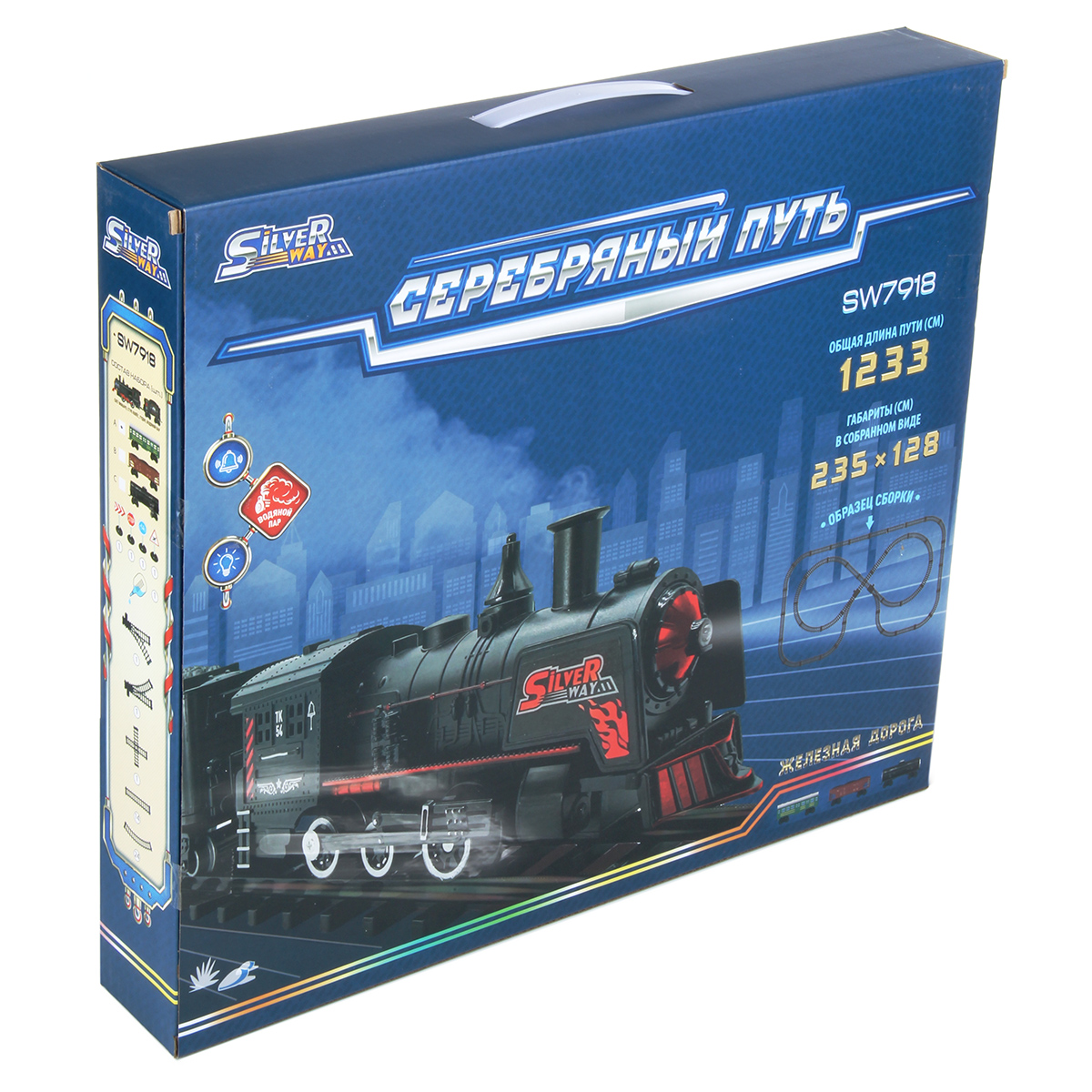Размеры собранной железной дороги 235х128 см.