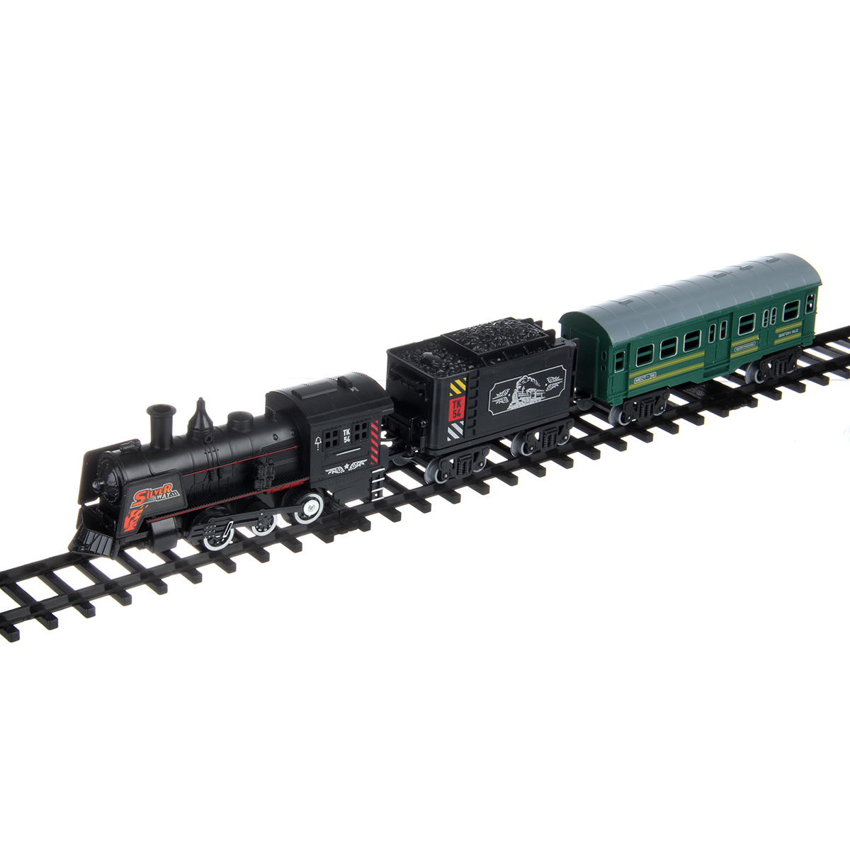 Локомотив работает от 4 батареек АА, не входят в комплект. Батарейки вставляются в вагон с имитацией угля, для этого снимается корпус вагона. Локомотив присоединяется к вагону с углем проводом. Есть отдельные сцепки для присоединения вагонов друг к другу.