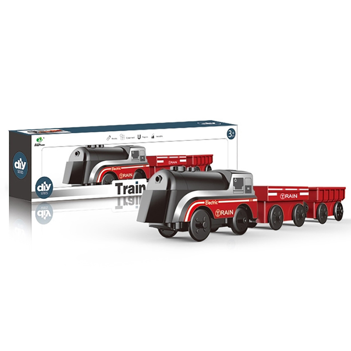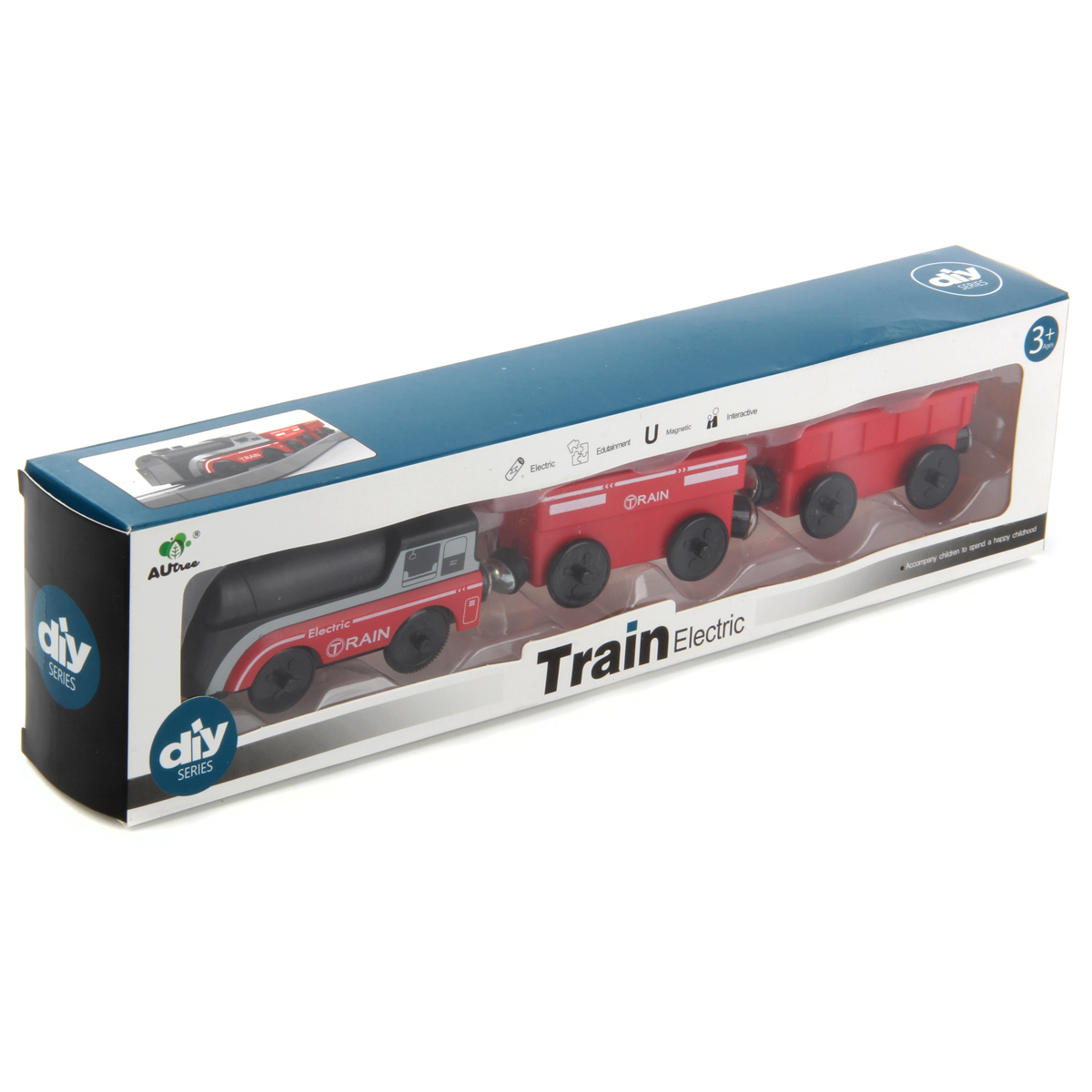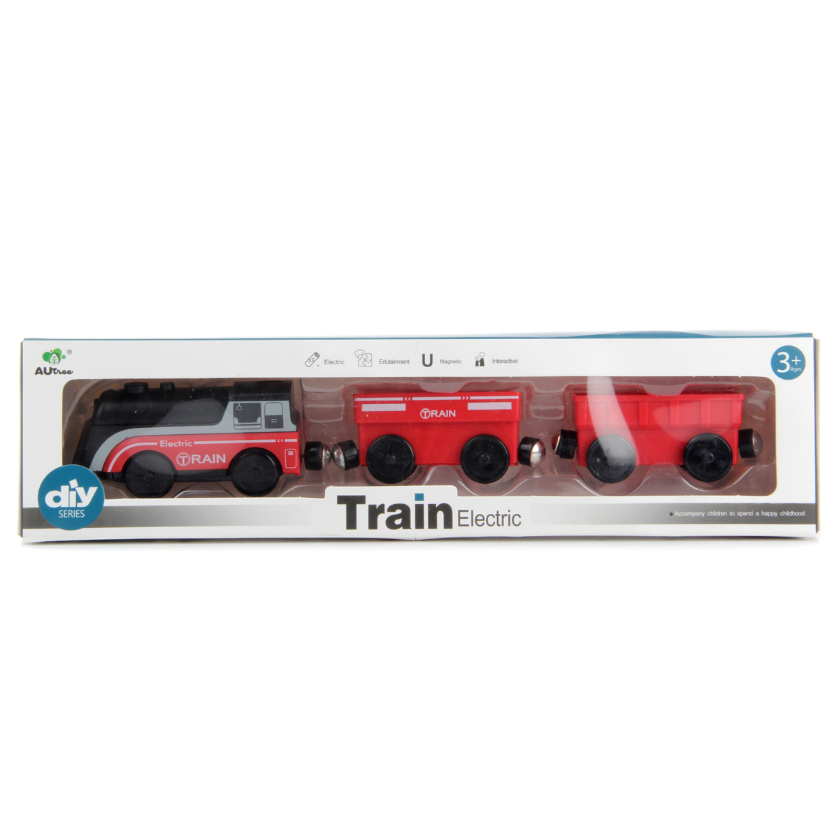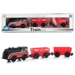 Очень красивый, стильный и яркий состав понравится каждому любителю поездов и железных дорог. В комплект входят локомотив и вагончики. Вагончики и локомотив соединяются между собой с помощью магнитов. Во включенном состоянии локомотив едет вперед, лампочка на носовой части подсвечивается. Локомотив заднеприводный. Благодаря такой игрушке ребенок будет с удовольствием развивать мелкую моторику рук, координацию движений, воображение, зрительное восприятие. Локомотив работает от одной батарейки ААА, не входит в комплект. Кнопка включения находится на корпусе локомотива. Игрушка изготовлена из качественного и безопасного полимерного материала. Размеры вагона: 9*4*4 см. Размеры локомотива: 11*4*5 см. Размеры коробки: 33*5*8 см.