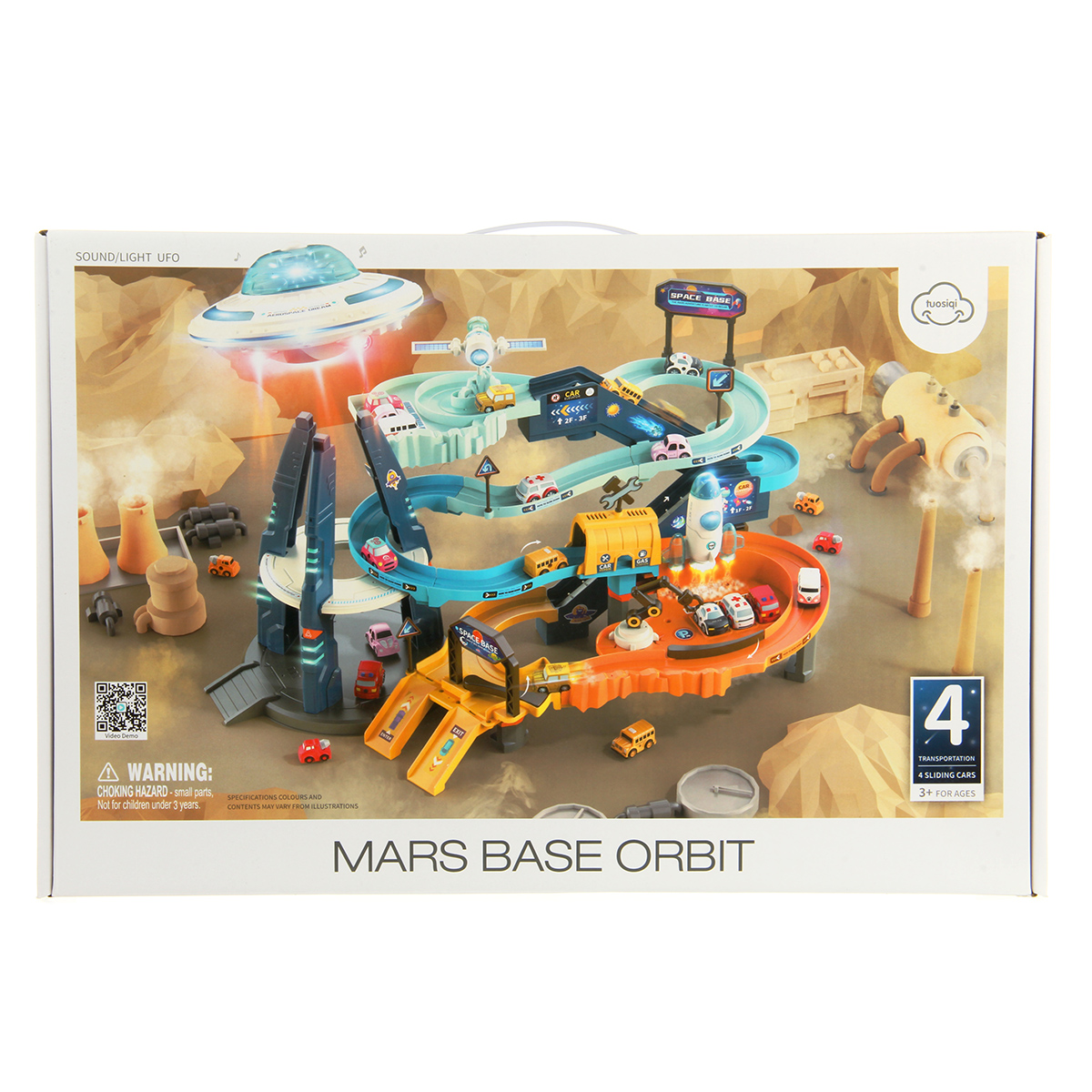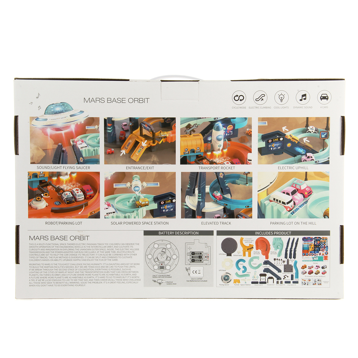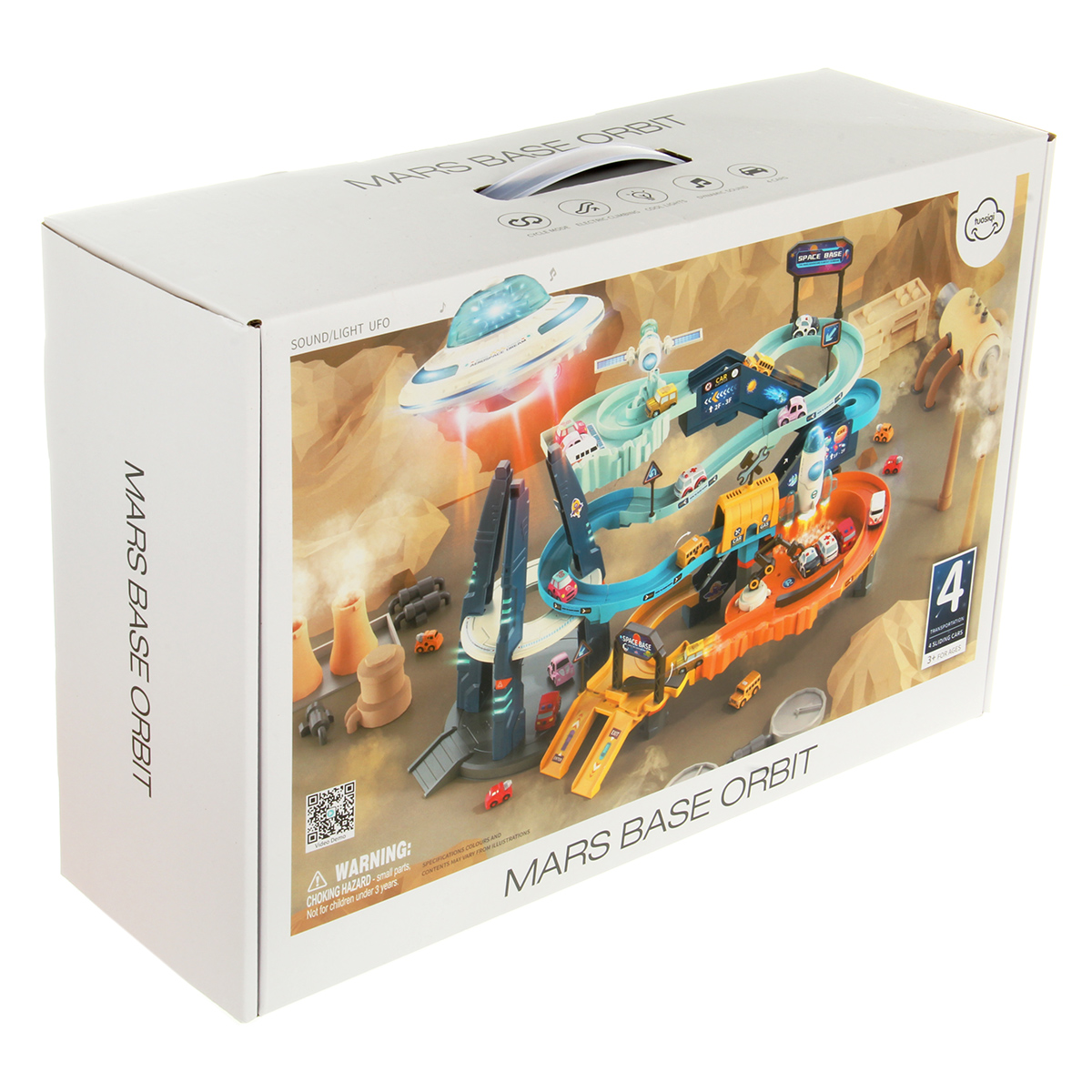 Игрушечный трек космос изготовлен из прочных и долговечных материалов.
