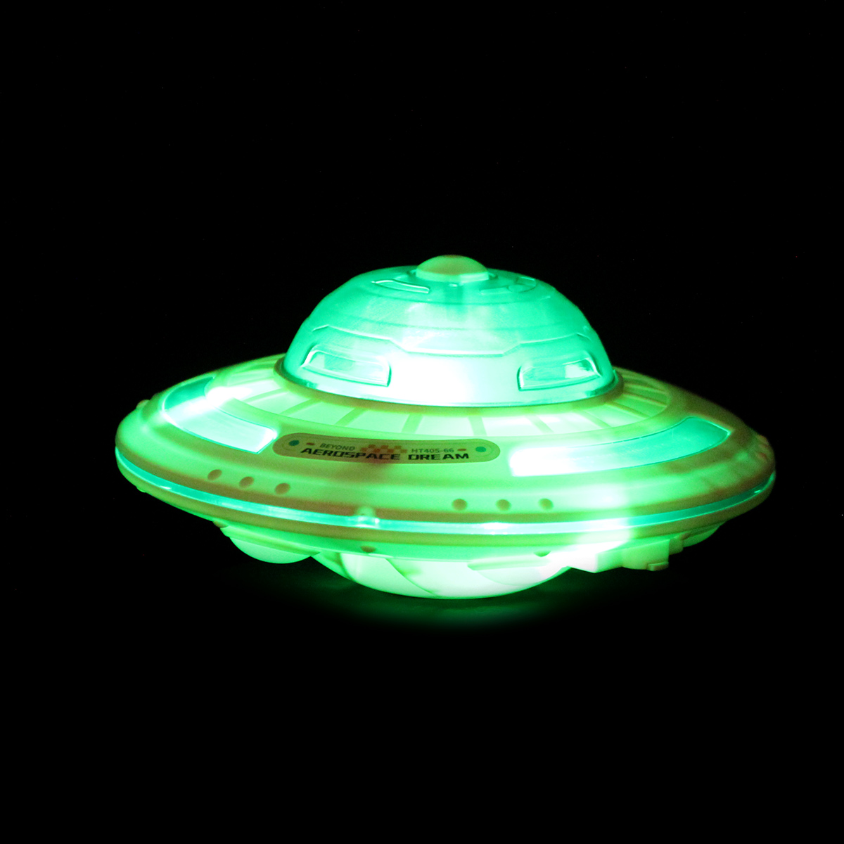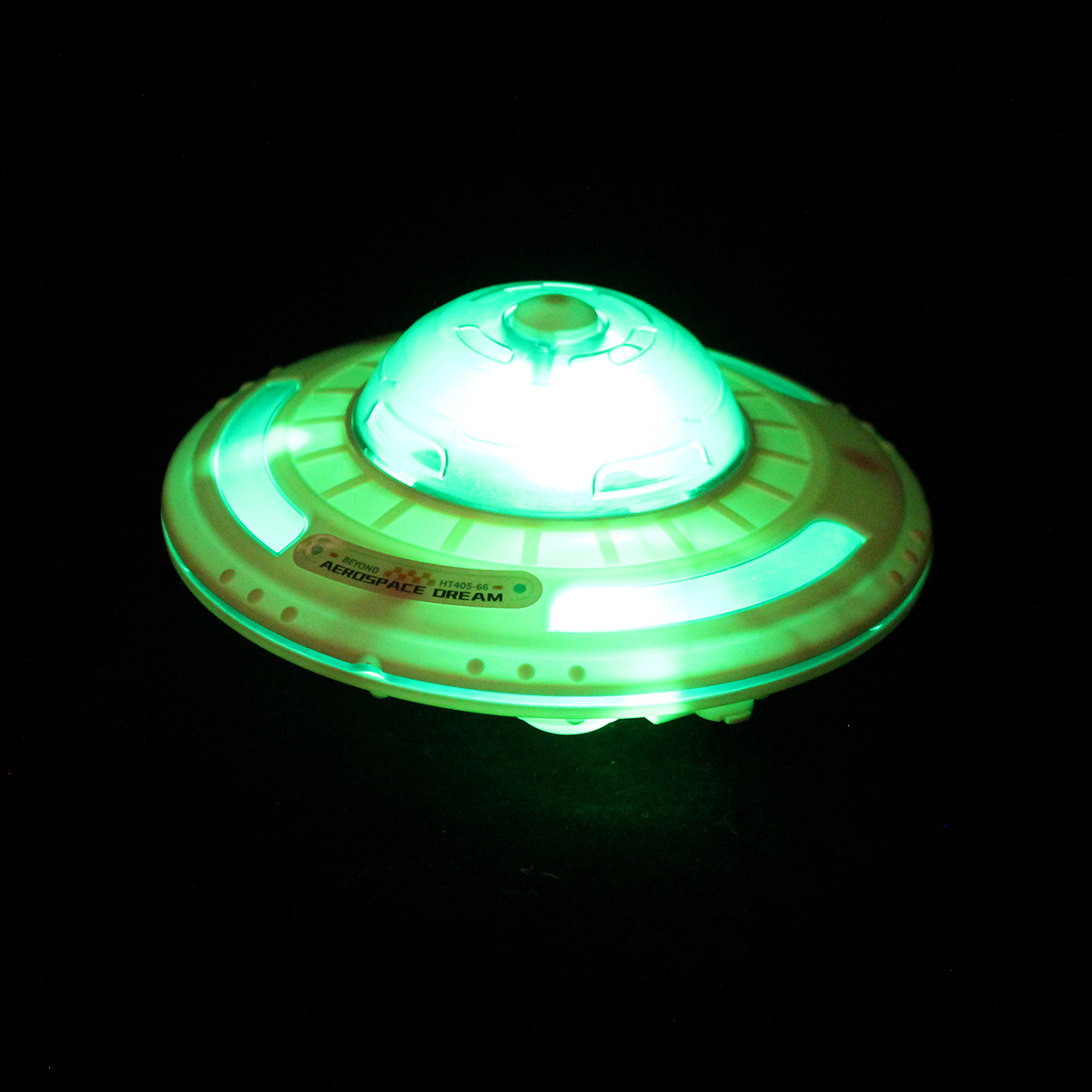 Летающая тарелка работает от 3 батареек LR44, входят в комплект.
