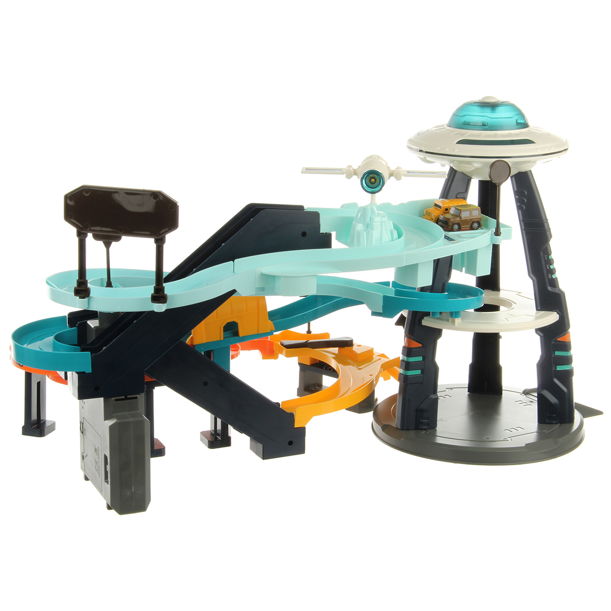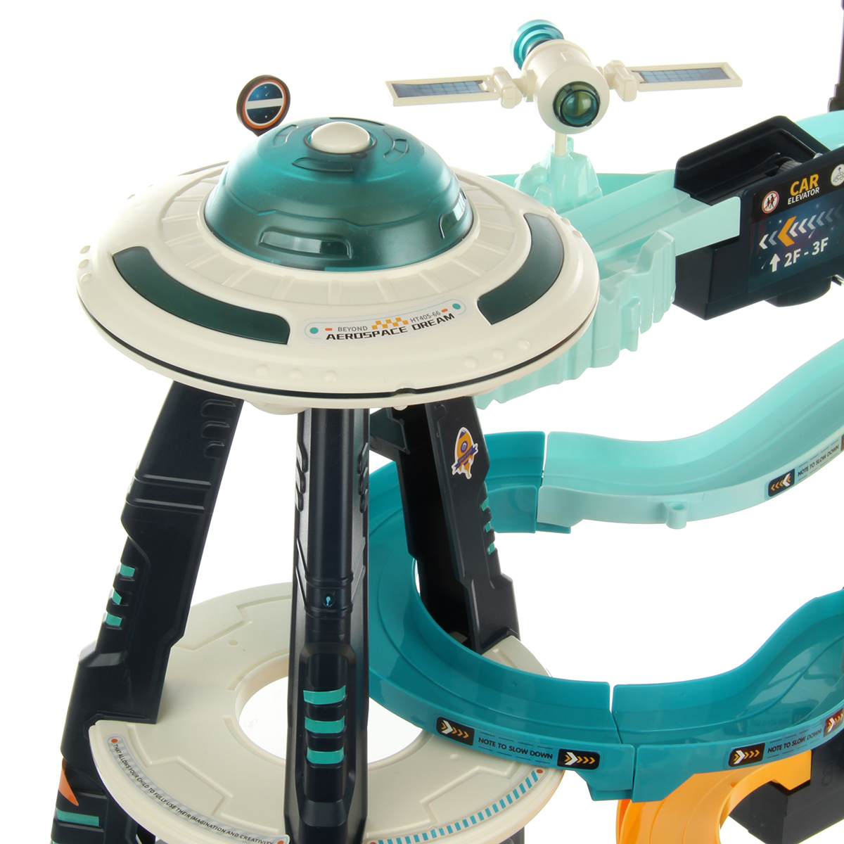Летающая тарелка со звуковыми и световыми эффектами, игрушка горка, машинки спускаются вниз.