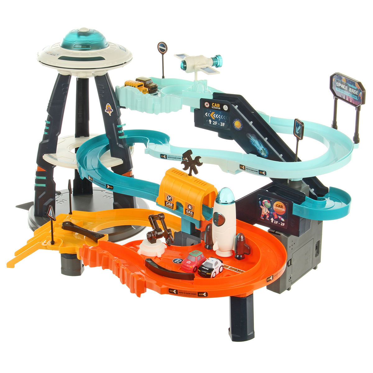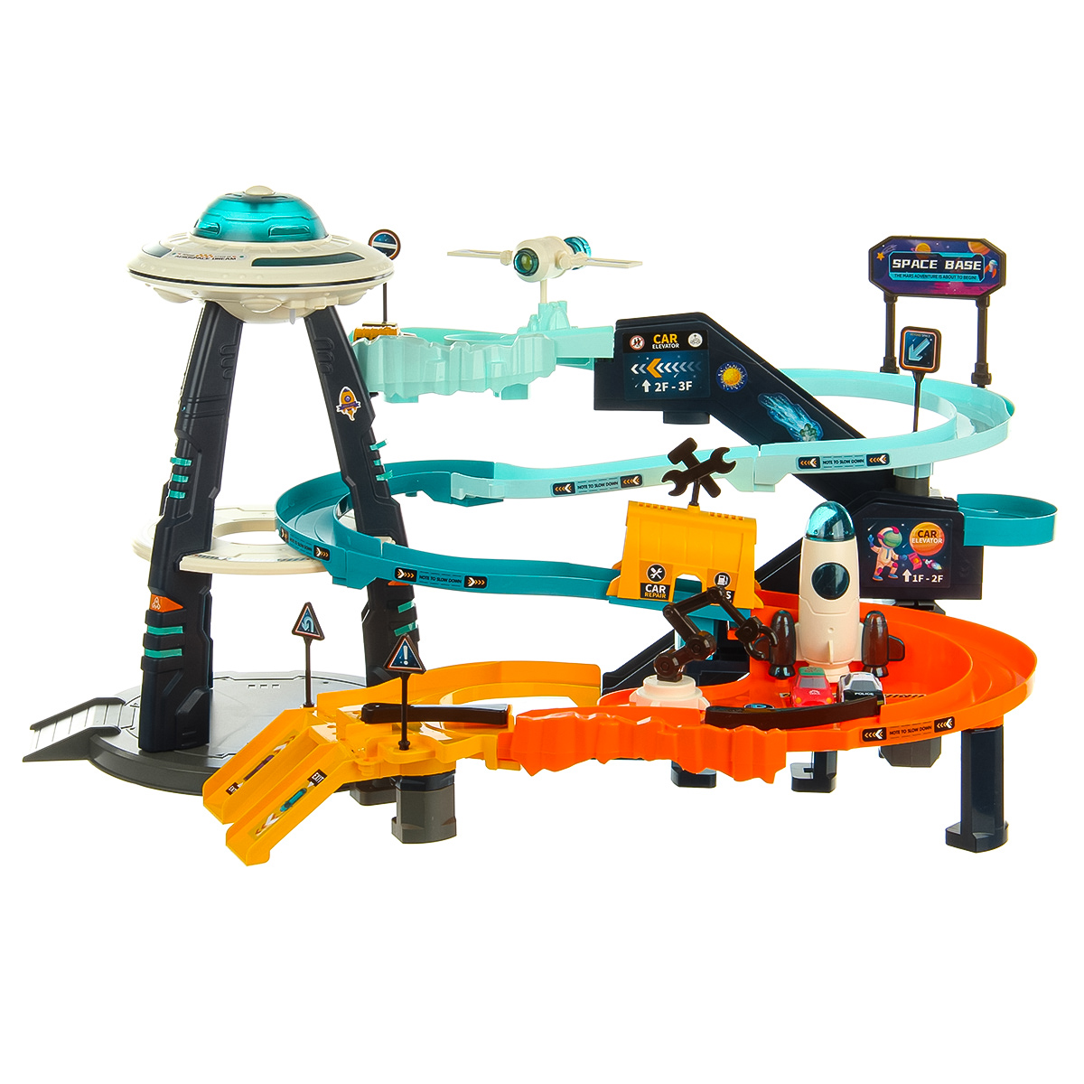 Очень интересная и занятная игрушка, космический трек с подвижными элементами и эскалаторами.