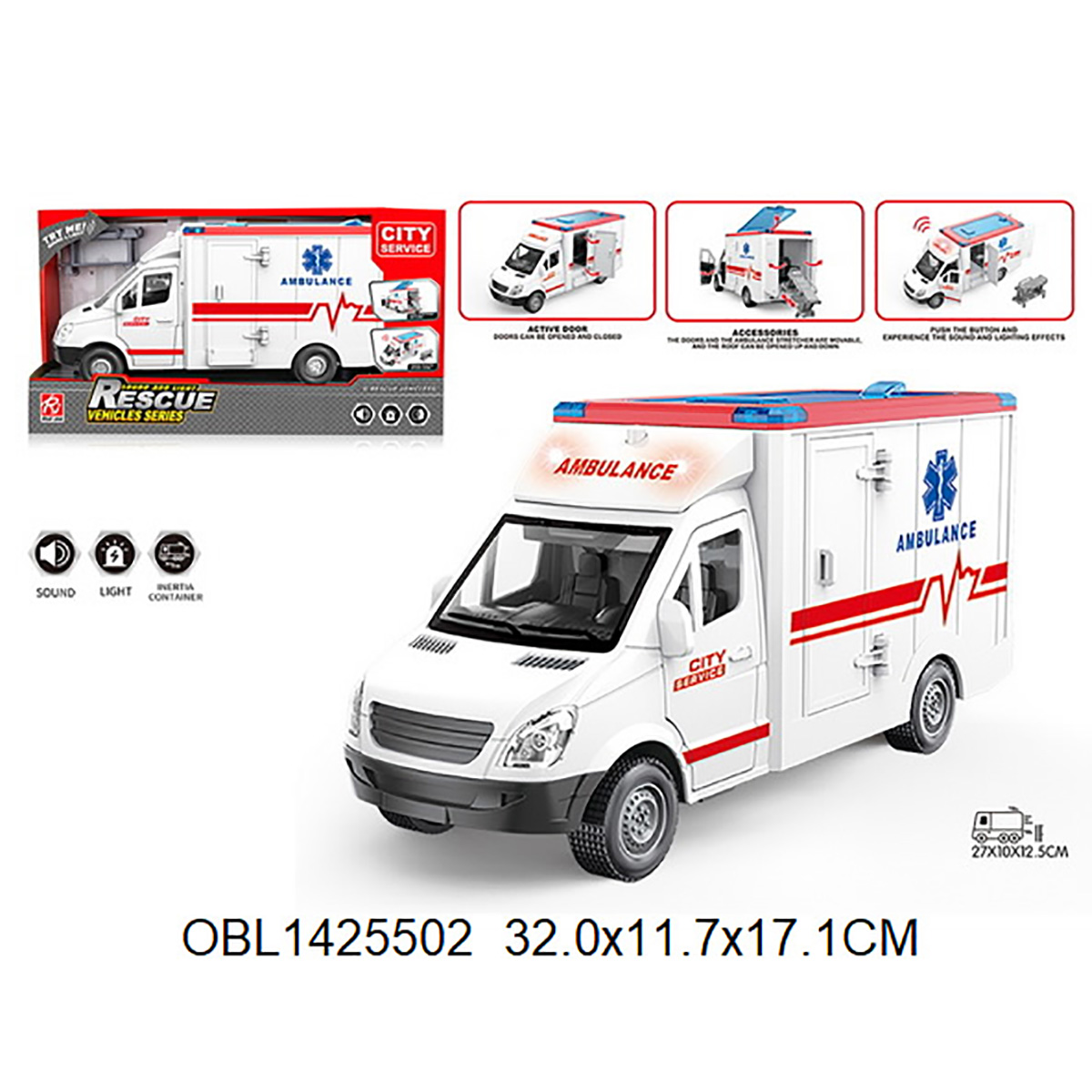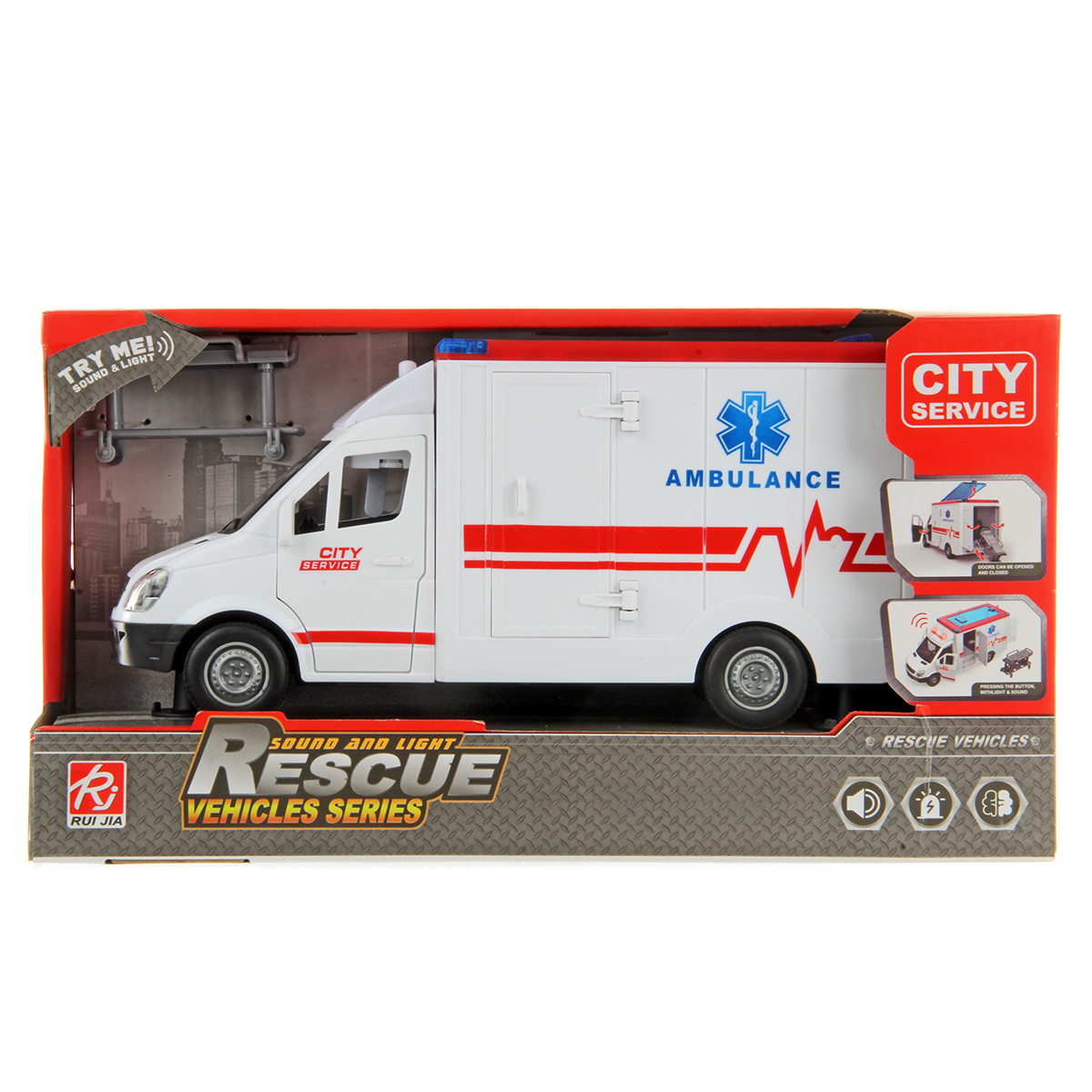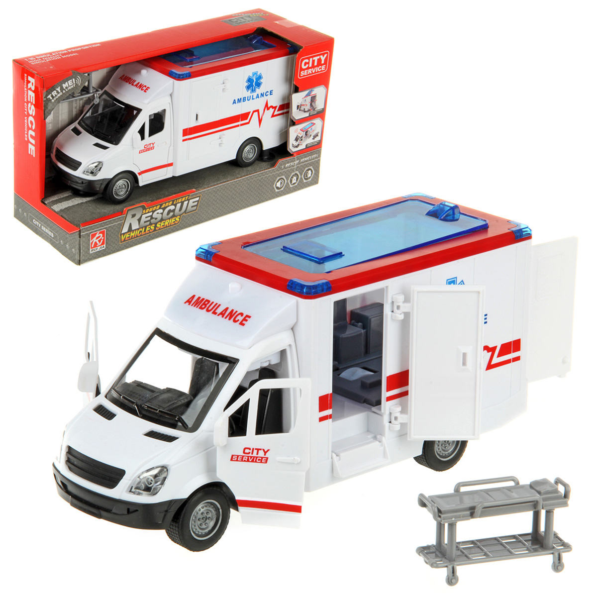 Игрушечная машина скорой помощи со светом и звуком для увлекательных сюжетных игр.