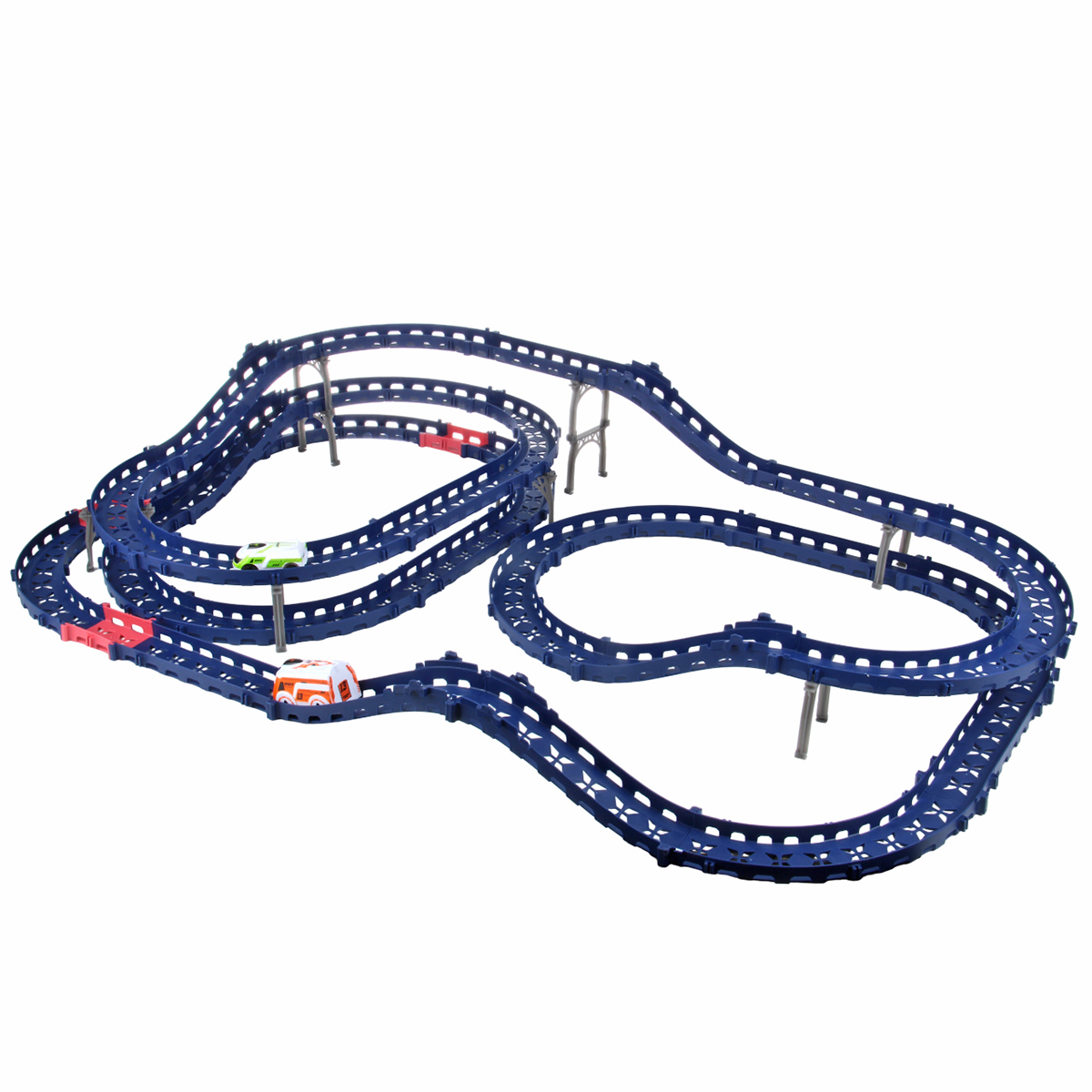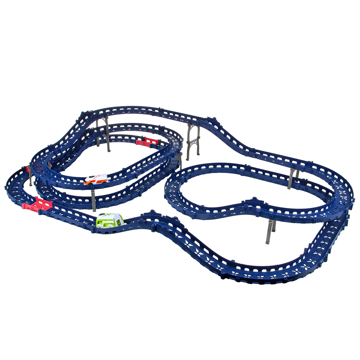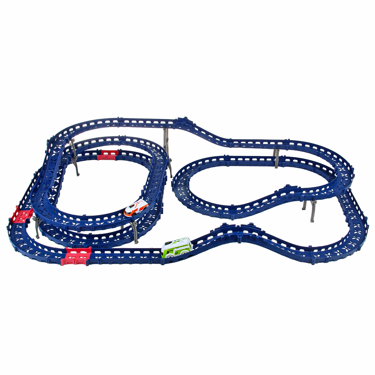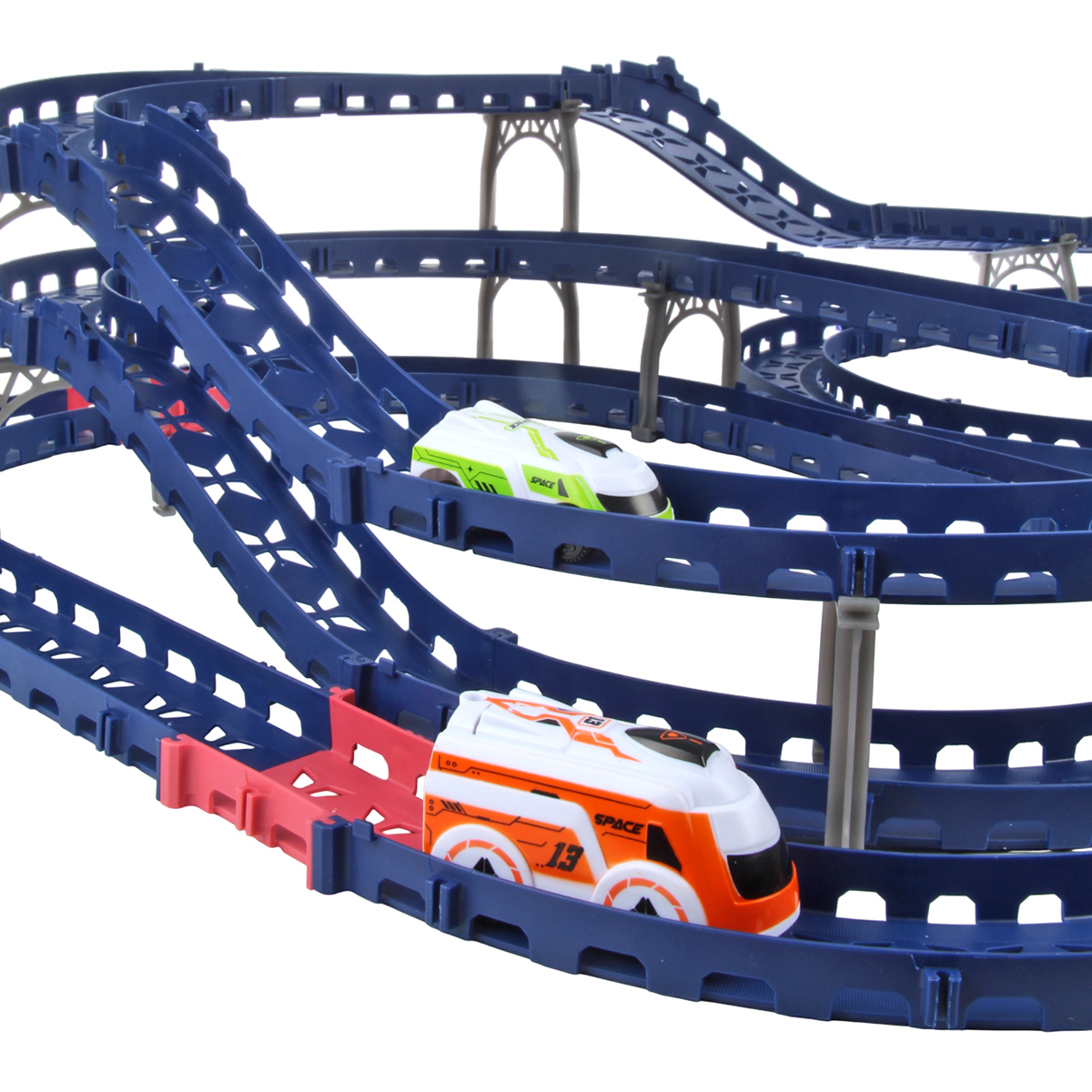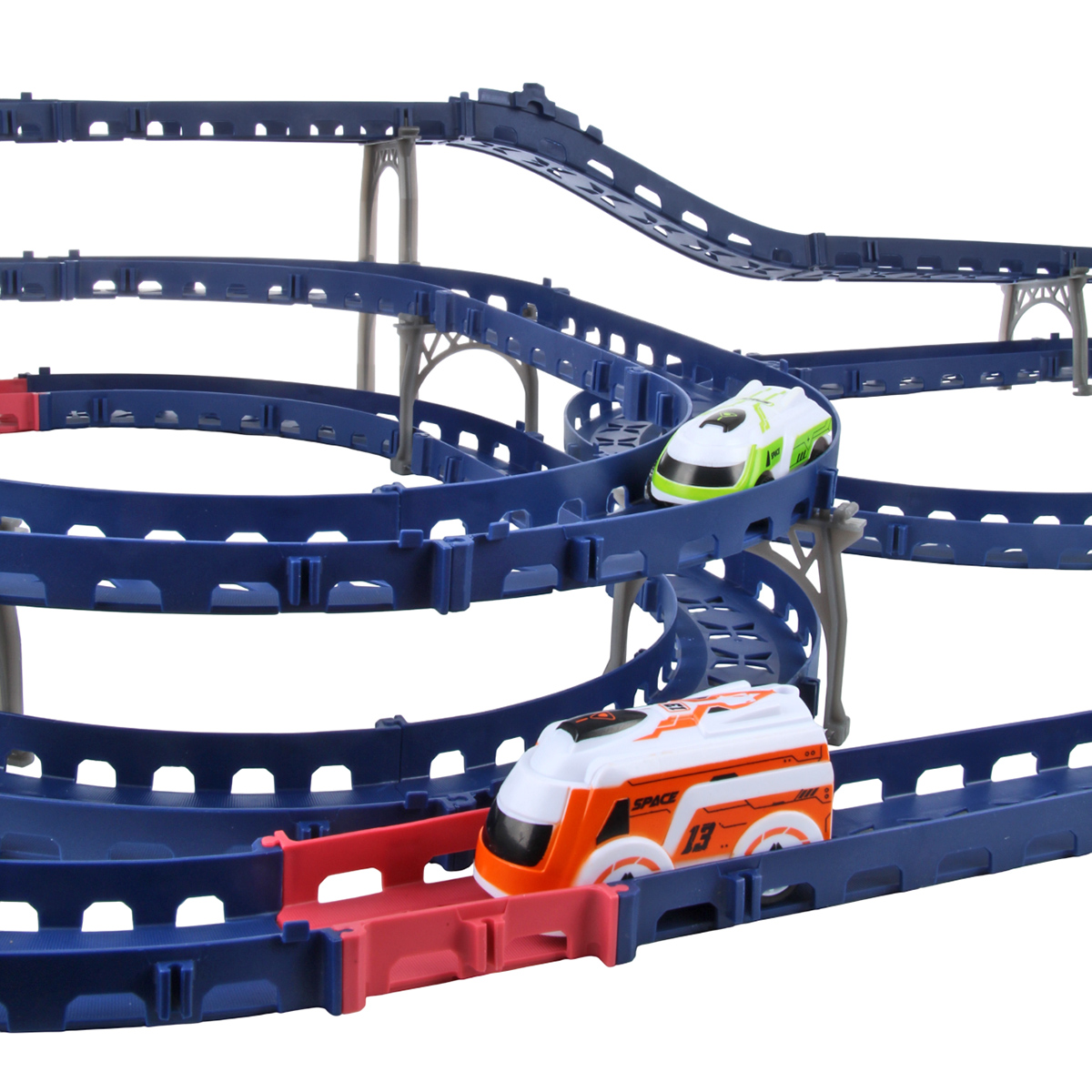 42 детали для сборки трека, 2 машинки, детали для сборки ракеты, космонавта, скутера, антенны, сегмента МКС, телескопа, флажка.