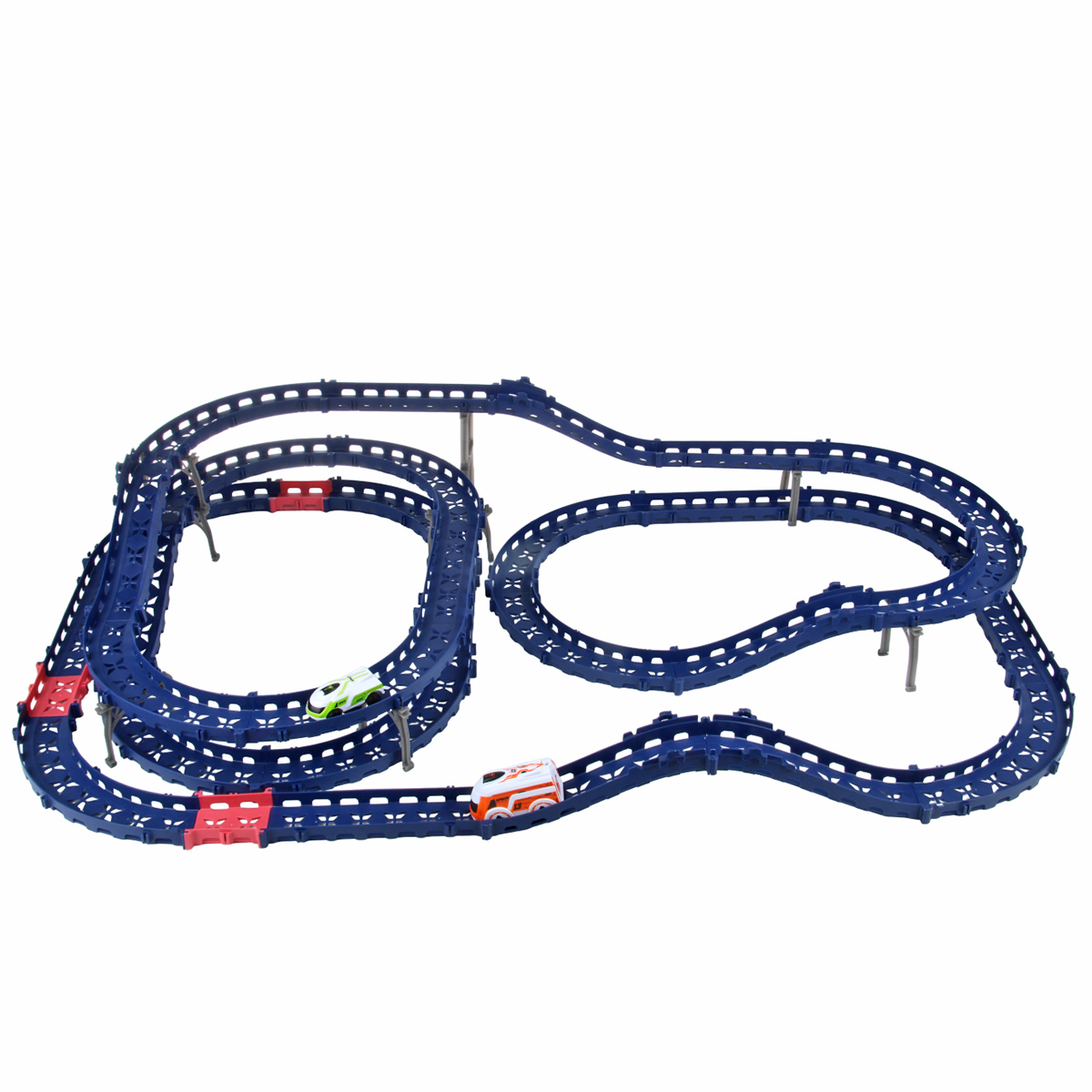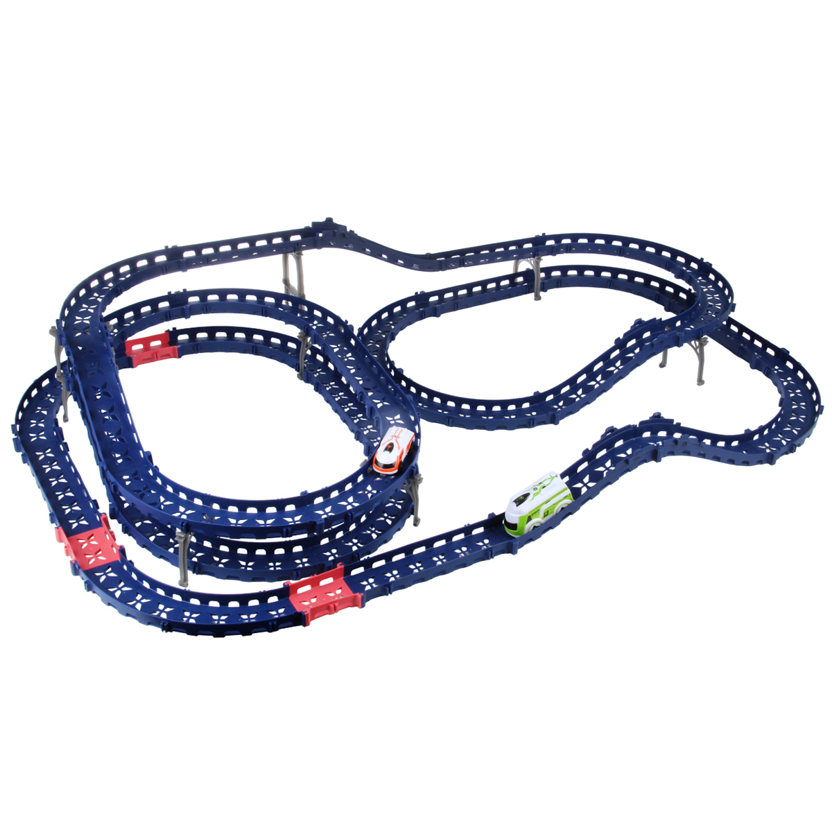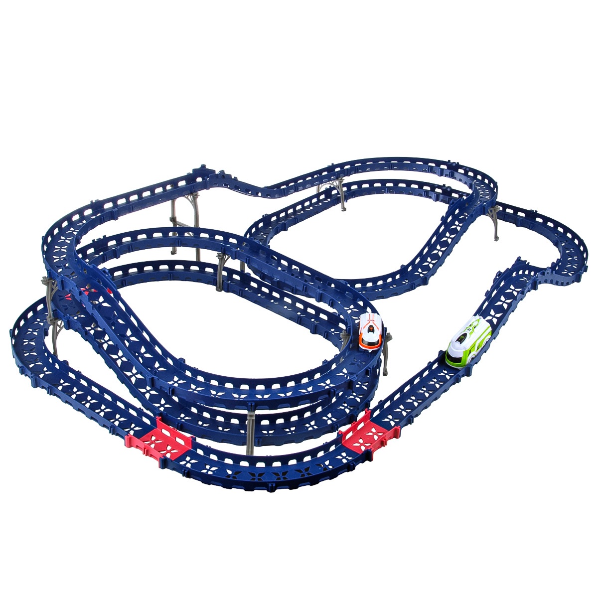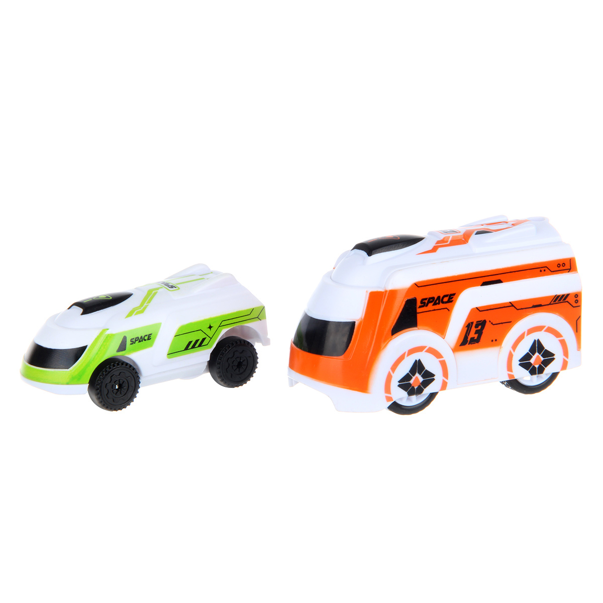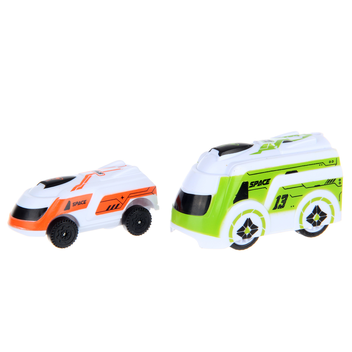42 детали для сборки трека, 2 машинки, детали для сборки ракеты, космонавта, скутера, антенны, сегмента МКС, телескопа, флажка.