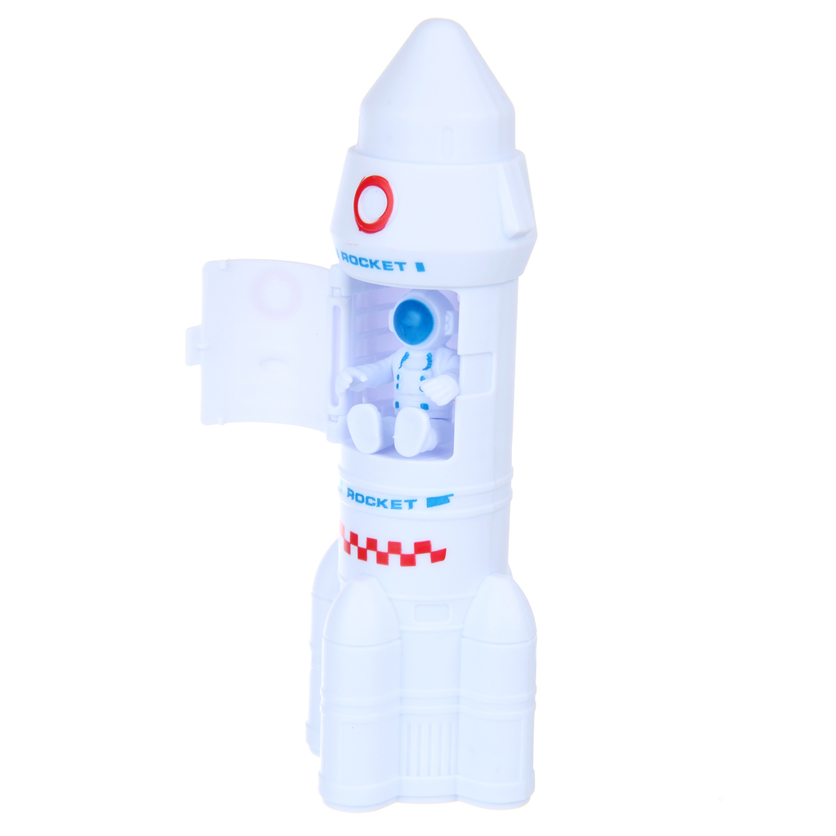 У ракеты открывается дверца в корпусе, туда можем поместить космонавта.