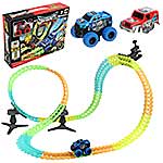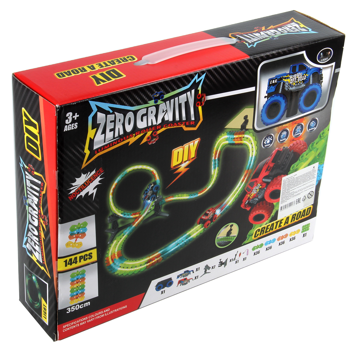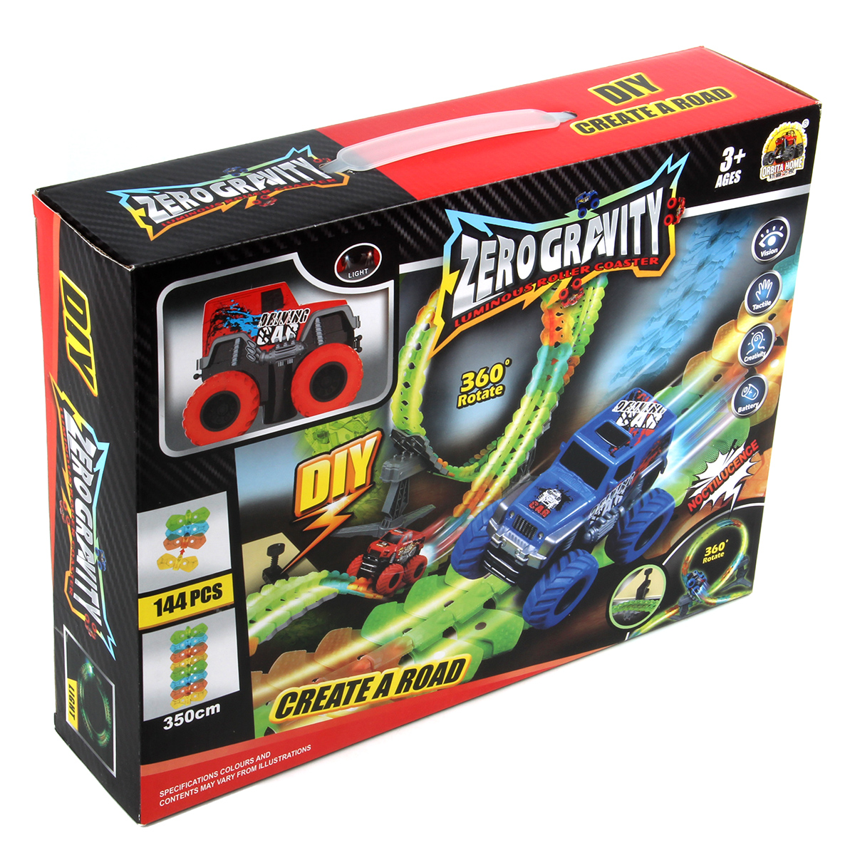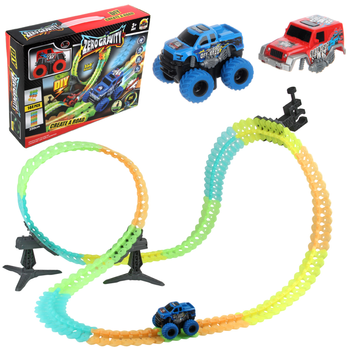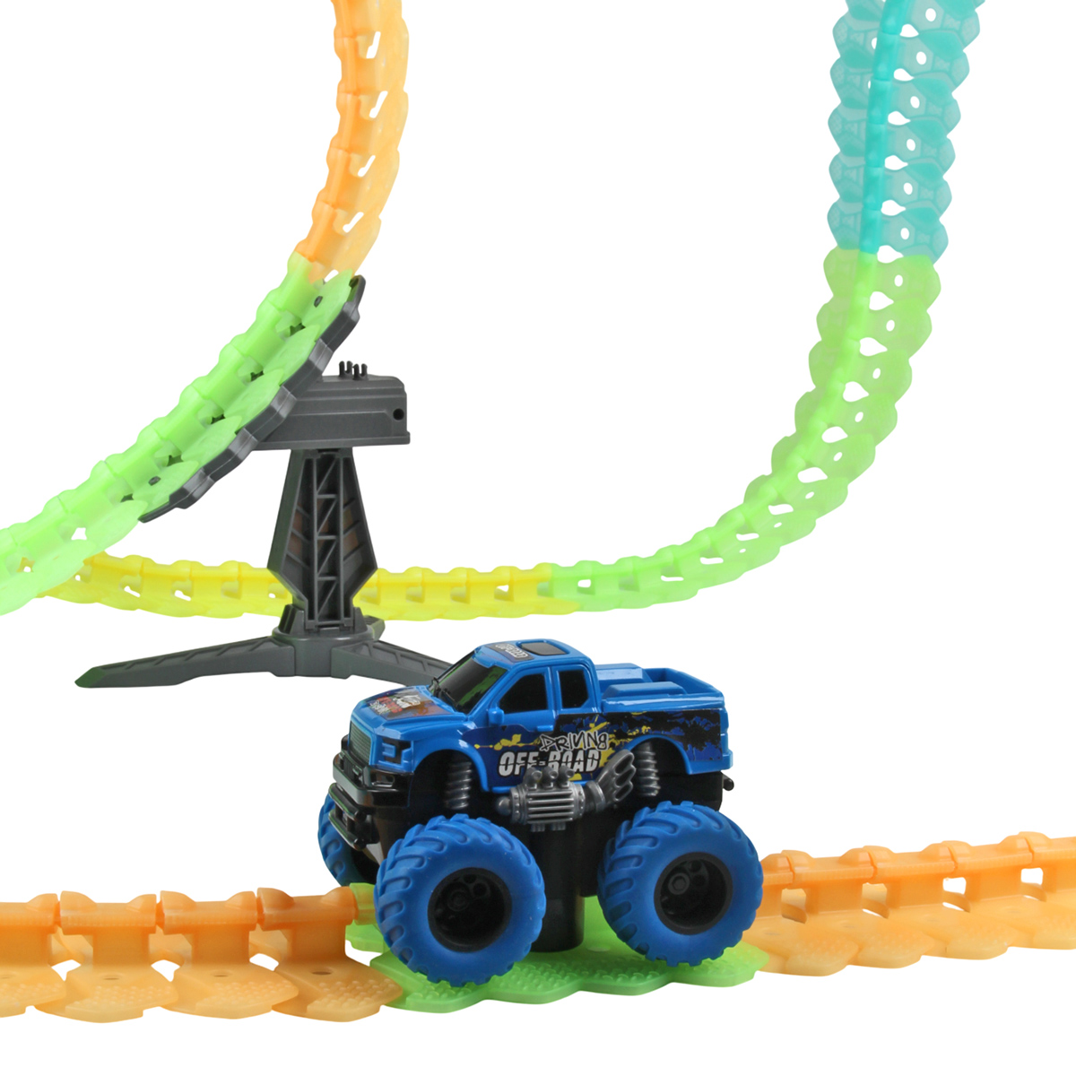 Светящийся автотрек с машинками для увлекательных игр с транспортом. Игровой трек изготовлен из прочных и долговечных материалов, прослужит много лет. Игрушечная трасса оформлена в оригинальном дизайне и яркой расцветке, светится в темноте. Такой трек с гоночными машинками станет замечательным подарком детям, мальчику, девочке, на новый год, день рождения и на любой другой повод.