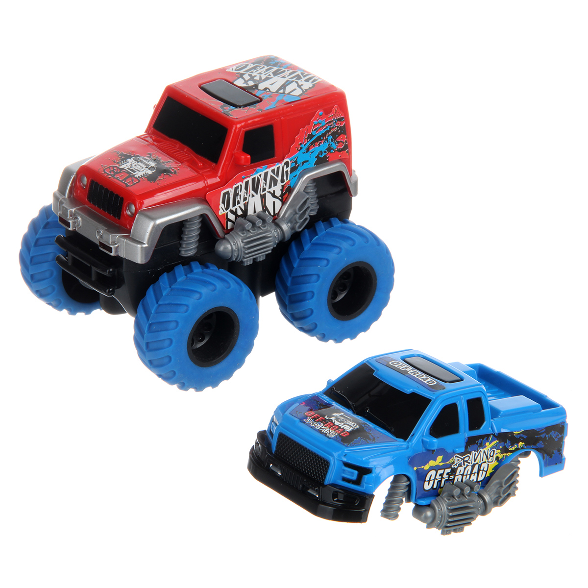 Машинка работает от аккумулятора под съемным корпусом. Соединяем аккумулятор с USB кабелем. Включается нажатием на кнопку над задними колесами, машинка начинает движение, при этом светятся лампочки в задней части корпуса. В комплекте также есть дополнительный корпус, чтобы можно было менять расцветку машинки. Колеса машины прорезиненные, корпус пружинит, обеспечивают надежное сцепление с треком, машинка не соскальзывает и не переворачивается при езде.