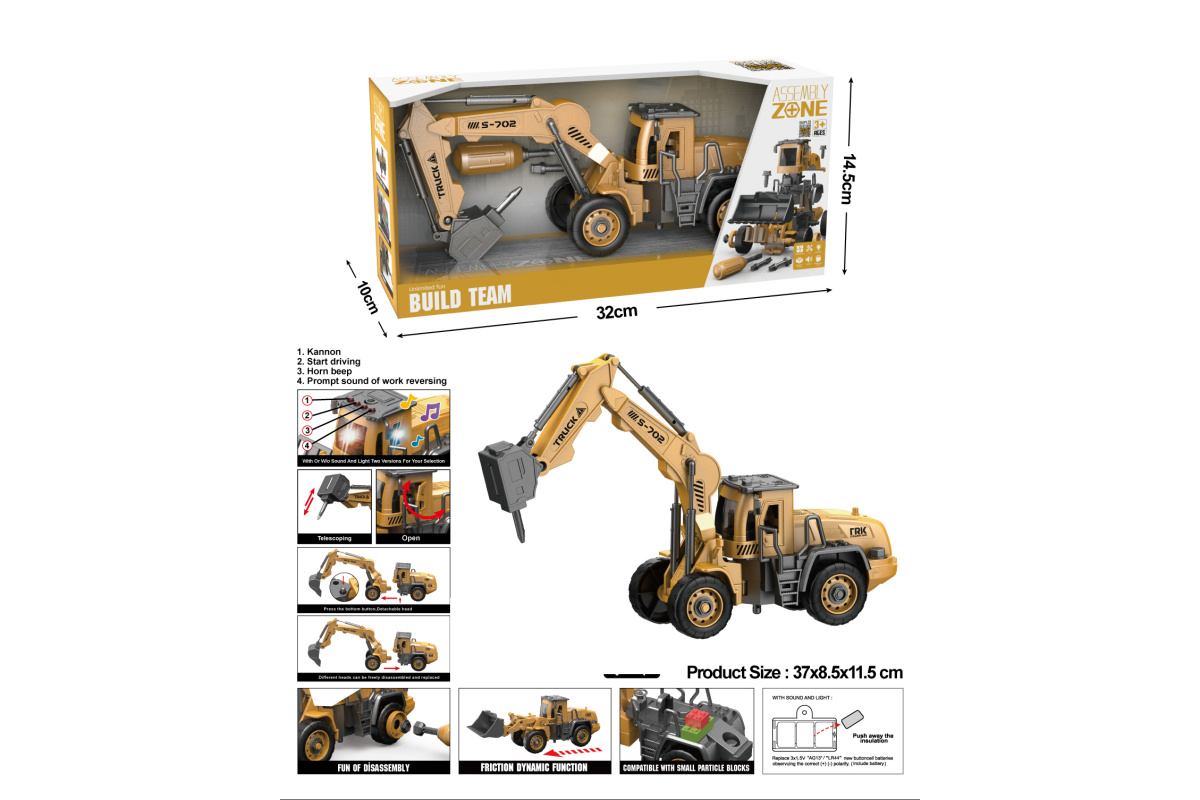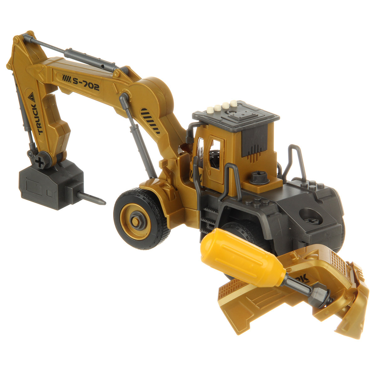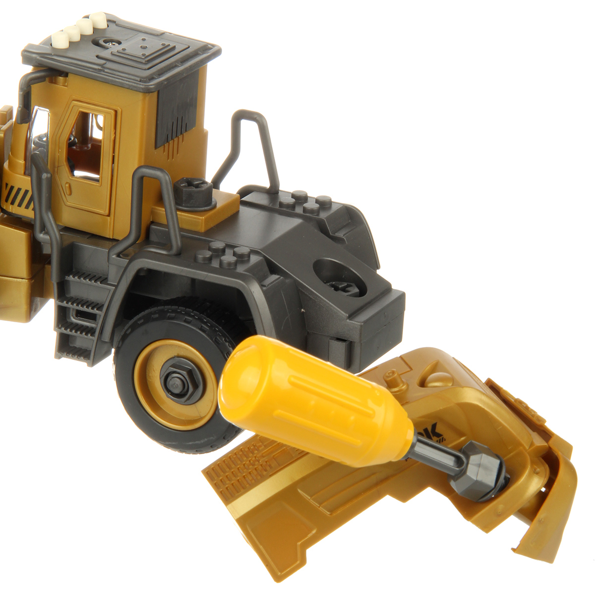1. С помощью отвертки разбираем экскаватор на части, насадки в отвертке меняются.