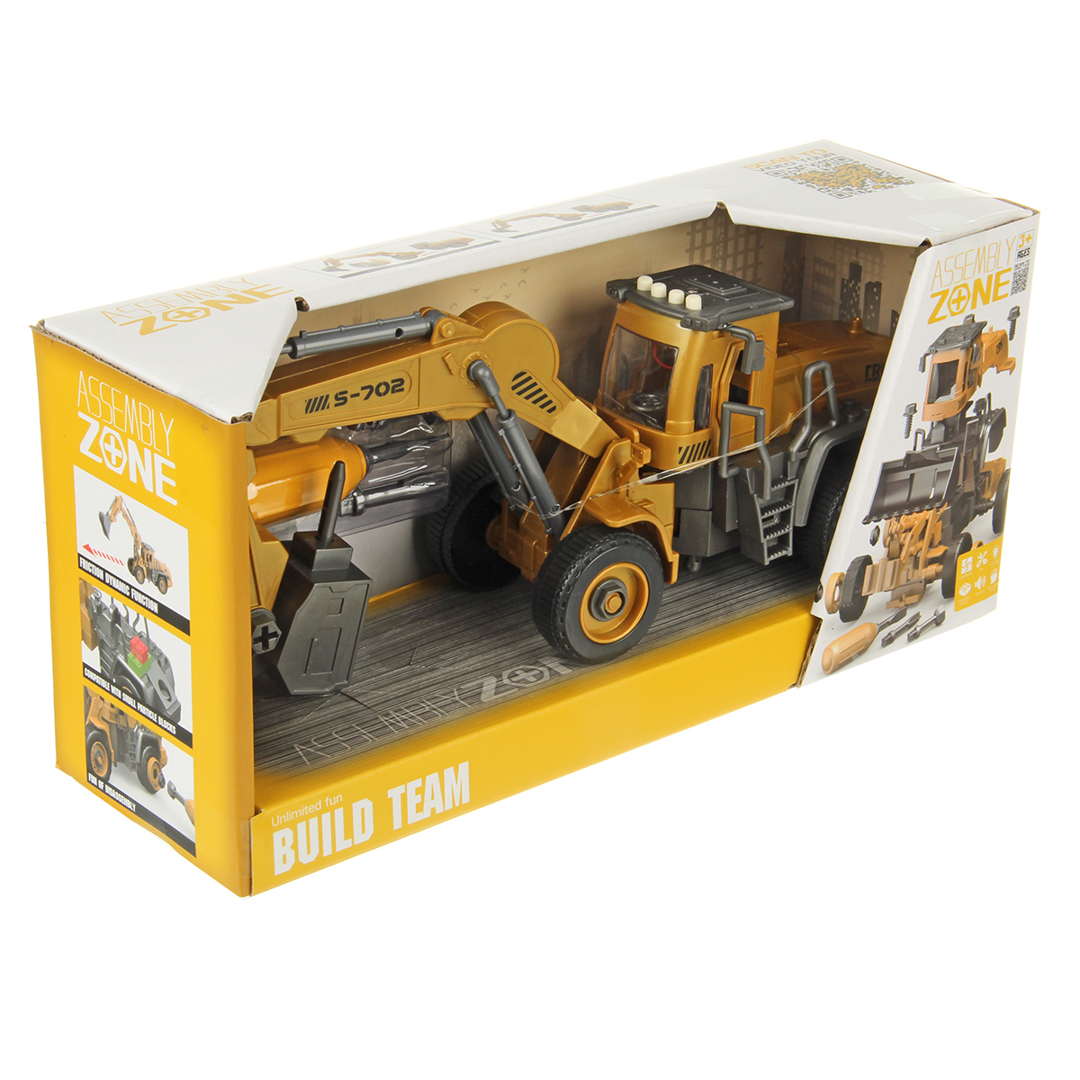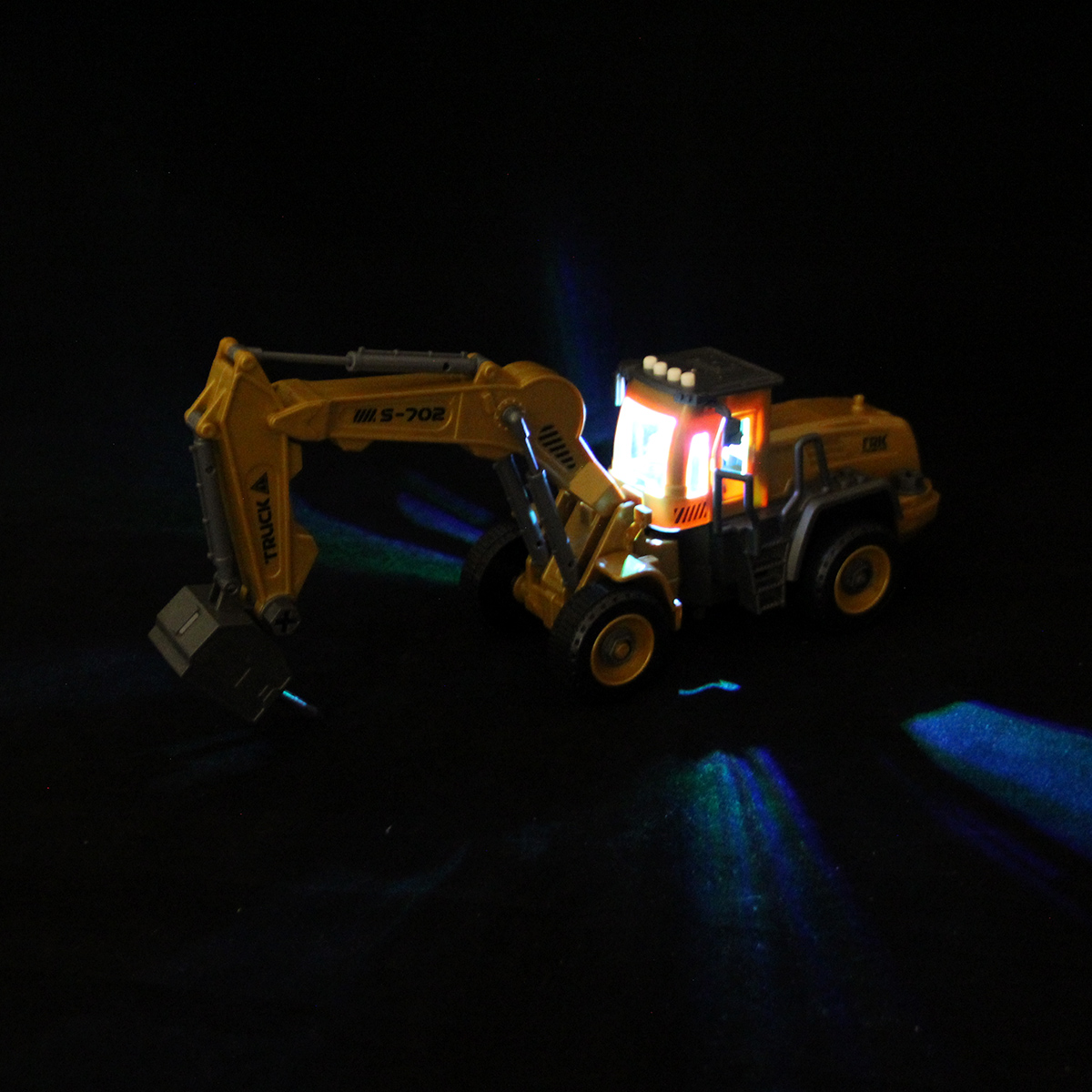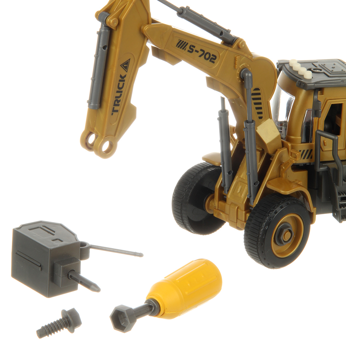 Игрушечный экскаватор изготовлен из прочных и долговечных материалов.
