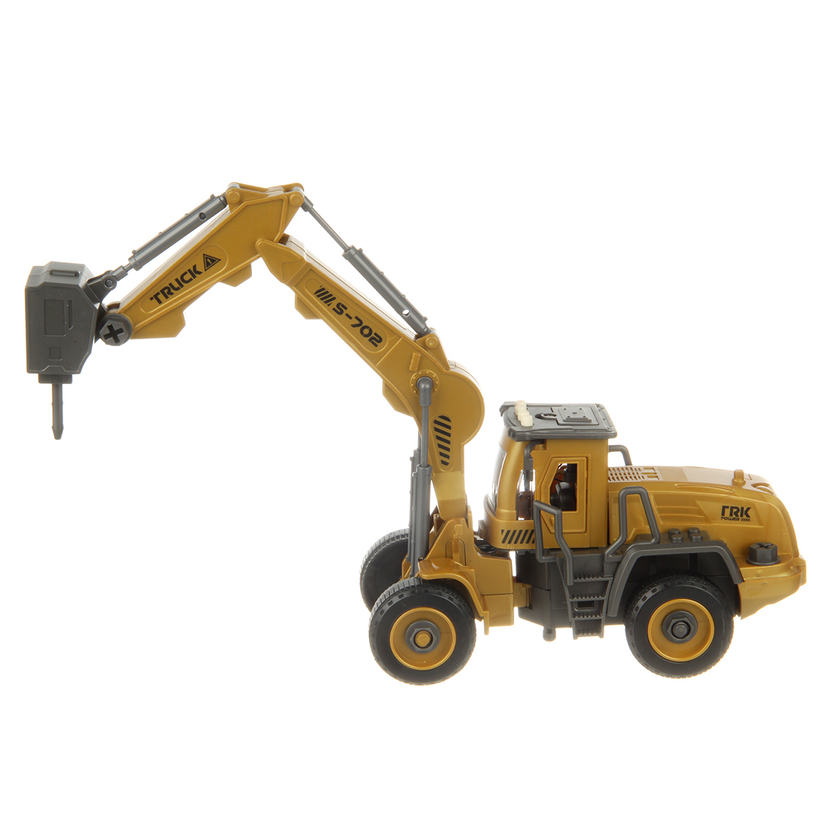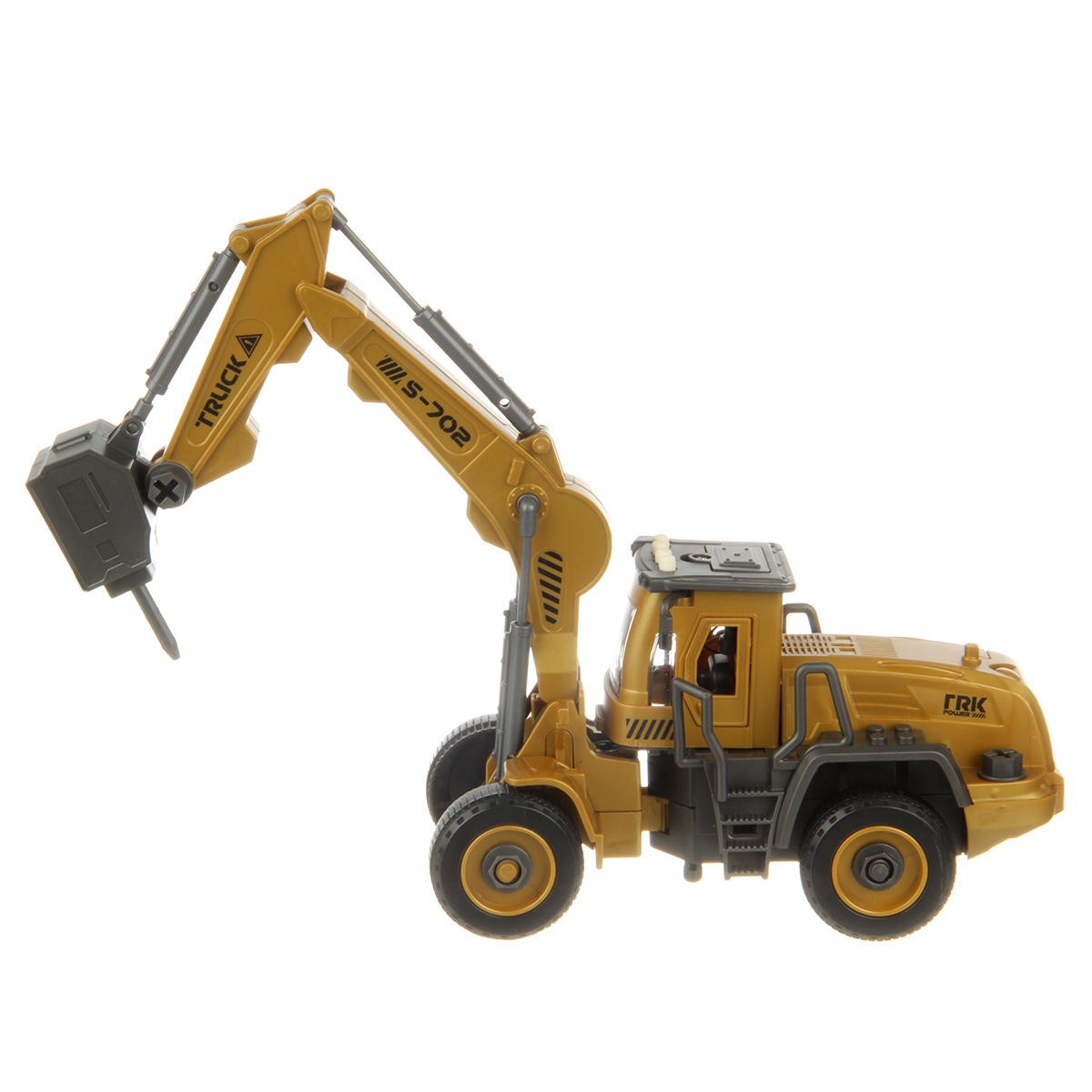 Детская игрушка спецтехника в реалистичном дизайне, трактор с фрикционным механизмом, подвижные стрела и гидромолот.