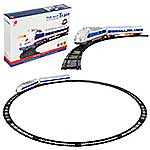 Набор поезд с рельсами изготовлен из полимера.