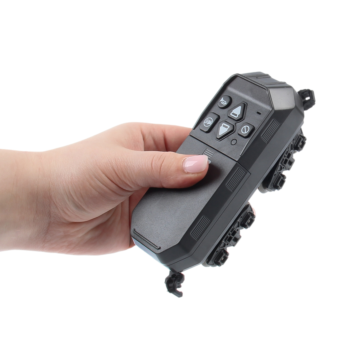 Размеры пульта управления с учетом сцепок 15х5х5 см.