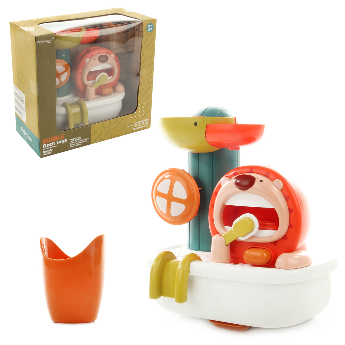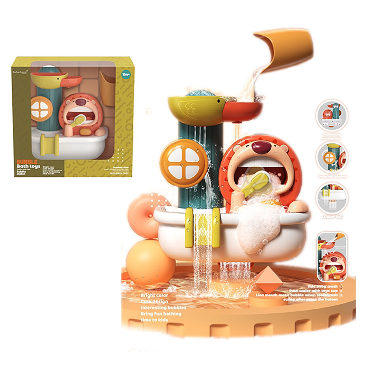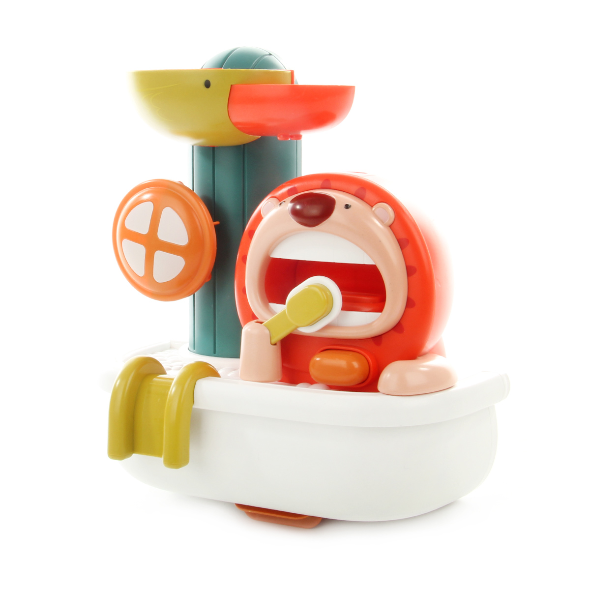 Игрушка мельница со львенком, который умеет чистить зубы, это отличная игрушка детская для купания, выполненная в яркой, привлекающей внимание, расцветке, нет острых углов, безопасна для ребенка.