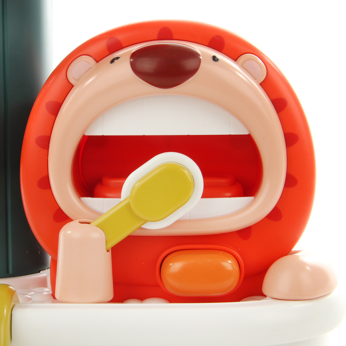 2. При нажатии на большую кнопку лев начинает двигать зубную щетку вверх и вниз, имитируя чистку зубов.