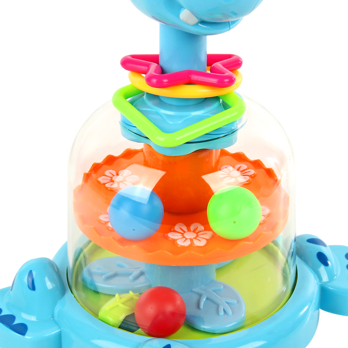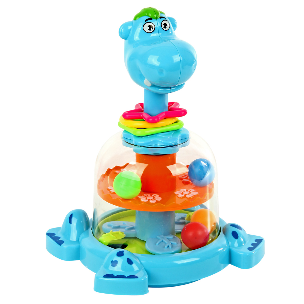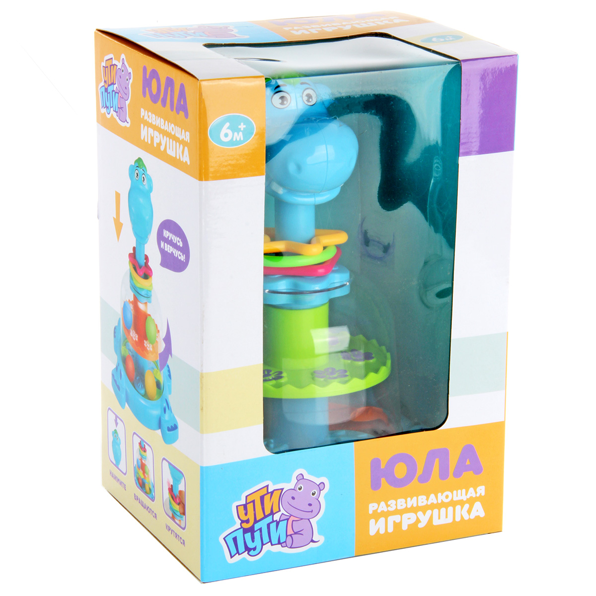 Юла в виде веселого бегемотика понравится каждому малышу. Игрушка оформлена в очень милом и симпатичном дизайне, обладает яркой расцветкой, ребенок будет в восторге от такой игрушки. Если нажать на голову бегемотика, шарики внутри игрушки станут двигаться за счет вращения подставок. Фигурные элементы на шее бегемотика перемещаются и прокручиваются. Благодаря такой игрушке ребенок будет с удовольствием развивать мелкую моторику рук, координацию движений, воображение, тактильные навыки, познакомится с цветами и формами. Юла станет хорошим подарком. Обязательно порадуйте малыша такой потрясающей игрушкой. Игрушка предназначена для детей до 3 лет. Игрушка изготовлена из высококачественного и безопасного полимерного материала. Размеры игрушки: 17*15*23,5 см. Размеры коробки: 17*15*26 см.