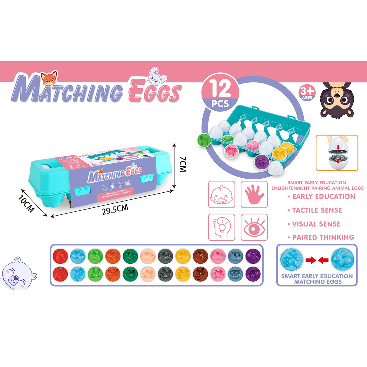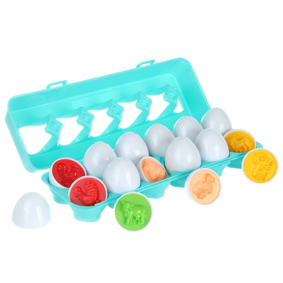 Каждое яйцо можно разделить на 2 половинки, внутри выпуклая фигурка животного. Сортер, подбираем каждому животному свою скорлупу. 12 животных, изучаем их названия и цвета, развиваем когнитивные способности. Сортер животные также отлично подходит для игр с полимерной глиной и кинетическим песком.