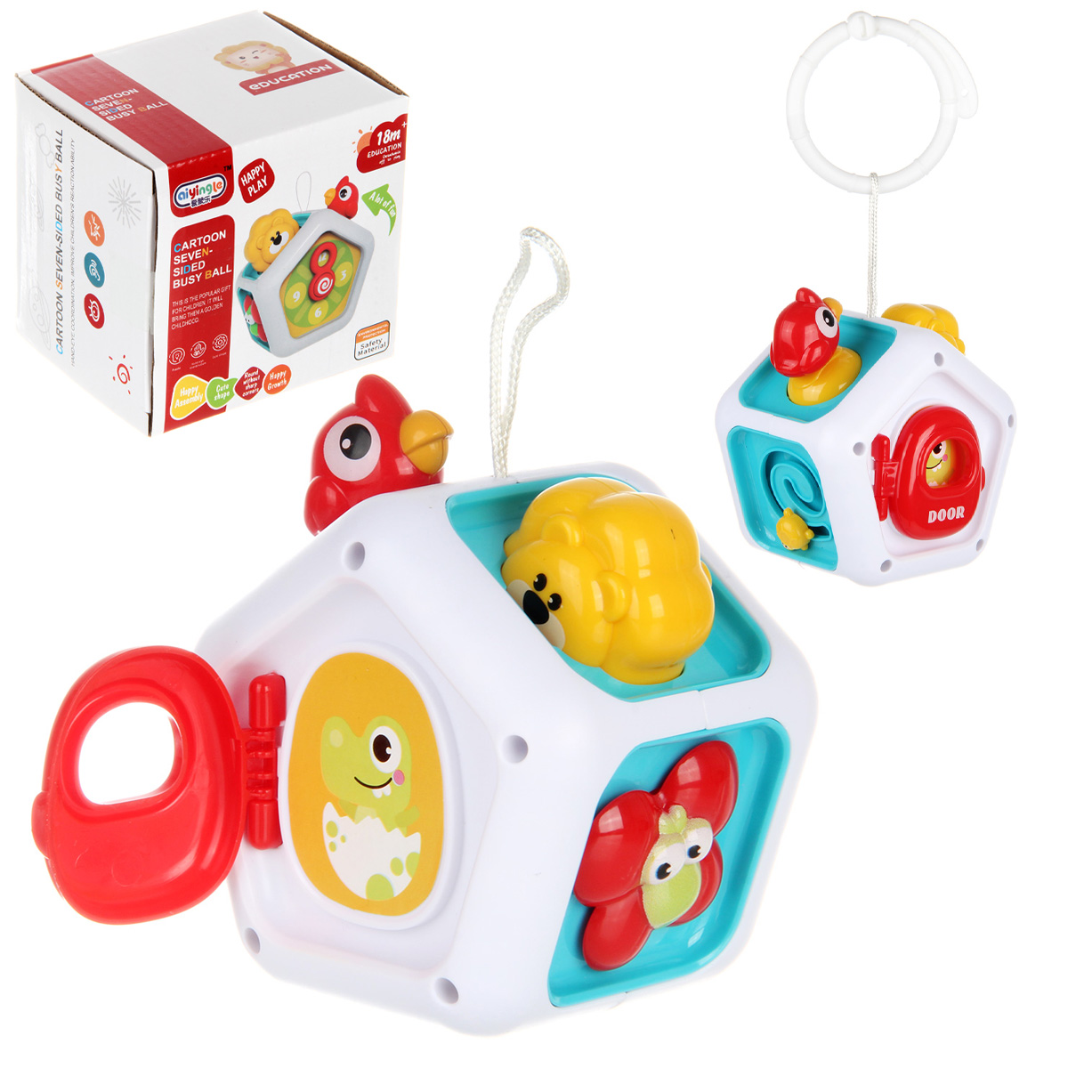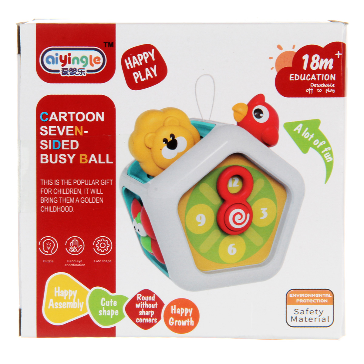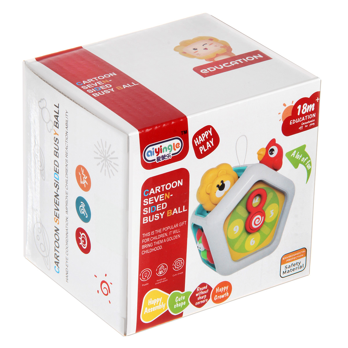 Бизиборд со множеством игровых секций, подвижные элементы, которые можно нажимать, крутить, передвигать. Развивающий игровой центр с часиками, крутим стрелку, фигурки животных, которые можно нажимать, крутящаяся бабочка. Бизикуб имеет закругленные углы, безопасно для ребенка. Игрушка монтессори для малышей изготовлена из прочных и долговечных материалов, отличается качественным исполнением. Развивающий бизиборд обладает компактными размерами, удобно взять с собой в дорогу. Бизиборд домик оформлен в стилизованном дизайне и яркой расцветке, привлекает внимание. Развивающие игрушки станут замечательным подарком мальчику, девочке. В комплект входит кольцо, можно подвесить на кроватку, коляску, развивающий коврик, манеж.
