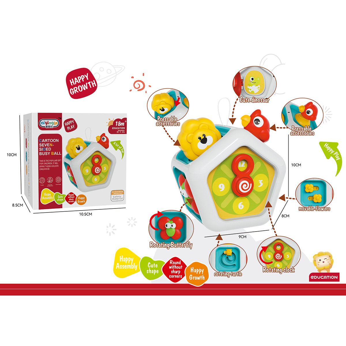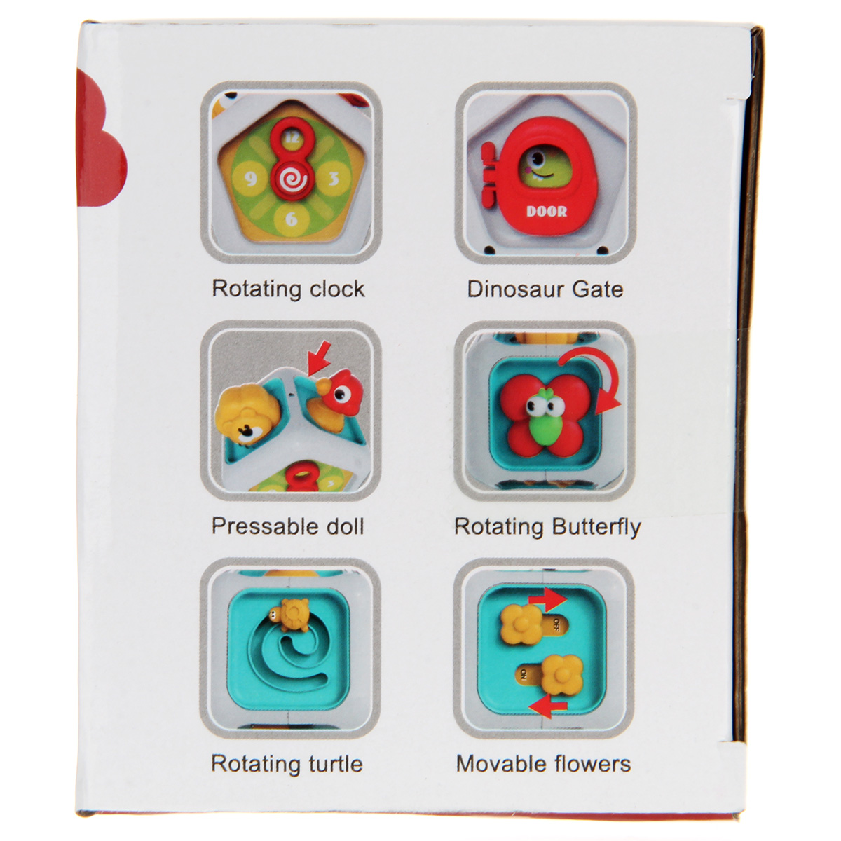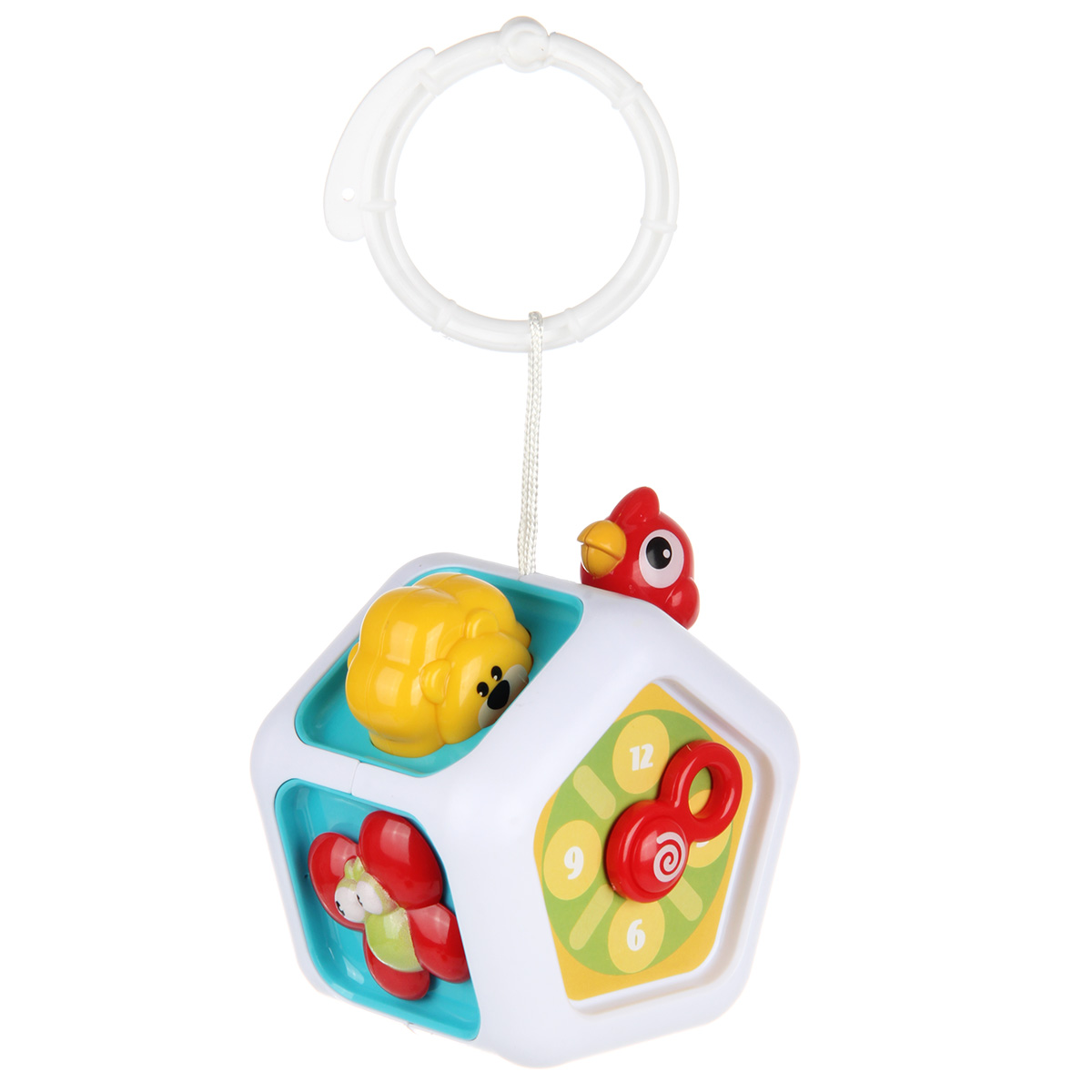 Бизиборд со множеством игровых секций, подвижные элементы, которые можно нажимать, крутить, передвигать. Развивающий игровой центр с часиками, крутим стрелку, фигурки животных, которые можно нажимать, крутящаяся бабочка. Бизикуб имеет закругленные углы, безопасно для ребенка. Игрушка монтессори для малышей изготовлена из прочных и долговечных материалов, отличается качественным исполнением. Развивающий бизиборд обладает компактными размерами, удобно взять с собой в дорогу. Бизиборд домик оформлен в стилизованном дизайне и яркой расцветке, привлекает внимание. Развивающие игрушки станут замечательным подарком мальчику, девочке. В комплект входит кольцо, можно подвесить на кроватку, коляску, развивающий коврик, манеж.