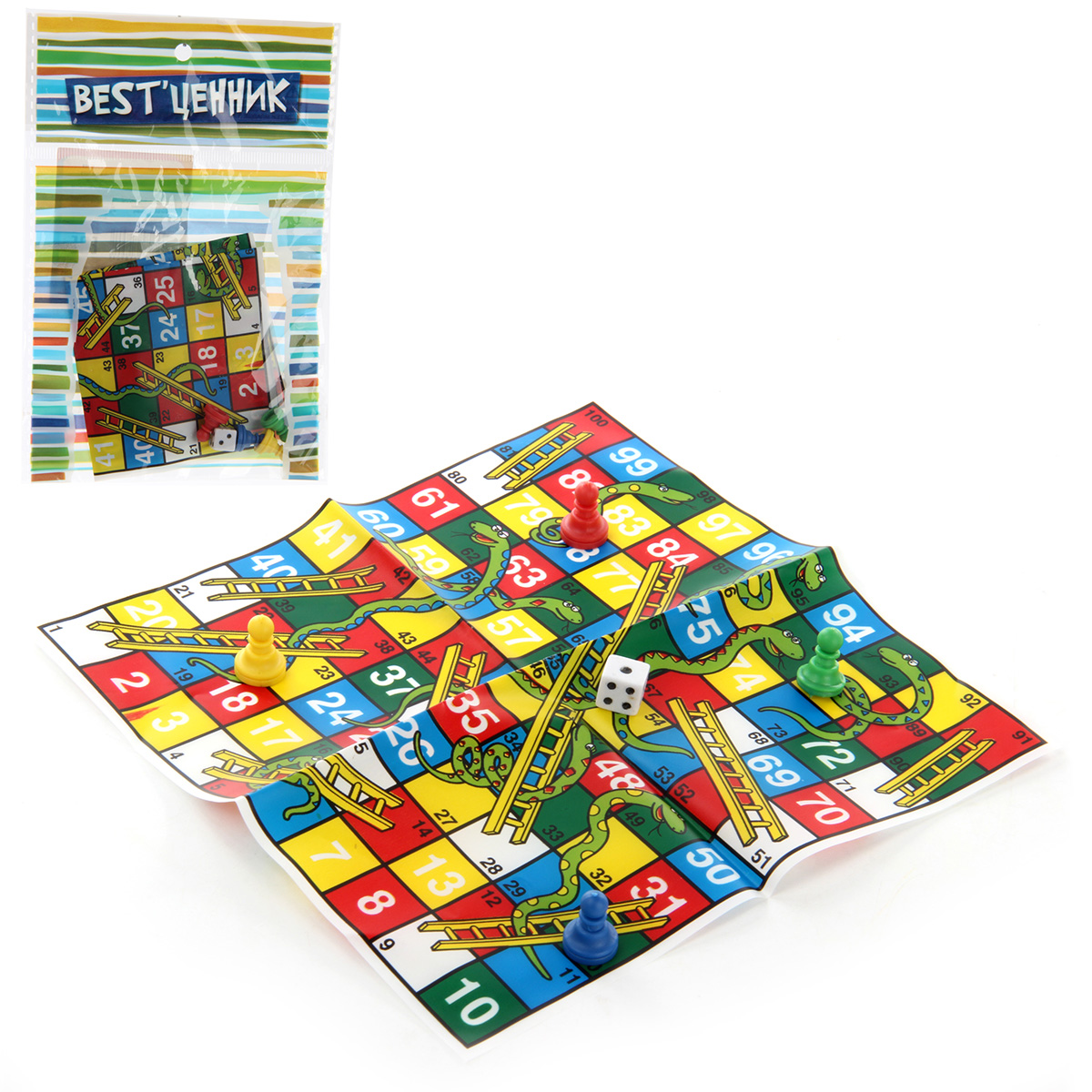 В комплект входят игровое поле, 4 пешки и кубик. пластик Упаковка: пакет. Размеры игрового поля: 14*14 см. Размеры фигурки пешки: 1*1*1,5 см. Размеры кубика: 1*1*1 см. Размеры игрушки в упаковке: 11*1*16 см.
