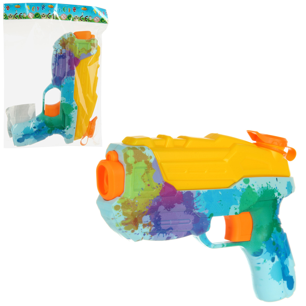 Игрушечный водный пистолет замечательно дополнят активные летние игры. Изготовлен из прочного и долговечного материала. Оформлен в стилизованном дизайне и яркой расцветке. Открываем крышечку в верхней части корпуса оружия. Заливаем внутрь воду, закрываем крышечку. Нажимаем на спусковой крючок, выстрелит водой. Водяной пистолет стреляет водой, а не твердыми предметами, безопасно. С такой игрушкой ребёнок в игровой форме будет развивать мелкую моторику, координацию движений, зрительное восприятие. Обладает легким весом, игрушку удобно брать с собой на прогулку, на дачу, на море. Водное оружие станет замечательным подарком детям, мальчику, девочке, на новый год, день рождения и на любой другой повод. Изготовлено из качественного полимера. Объем резервуара 150 мл. Дальность выстрела от 3 до 5 метров. Размер игрушечного оружия 23х4х16 см. Размер упаковки 19х4х29 см.