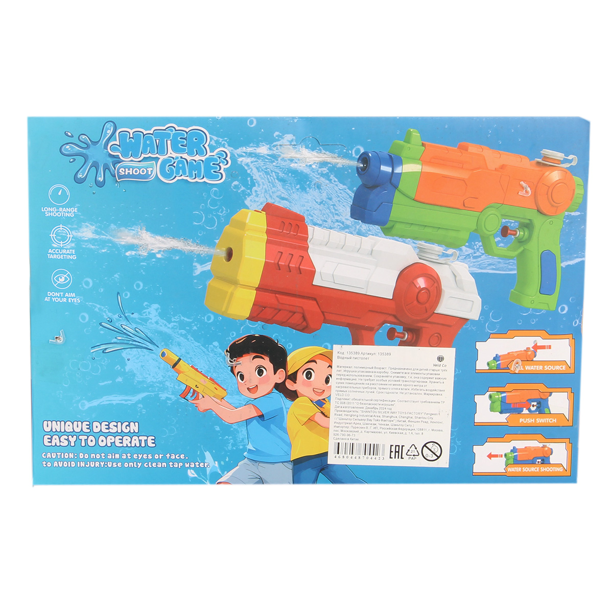 Безопасный в использовании игрушечный водный пистолет с большой дальностью выстрела замечательно дополнит активные игры на свежем воздухе.