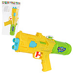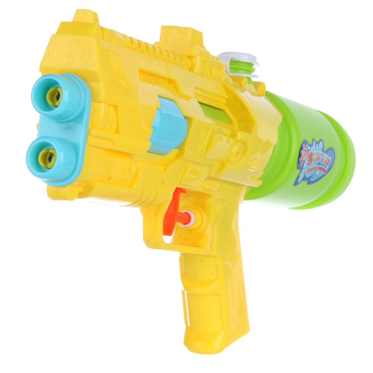 Водный пистолет станет замечательной игрушкой для активных игр на свежем воздухе. Изготовлен из прочных и долговечных материалов. Оформлен в стилизованном дизайне и приятной расцветке. Обладает легким весом, можно взять с собой на дачу, на прогулку, на пляж. В верхней части водного бластера открывается крышечка. Заливаем внутрь воду, закрываем крышечку. Нажимаем на спусковой крючок, оружие выстрелит водой из обоих дул. Такой пистолет с водой станет замечательным подарком детям, мальчику, девочке, на новый год, день рождения и на любой другой повод. Объем резервуара 350 мл. Изготовлено из качественного полимера. Дальность выстрела от 3 до 5 метров. Размер игрушечного оружия 30х7х16 см. Размер упаковки 20х7х39 см.