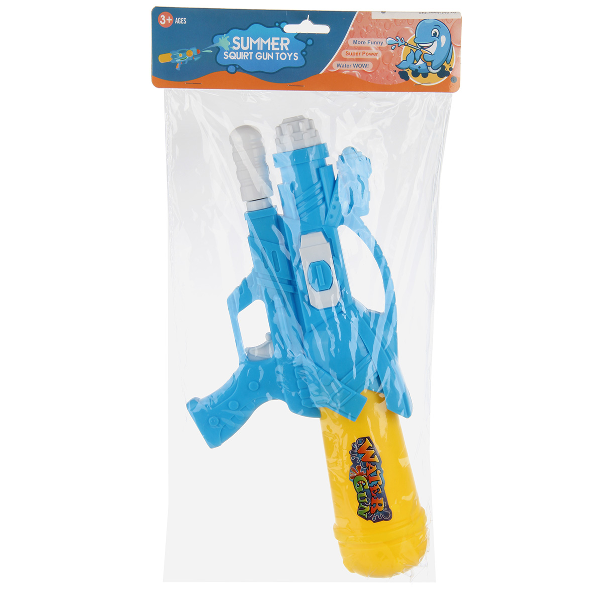 Водный пистолет станет замечательной игрушкой для активных игр на свежем воздухе. Изготовлен из прочных и долговечных материалов. Оформлен в стилизованном дизайне и приятной расцветке. Обладает легким весом, можно взять с собой на дачу, на прогулку, на пляж. Откручиваем резервуар, наполняем водой. Возвращаем резервуар на место. Для выстрела передергиваем ручку под стволом водного бластера. Нажимаем на спусковой крючок, оружие выстрелит водой. Такой пистолет с водой станет замечательным подарком детям, мальчику, девочке, на новый год, день рождения и на любой другой повод. Объем резервуара 350 мл. Изготовлено из качественного полимера. Дальность выстрела от 5 до 7 метров. Размер игрушечного оружия 33х8х21 см. Размер упаковки 22х8х43 см.