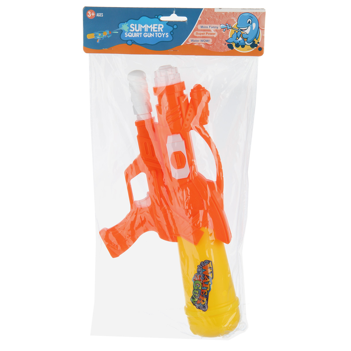 Откручиваем резервуар, наполняем водой. Возвращаем резервуар на место. Для выстрела передергиваем ручку под стволом и нажимаем на спусковой крючок, оружие выстрелит водой.