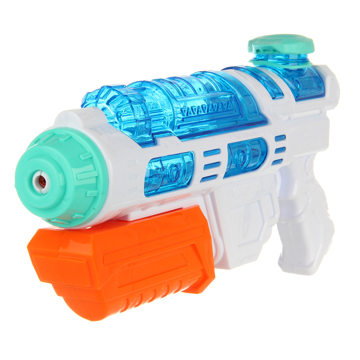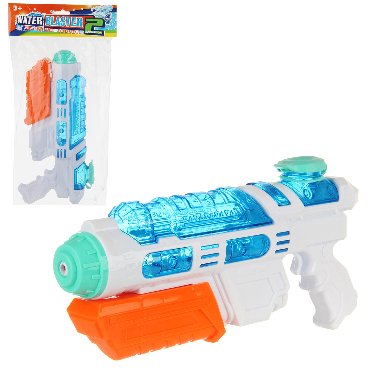 Водный пистолет станет замечательной игрушкой для активных игр на свежем воздухе. Изготовлен из прочных и долговечных материалов. Оформлен в стилизованном дизайне и приятной расцветке. Обладает легким весом, можно взять с собой на дачу, на прогулку, на пляж. Открываем крышку водного бластера, наливаем внутрь воду. Закрываем крышку, передергиваем ручку под стволом, детская игрушка выстрелит водой. С водяным пистолетом можно играть с семьей и друзьями. Такой пистолет с водой станет замечательным подарком детям, мальчику, девочке, на новый год, день рождения и на любой другой повод. Изготовлен из качественного полимера. Объем резервуара 400 мл. Дальность выстрела от 5 до 7 метров. Размер игрушечного оружия 33х6х17 см. Размер упаковки 22х6х40 см.