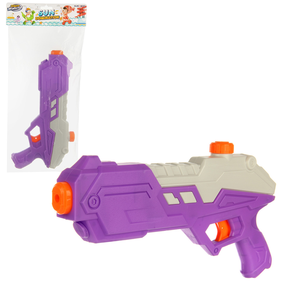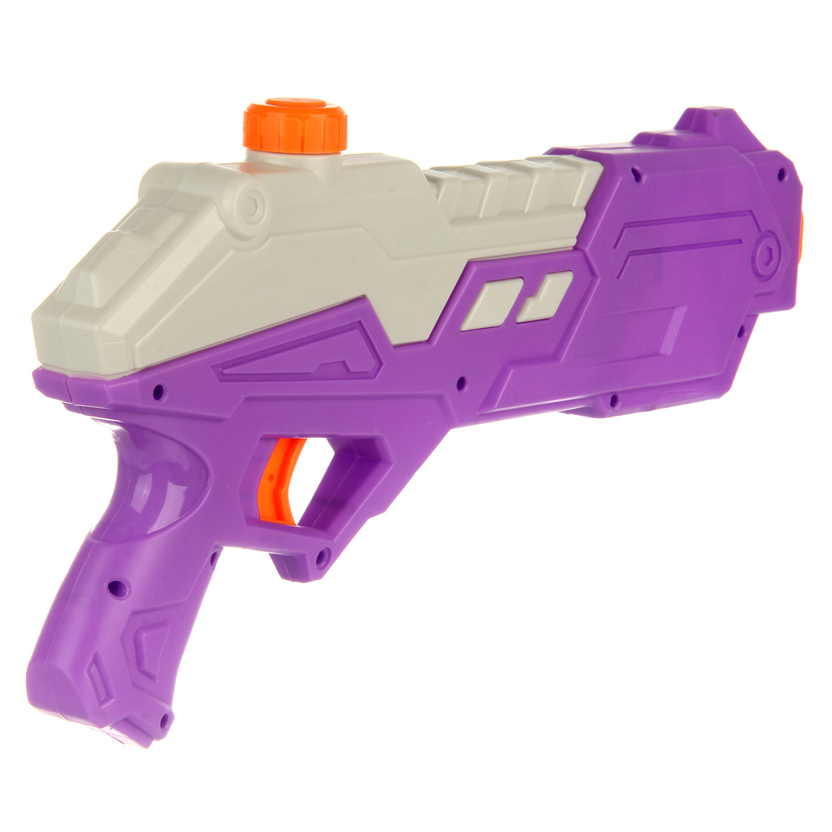 Игрушечный водный пистолет замечательно дополнят активные летние игры. Изготовлен из прочного и долговечного материала. Оформлен в стилизованном дизайне и яркой расцветке. Откручиваем крышечку в верхней части корпуса оружия. Заливаем внутрь воду, закручиваем крышечку. Нажимаем на копку под дулом, игрушка выстрелит водой. Водяной пистолет стреляет водой, а не твердыми предметами, безопасно. С такой игрушкой ребёнок в игровой форме будет развивать мелкую моторику, координацию движений, зрительное восприятие. Обладает легким весом, игрушку удобно брать с собой на прогулку, на дачу, на море. Водное оружие станет замечательным подарком детям, мальчику, девочке, на новый год, день рождения и на любой другой повод. Изготовлено из качественного полимера. Объем резервуара для воды 350 мл. Дальность выстрела от 5 до 7 метров. Размер игрушечного оружия 34х4х19 см. Размер упаковки 22х45 см.