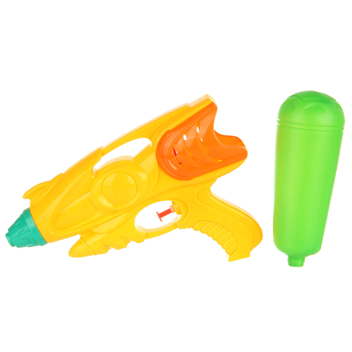 Игрушечный водный пистолет замечательно дополнят активные летние игры. Изготовлен из прочного и долговечного материала. Оформлен в стилизованном дизайне и яркой расцветке. Откручиваем резервуар, наполняем водой. Возвращаем резервуар на место. Для выстрела нажимаем на спусковой крючок под дулом. Оружие выстрелит водой. Водяной пистолет стреляет водой, а не твердыми предметами, безопасно. С такой игрушкой ребёнок в игровой форме будет развивать мелкую моторику, координацию движений, зрительное восприятие. Обладает легким весом, игрушку удобно брать с собой на прогулку, на дачу, на море. Водное оружие станет замечательным подарком детям, мальчику, девочке, на новый год, день рождения и на любой другой повод. Изготовлено из качественного полимера. Объем резервуара 350 мл. Дальность выстрела от 3 до 5 метров. Размер игрушечного оружия 35х6х19 см. Размер упаковки 36х6х19 см.