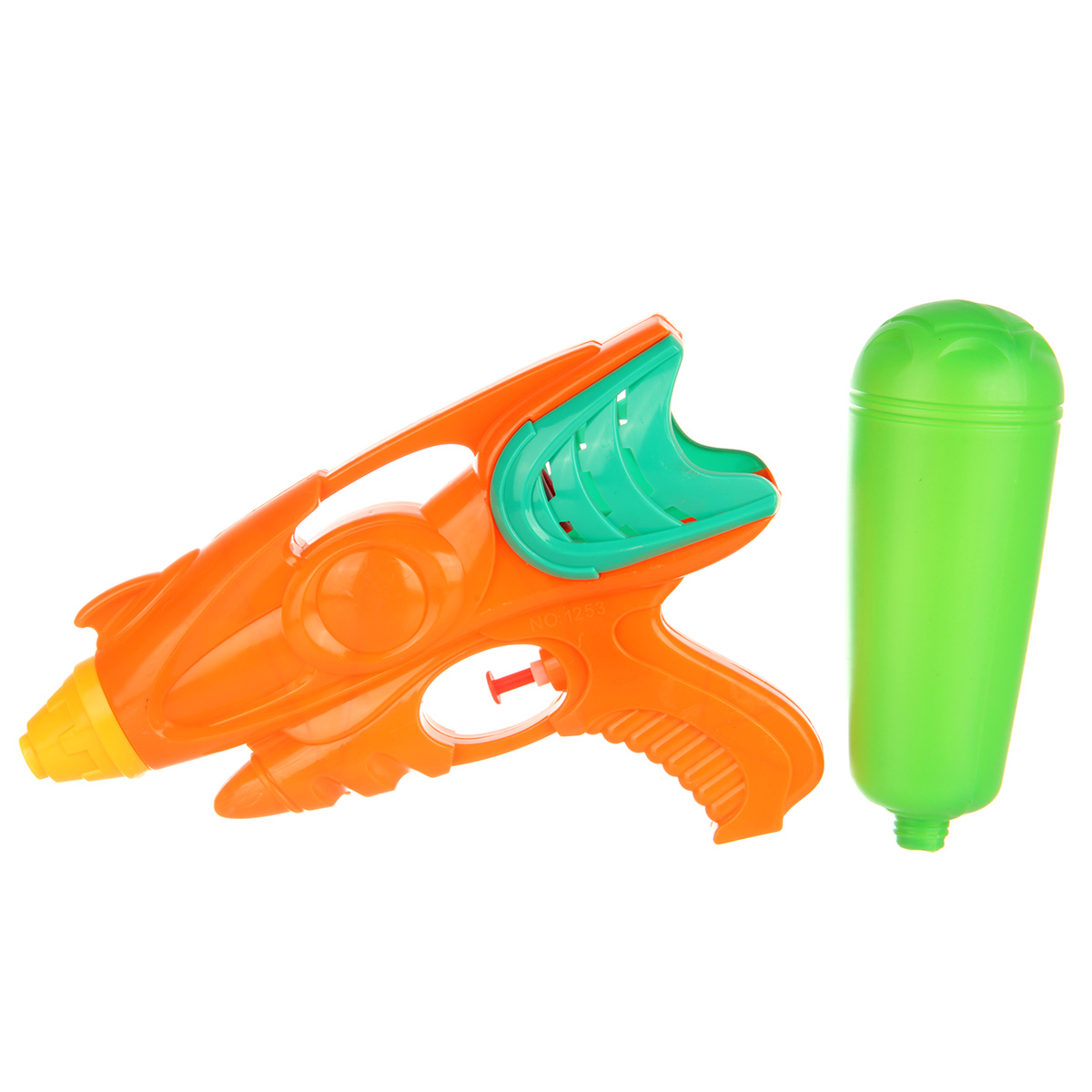 Игрушечный водный пистолет замечательно дополнят активные летние игры. Изготовлен из прочного и долговечного материала. Оформлен в стилизованном дизайне и яркой расцветке. Откручиваем резервуар, наполняем водой. Возвращаем резервуар на место. Для выстрела нажимаем на спусковой крючок под дулом. Оружие выстрелит водой. Водяной пистолет стреляет водой, а не твердыми предметами, безопасно. С такой игрушкой ребёнок в игровой форме будет развивать мелкую моторику, координацию движений, зрительное восприятие. Обладает легким весом, игрушку удобно брать с собой на прогулку, на дачу, на море. Водное оружие станет замечательным подарком детям, мальчику, девочке, на новый год, день рождения и на любой другой повод. Изготовлено из качественного полимера. Объем резервуара 350 мл. Дальность выстрела от 3 до 5 метров. Размер игрушечного оружия 35х6х19 см. Размер упаковки 36х6х19 см.