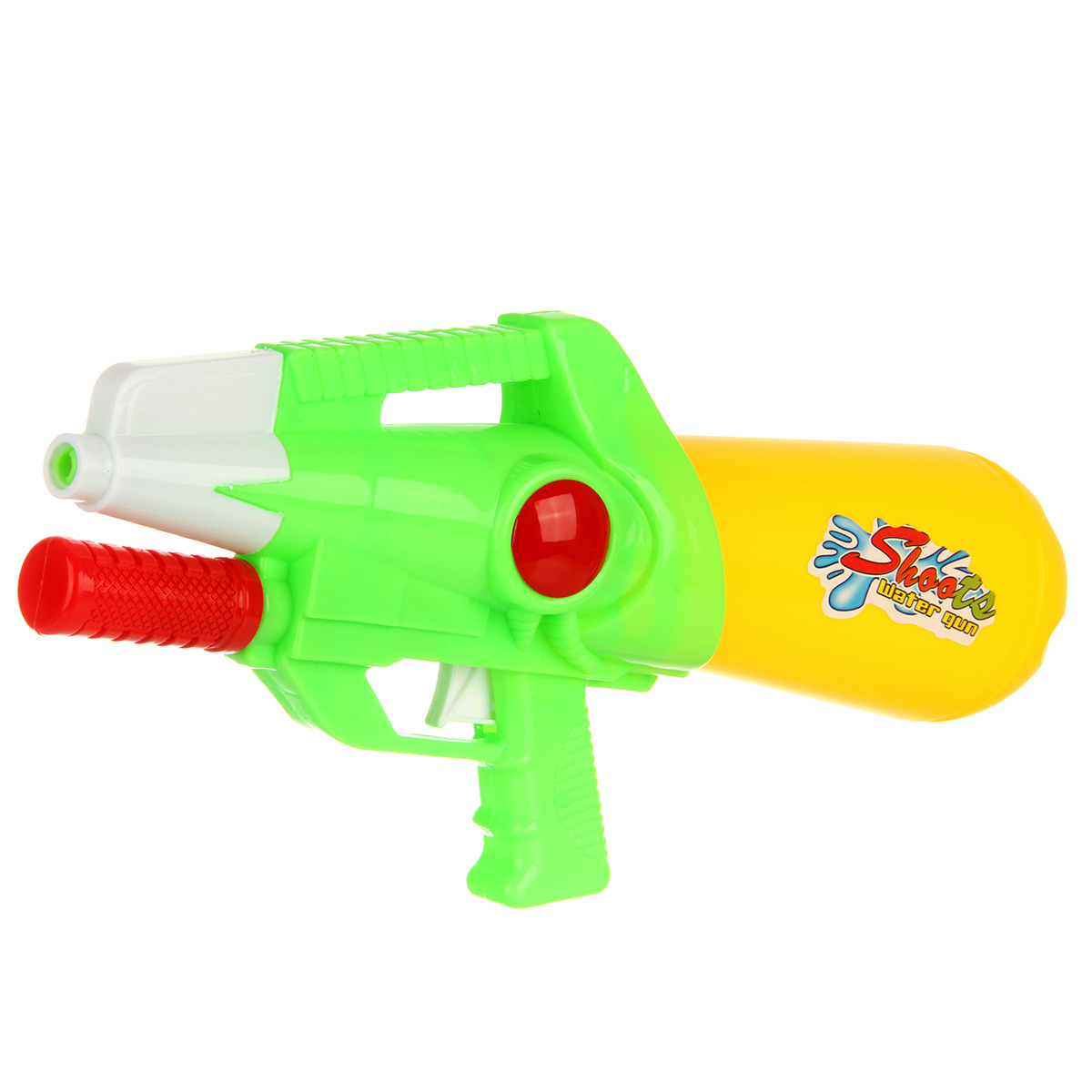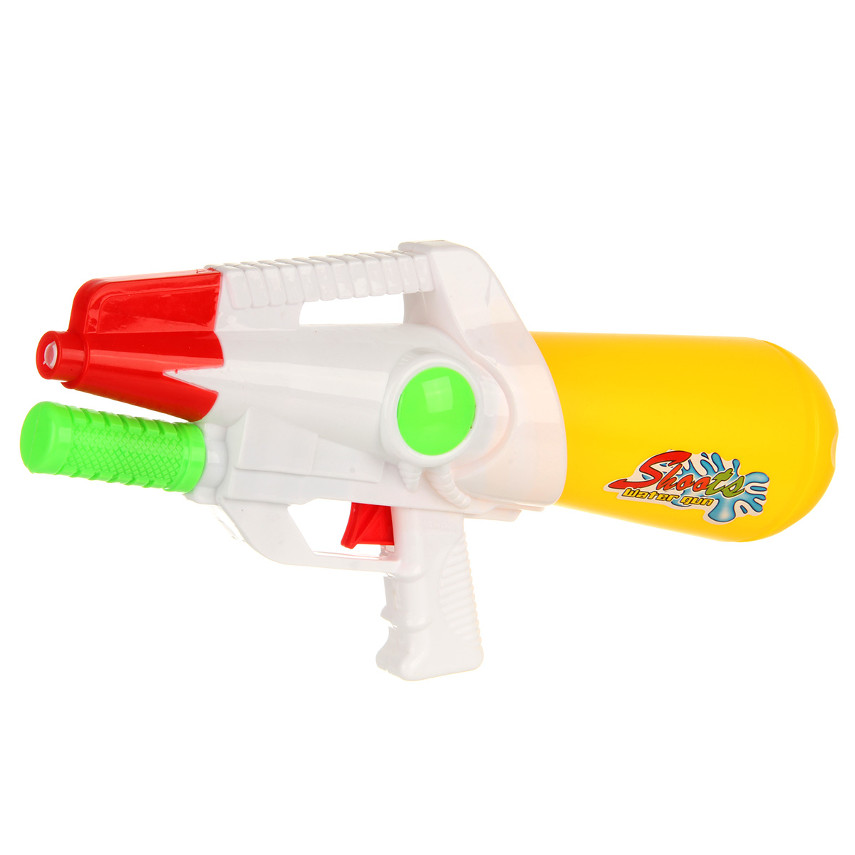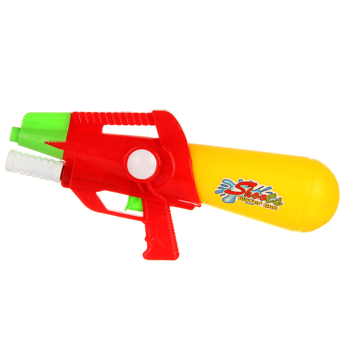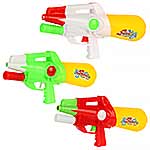 Игрушечный водный пистолет с большой дальностью выстрела. Отсутствие пулек и снарядов делает игру с водяным пистолетом безопасной. Игрушечное оружие оформлено в стилизованном дизайне и яркой расцветке. Игрушка пистолет изготовлен из прочных и безопасных материалов в качественном исполнении. Игрушка отлично подойдёт для дачи, можно взять с собой на прогулку и играть в парке. Такое водная игрушка станет замечательным подарком мальчику, на новый год, день рождения, 23 февраля и на любой другой повод. Откручиваем резервуар, наполняем водой. Возвращаем резервуар на место. Для выстрела передвигаем ручку под стволом и нажимаем на спусковой крючок, оружие выстрелит водой.