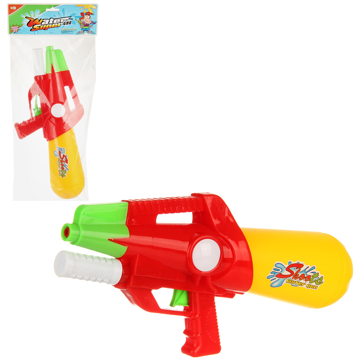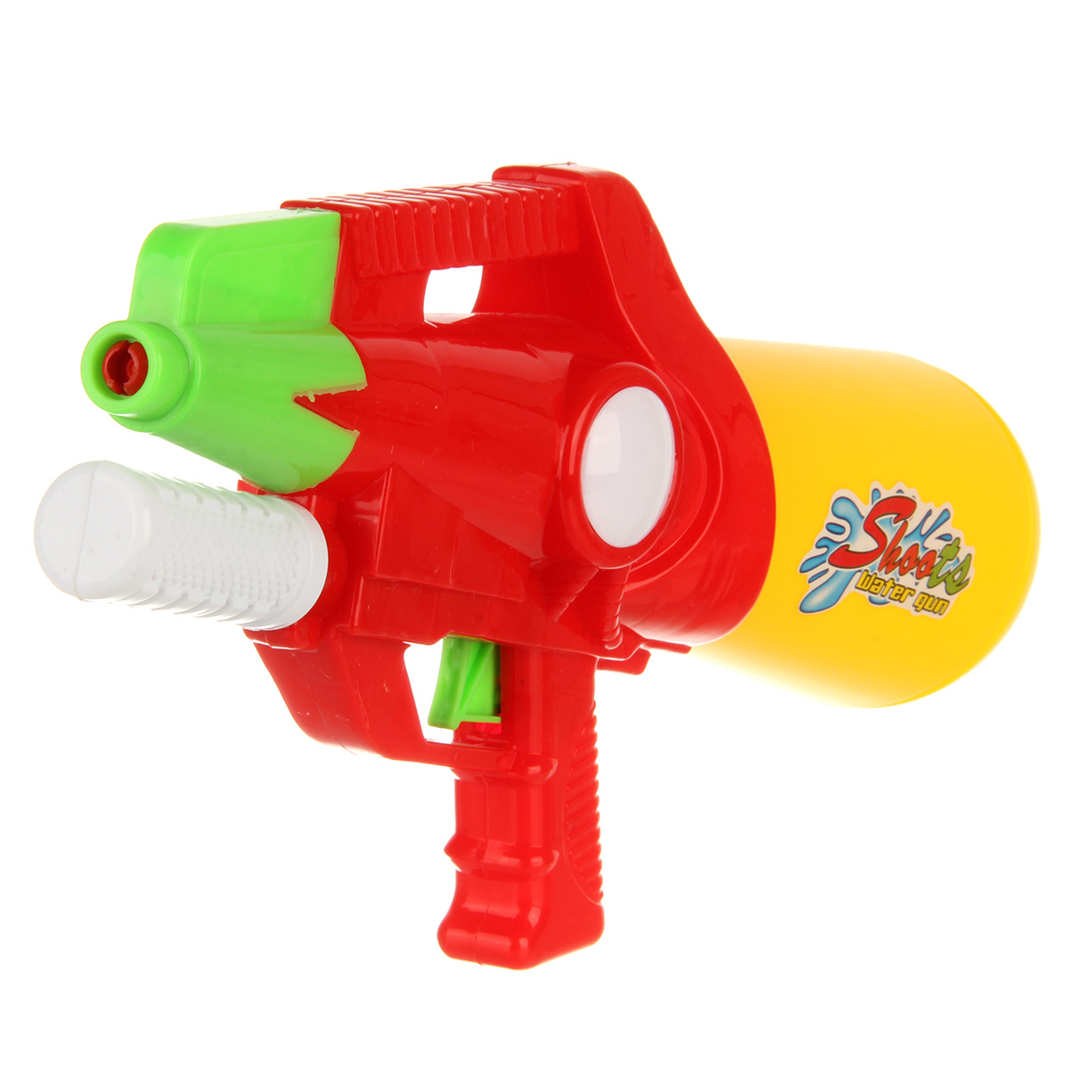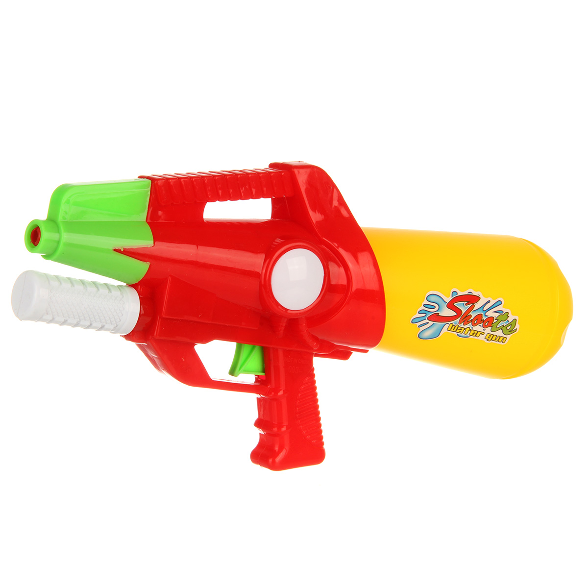 Игрушечный водный пистолет с большой дальностью выстрела. Отсутствие пулек и снарядов делает игру с водяным пистолетом безопасной. Игрушечное оружие оформлено в стилизованном дизайне и яркой расцветке. Игрушка пистолет изготовлен из прочных и безопасных материалов в качественном исполнении. Игрушка отлично подойдёт для дачи, можно взять с собой на прогулку и играть в парке. Такое водная игрушка станет замечательным подарком мальчику, на новый год, день рождения, 23 февраля и на любой другой повод. Откручиваем резервуар, наполняем водой. Возвращаем резервуар на место. Для выстрела передвигаем ручку под стволом и нажимаем на спусковой крючок, оружие выстрелит водой.