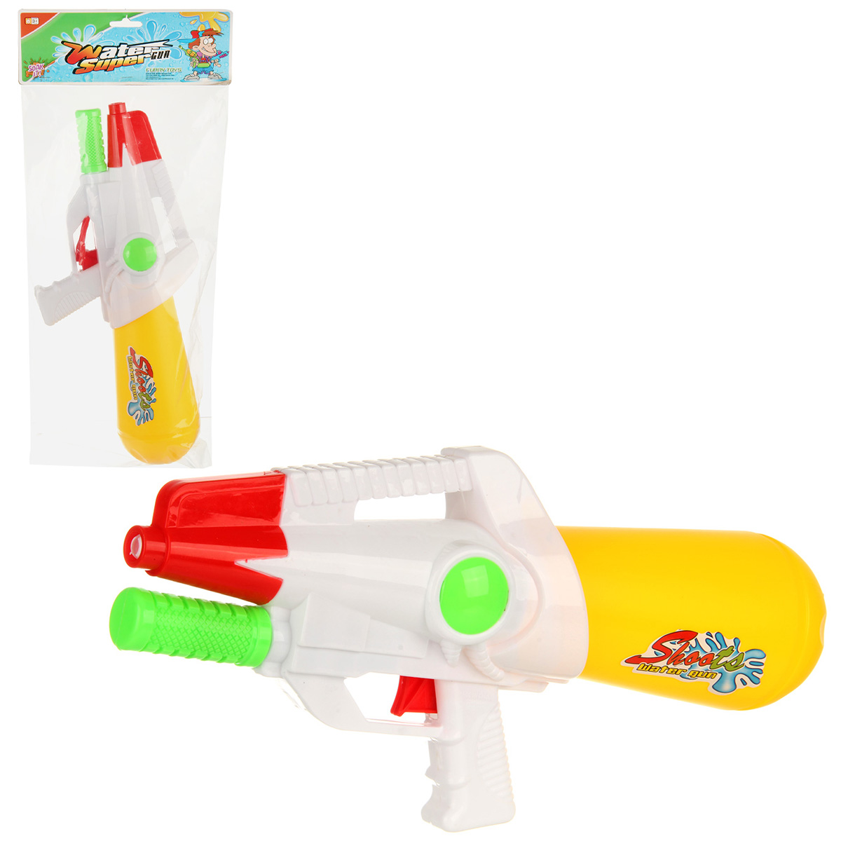 Игрушечный водный пистолет с большой дальностью выстрела. Отсутствие пулек и снарядов делает игру с водяным пистолетом безопасной. Игрушечное оружие оформлено в стилизованном дизайне и яркой расцветке. Игрушка пистолет изготовлен из прочных и безопасных материалов в качественном исполнении. Игрушка отлично подойдёт для дачи, можно взять с собой на прогулку и играть в парке. Такое водная игрушка станет замечательным подарком мальчику, на новый год, день рождения, 23 февраля и на любой другой повод. Откручиваем резервуар, наполняем водой. Возвращаем резервуар на место. Для выстрела передвигаем ручку под стволом и нажимаем на спусковой крючок, оружие выстрелит водой. Водяной пистолет стреляет водой, а не твердыми предметами, безопасно. С такой игрушкой ребёнок в игровой форме будет развивать мелкую моторику, координацию движений, зрительное восприятие. Обладает легким весом, игрушку удобно брать с собой на прогулку, на дачу, на море. Водное оружие станет замечательным подарком детям, мальчику, девочке, на новый год, день рождения и на любой другой повод. Изготовлено из качественного полимера. Объем резервуара 850 мл. Дальность выстрела от 5 до 7 метров. Размер игрушечного оружия 36х8х17 см. Размер упаковки 20х8х48 см.