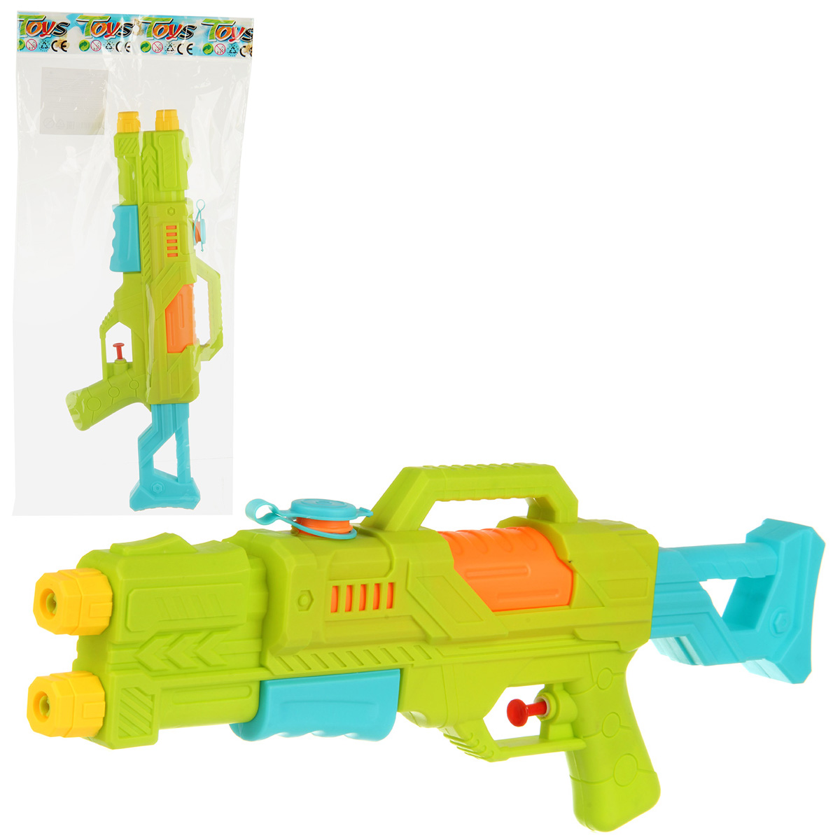 Игрушечный водный пистолет замечательно дополнят активные летние игры. Изготовлен из прочного и долговечного материала. Оформлен в стилизованном дизайне и яркой расцветке. Открываем крышечку в верхней части корпуса оружия. Заливаем внутрь воду, закрываем крышечку. Нажимаем на кнопку под ручкой ствола, из обоих дул пистолета выстрелит вода. Водяной пистолет стреляет водой, а не твердыми предметами, безопасно. С такой игрушкой ребёнок в игровой форме будет развивать мелкую моторику, координацию движений, зрительное восприятие. Обладает легким весом, игрушку удобно брать с собой на прогулку, на дачу, на море. Водное оружие станет замечательным подарком детям, мальчику, девочке, на новый год, день рождения и на любой другой повод. Изготовлено из качественного полимера. Объём резервуара 100 мл. Дальность выстрела от 3 до 5 метров. Размер игрушечного оружия 37х5х16 см. Размер упаковки 21х5х48 см