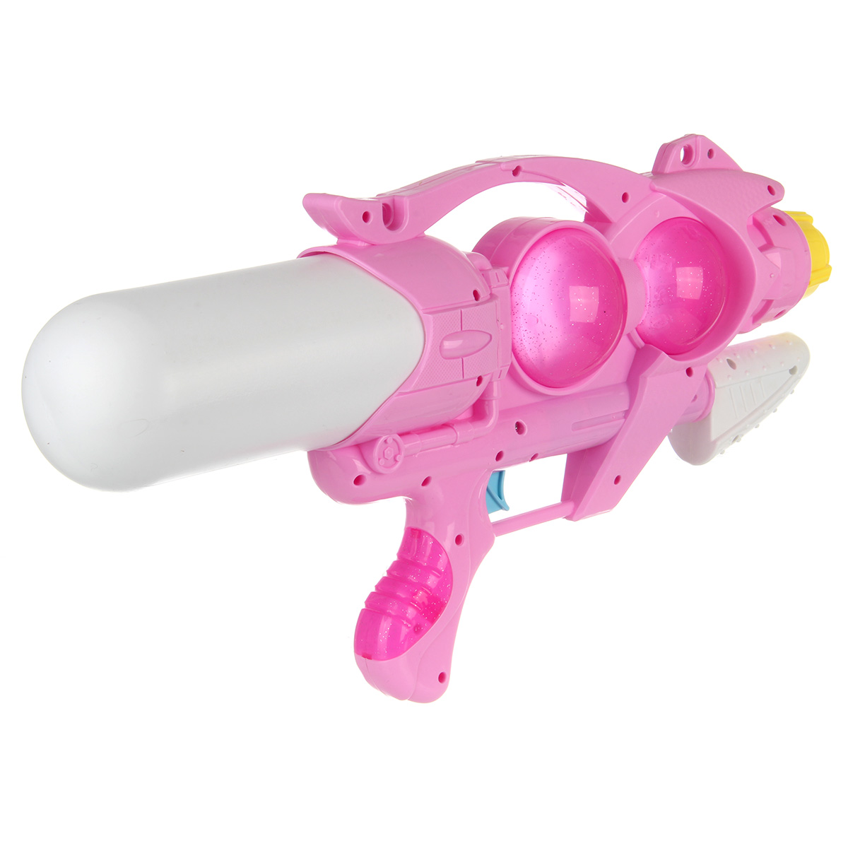 Откручиваем резервуар, наполняем водой. Возвращаем резервуар на место. Для выстрела передергиваем ручку под стволом и нажимаем на спусковой крючок, оружие выстрелит водой.