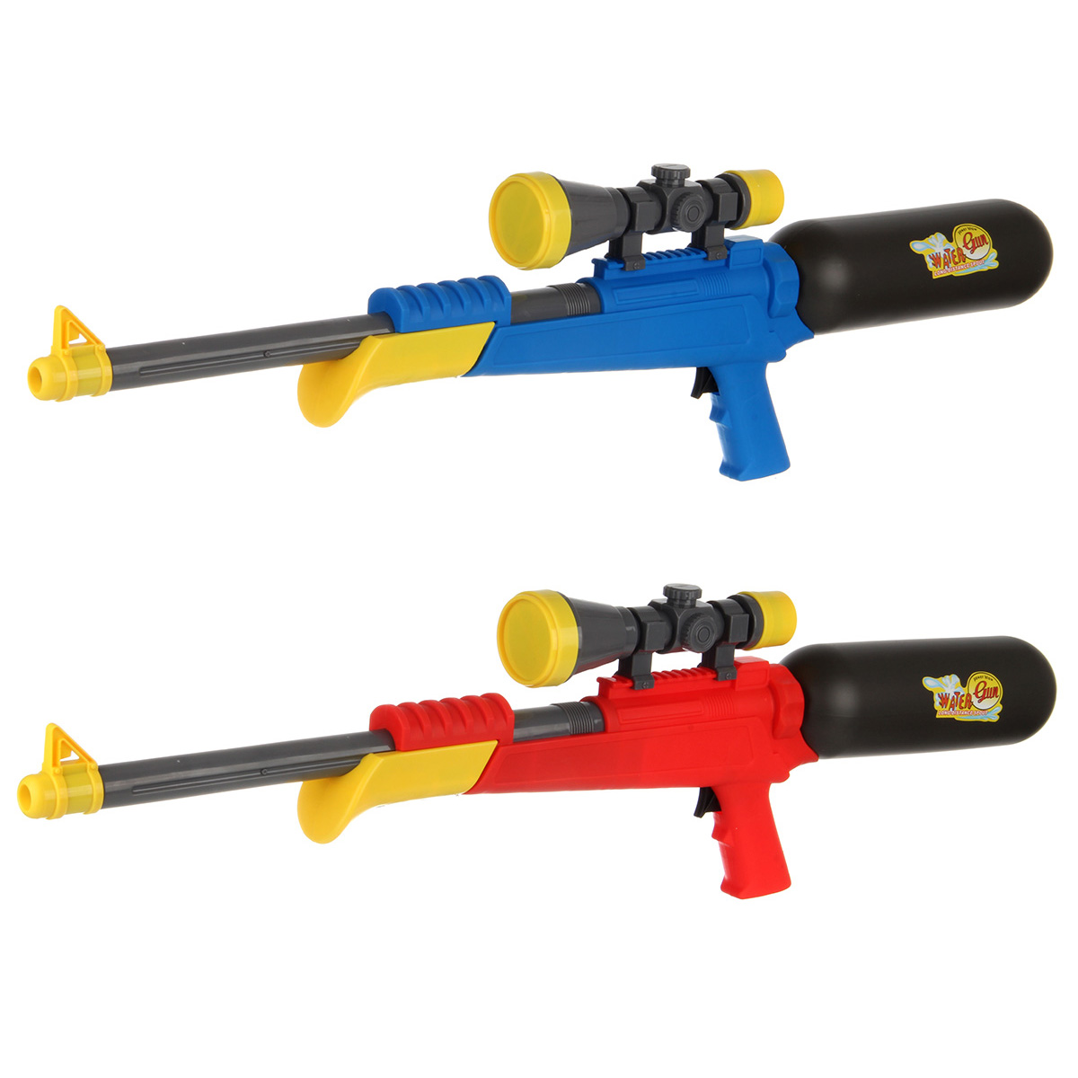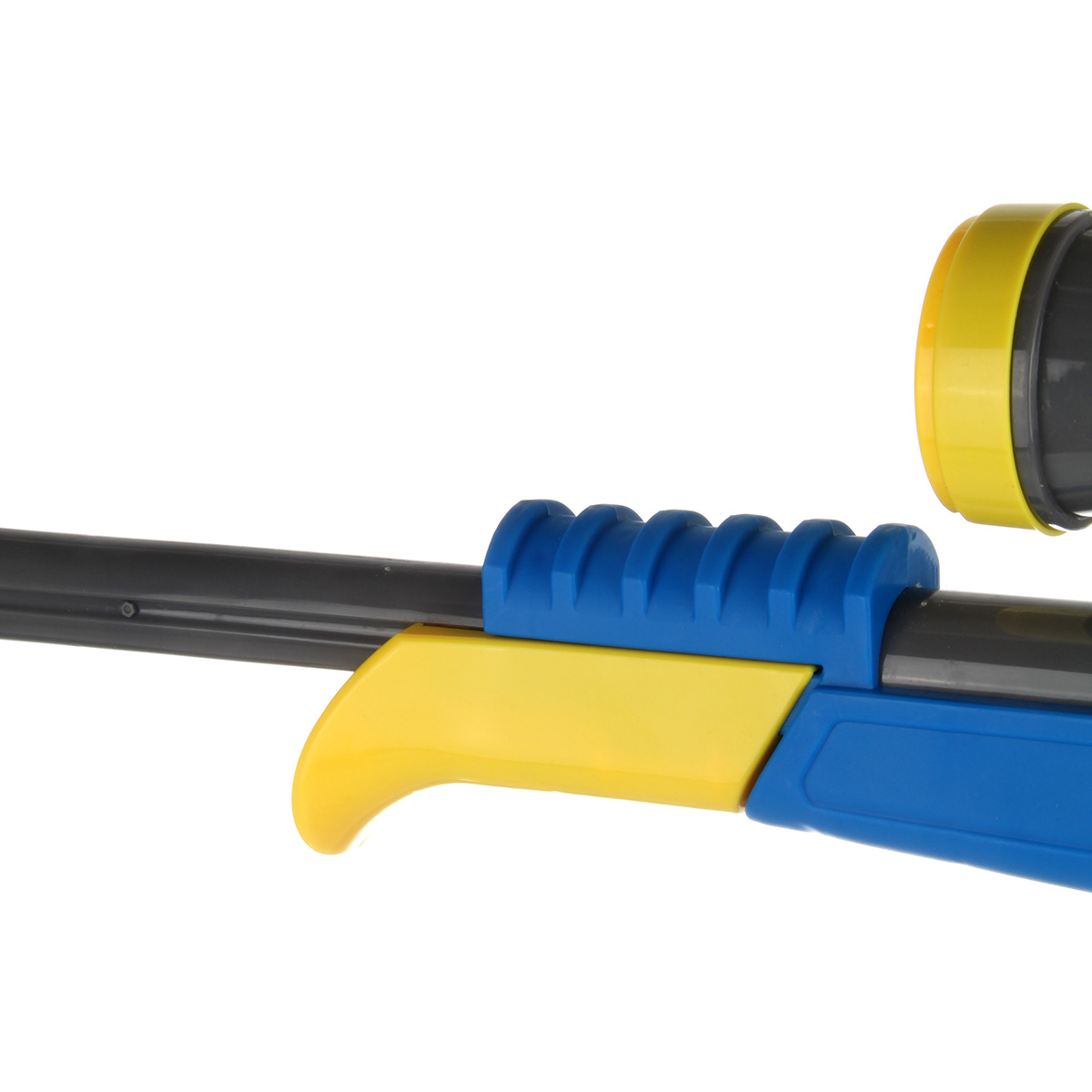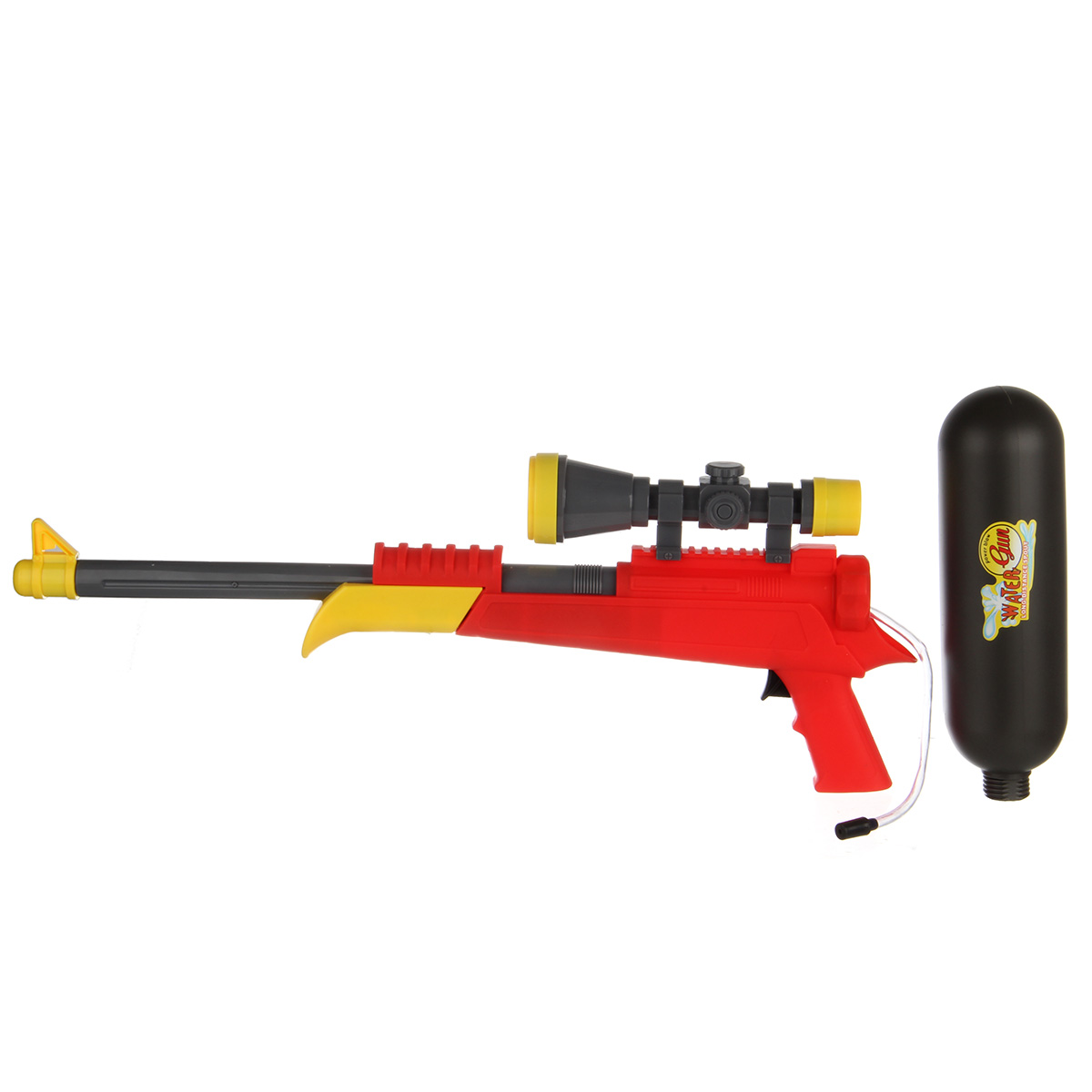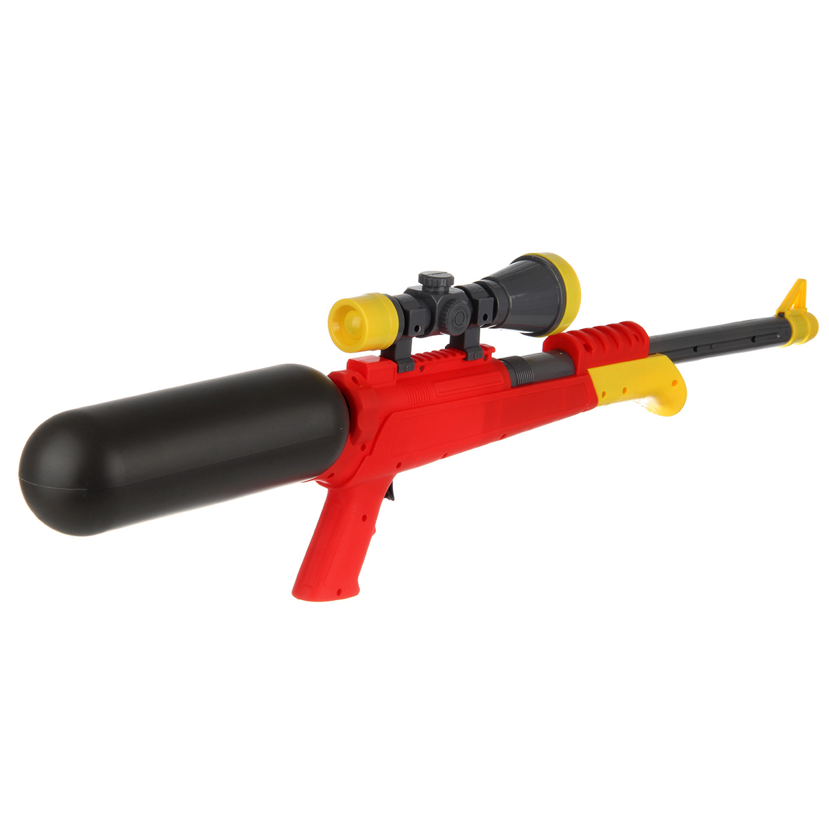 Откручиваем резервуар для воды, наливаем туда воду. Передёргиваем желтую ручку под стволом и нажимаем на спусковой крючок, оружие выстрелит водой.