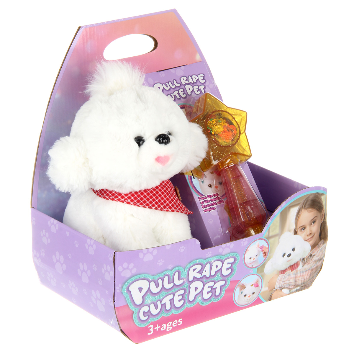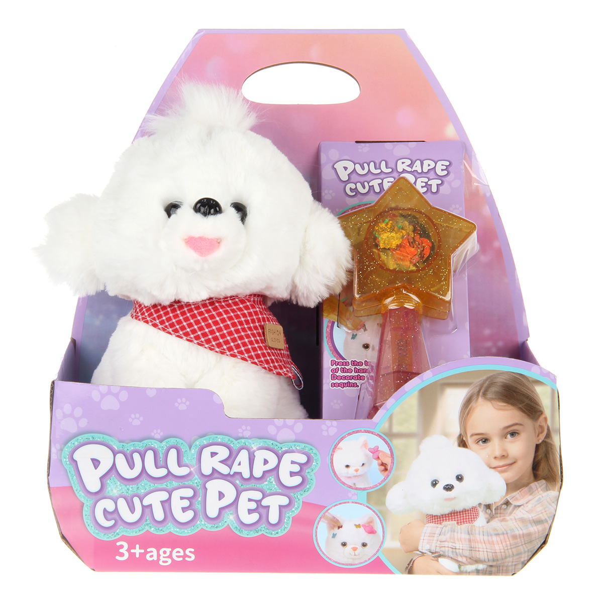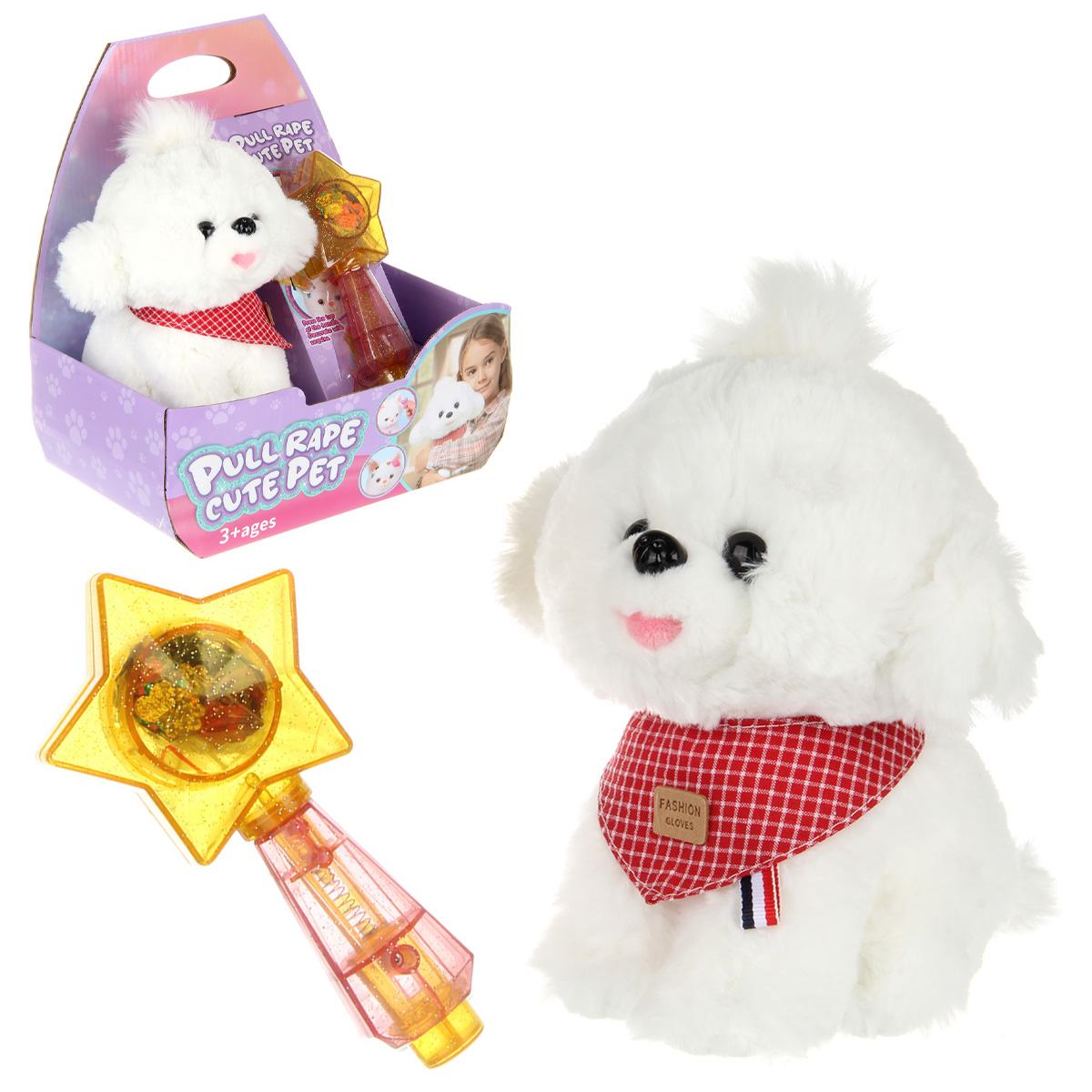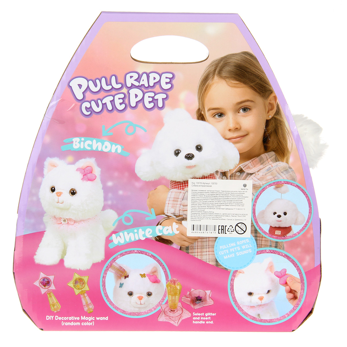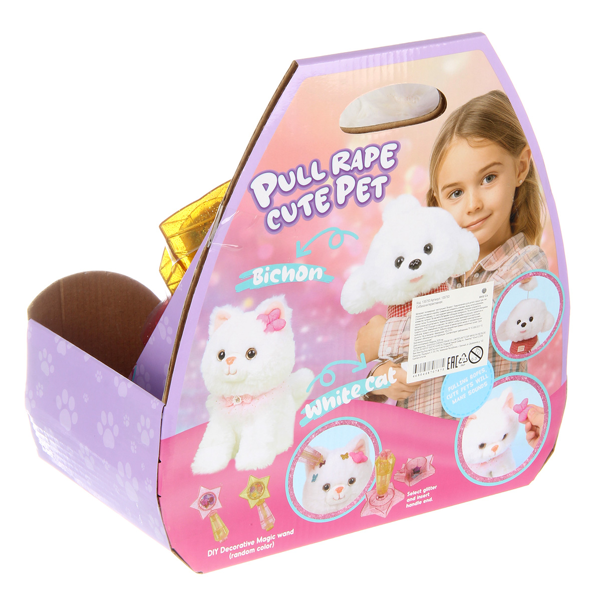 В наборе питомец и волшебная палочка с блестками.